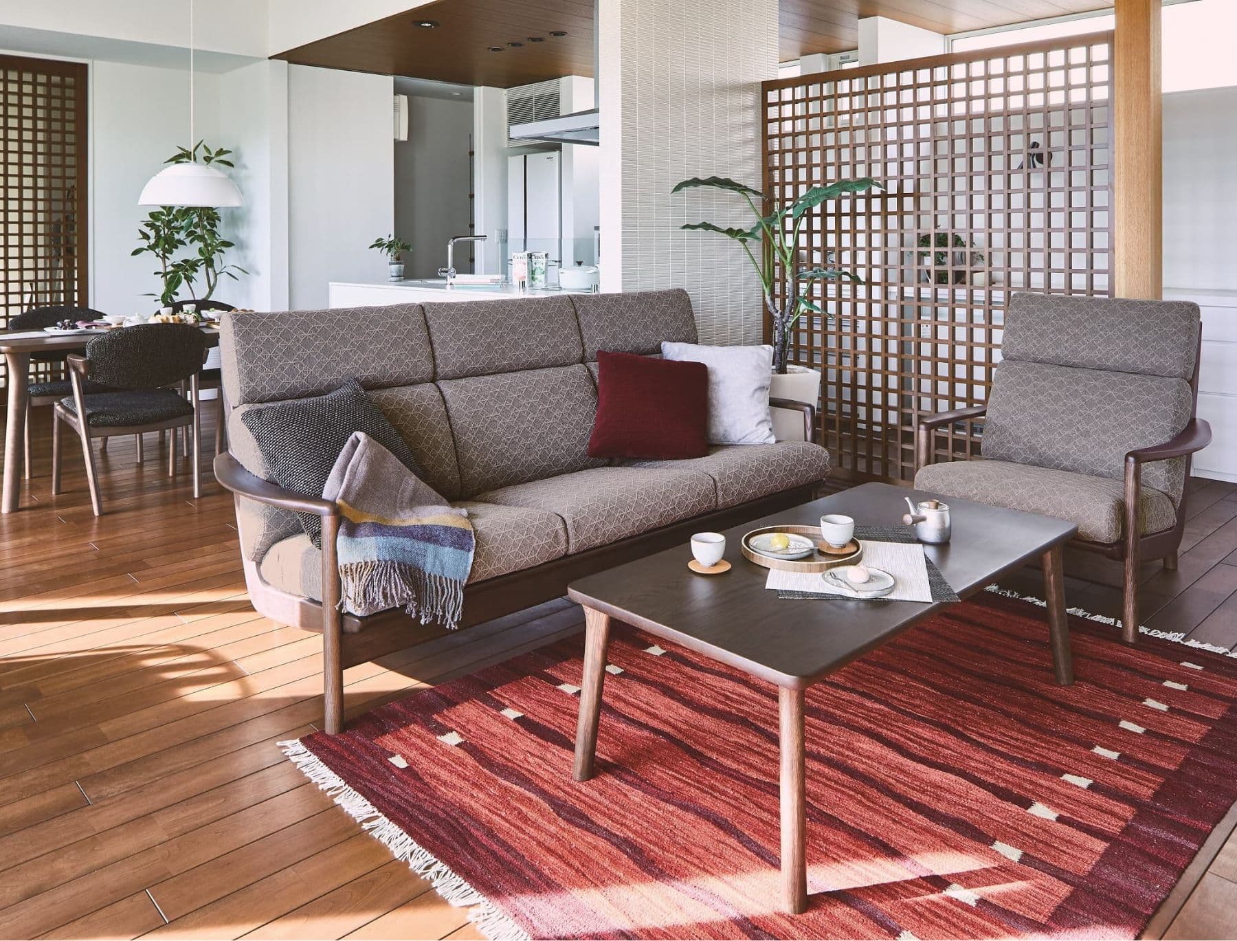 素材にこだわりながら、ハウスダストや防音性、断熱や床への配慮など、安心してご使用いただけます。 ラグ・カーペットのご使用によって、一つの空間が、仕切りのないシーンに分かれお部屋が広く見えます。 ラグとクッションの組み合わせによっても、お部屋のイメージが変化いたしますので是非インテリアを楽しんでください。