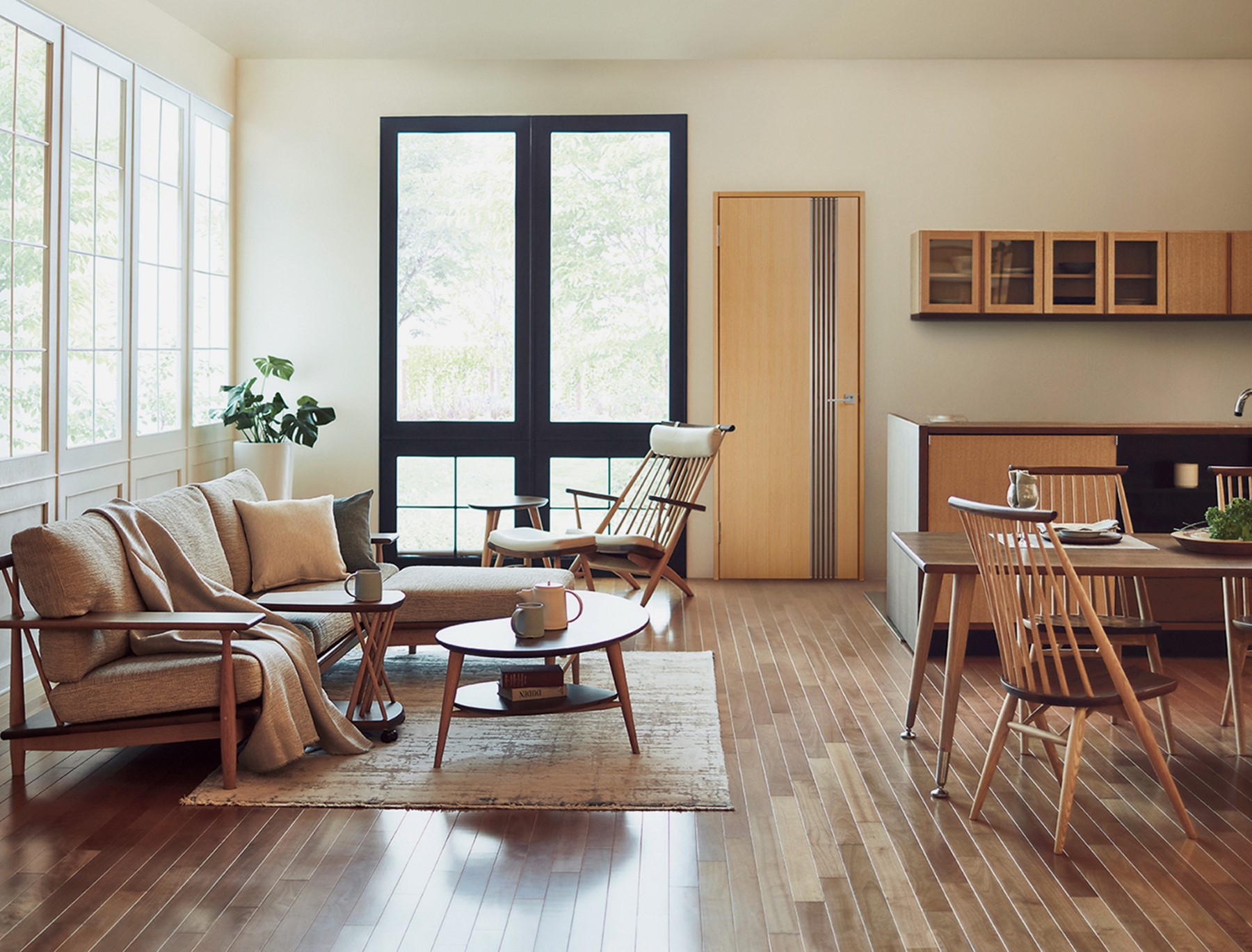 国産材、アメリカ産材問わず、工場に届くまで、自らの目で確かめて木材の品質を見極めています。 個性豊かな素材から生まれる家具は、人生をともにするパートナーのようです。 家を建てたり、進学や就職など様々な祝いの場に関わり、人生の節目に登場します。 購入いただいたお客様の幸せに思いを馳せながら製品を提供していくことを心に留めています。 「シンプルで飽きのこないインテリアの追求」をコンセプトに、現代のライフスタイルに合わせた家具をご提案し続けます。