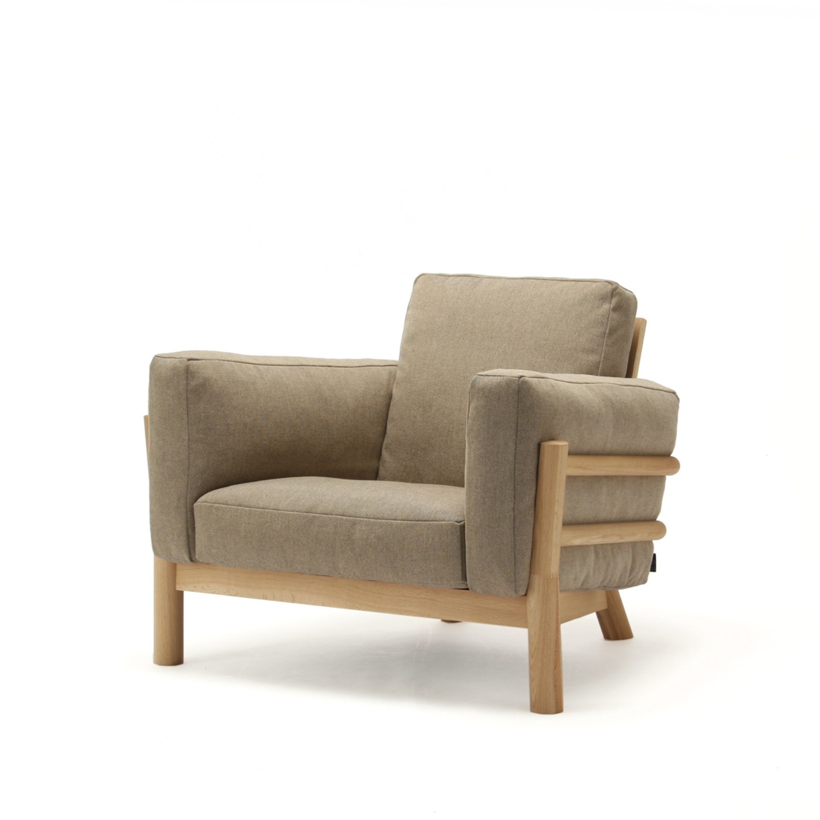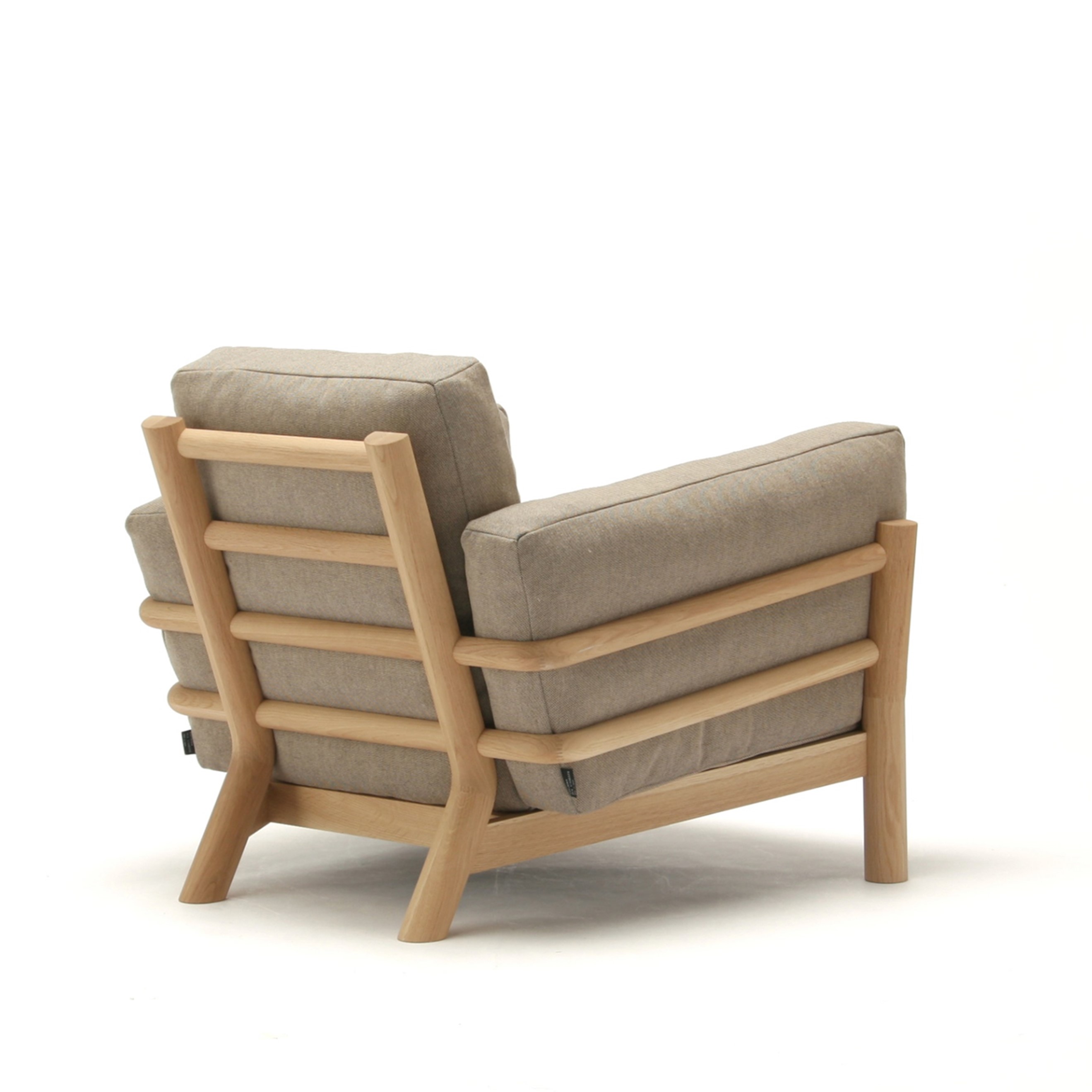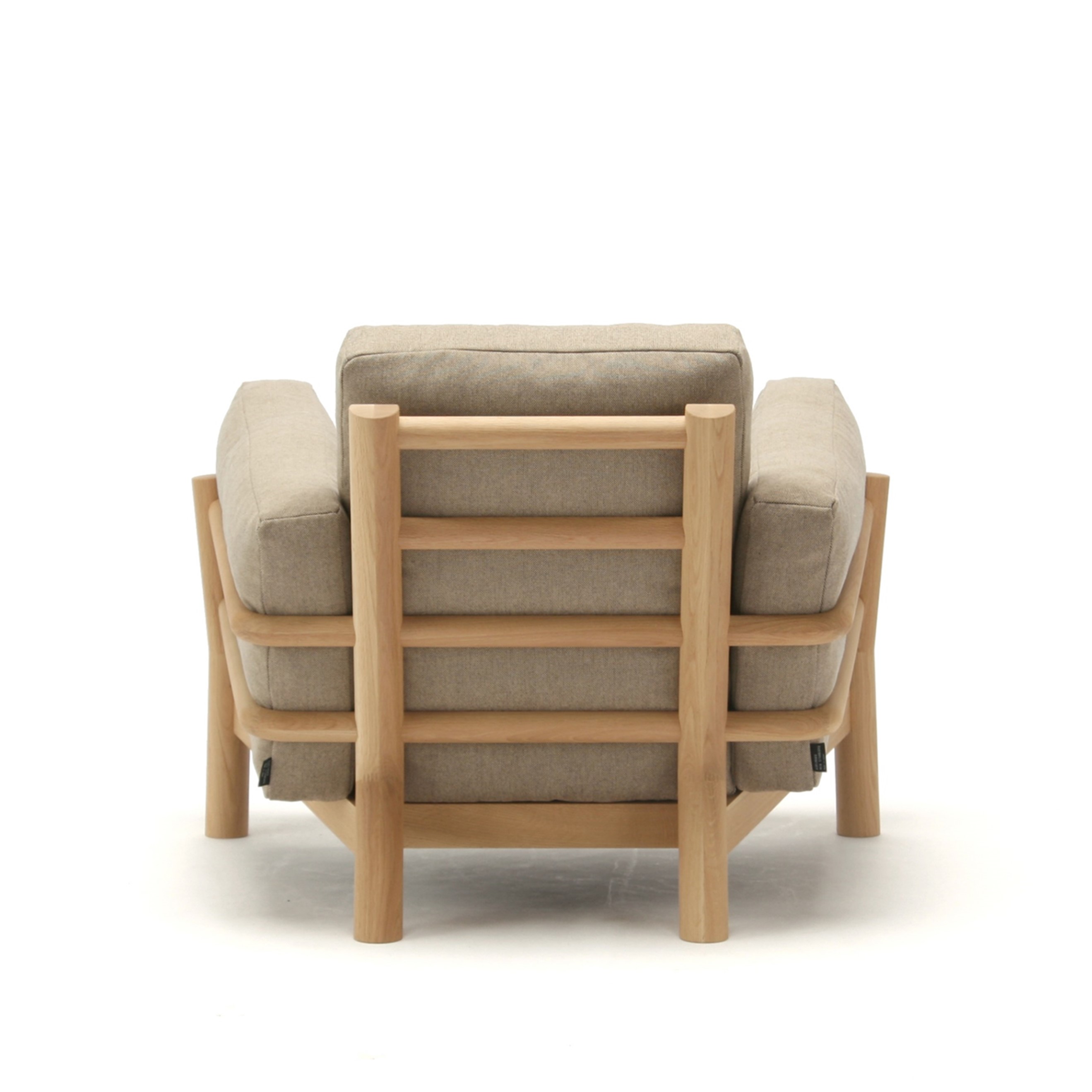 このアイテムは、カリモクが誇る木工技術と椅子張りに関する優れたノウハウから生まれました。精巧に組まれた国産ナラ材の構造が、柔らかくもサポート性のよい高品質のウレタンフォームと天然フェザー(羽根)のクッションを保持しています。すべてのパーツが隅々まで丹念に作りこまれているので、前面だけからだけではなく、背面からの見え方も美しく、部屋の仕切りにも最適なアイテムです。