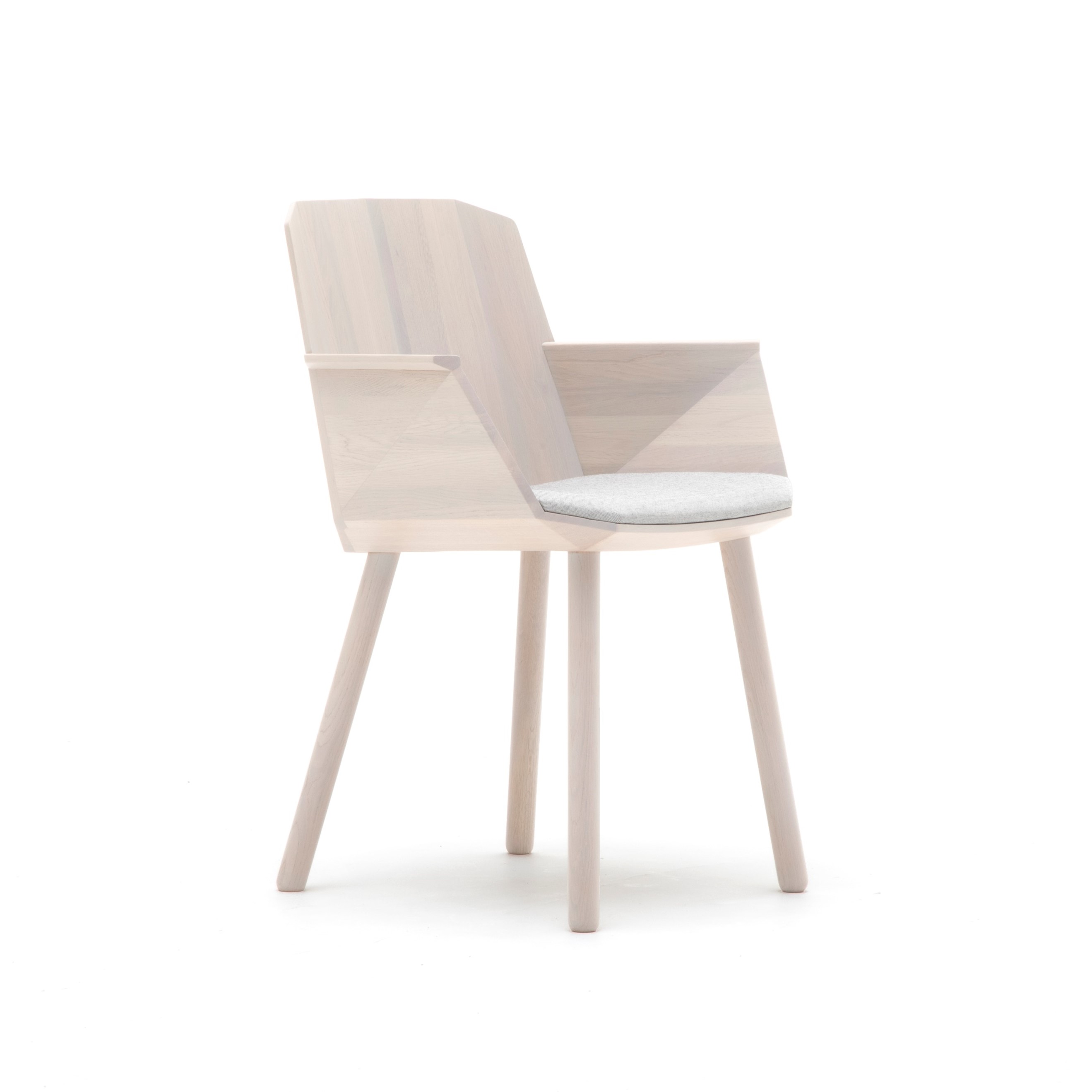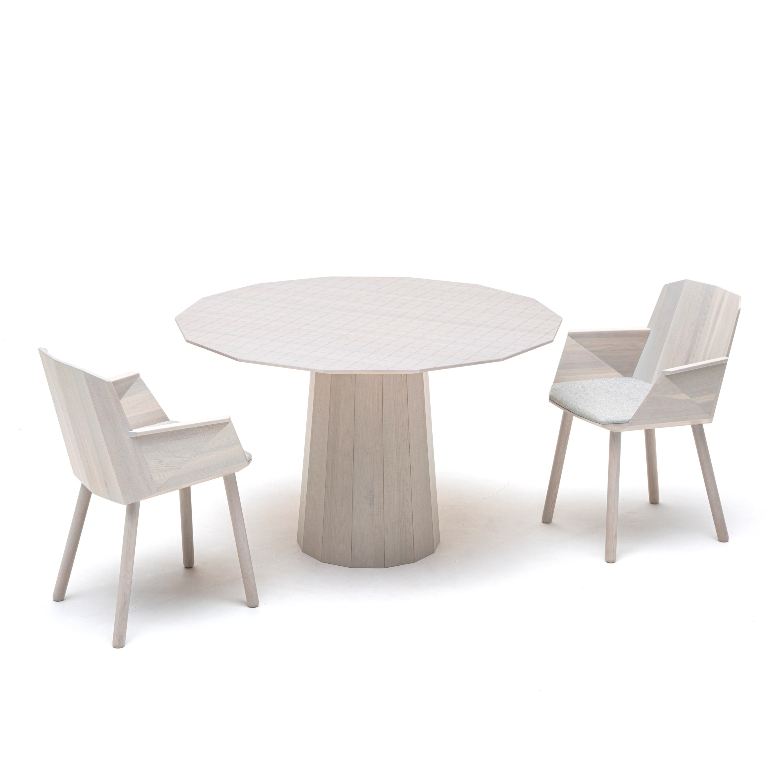 Colour Wood Armchair は2017 年に発表されたColour Wood Sidechair をもとにデザインされていますが、小さく細かい木材を貼り合わせた板を固定部品が見えないようにシェル状につないでいくといった独自の挑戦でもあります。ヘルツォーク& ド・ムーロンがデザインしたファブリックが張り込まれた座面は、非常に優れた座り心地の良さを実現しています。住宅から商業空間まで使い勝手がよくご使用いただけ、Colour Wood Dining をさらに引き立たせます。