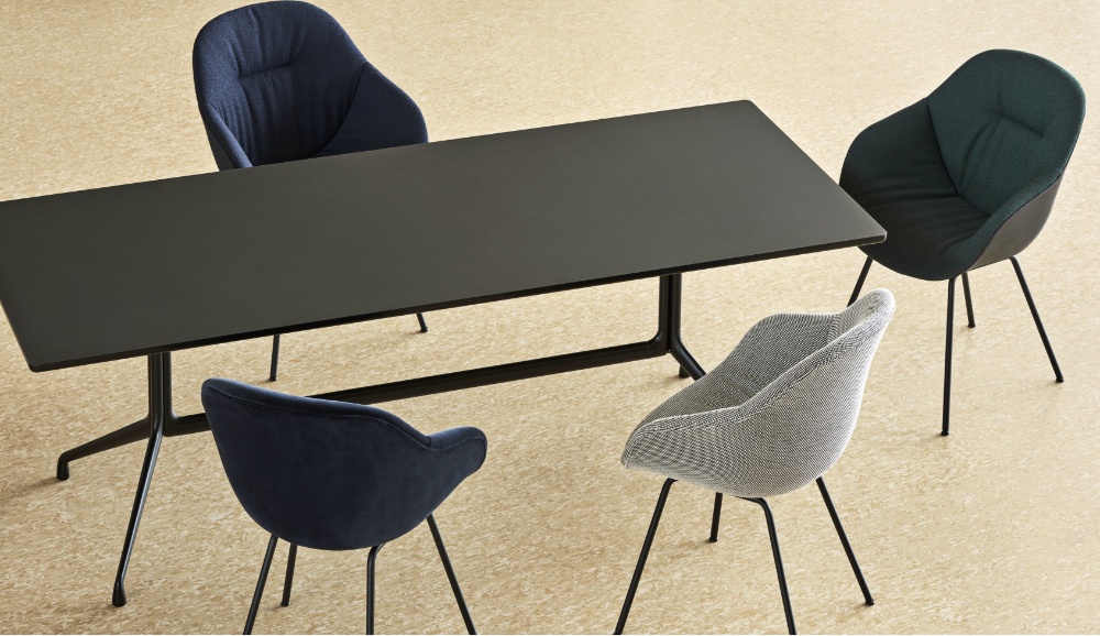 緩やかな曲線が柔らかな印象をもたらすシート、それとは対称的に頑丈なベースを備えた、ABOUT A CHAIRシリーズのAAC 12。