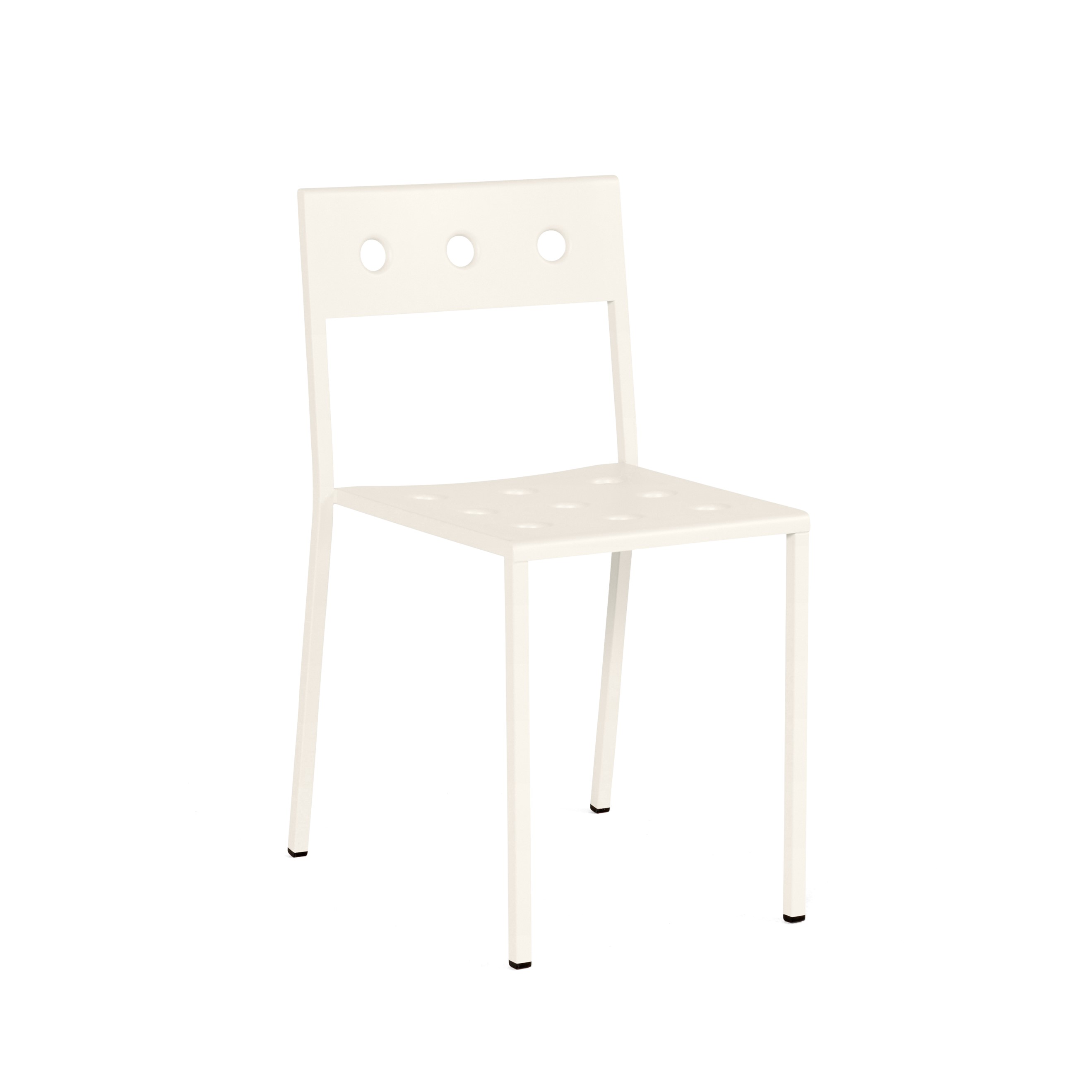丸みのある背もたれと細いアームレストが四角いデザインに柔らかさを加え、座面と背もたれに開けられた穴は構造を強化するとともにユニークな表情をつくりだしています。BALCONYコレクションは、粉体塗装スチールに防水効果のある屋外用塗料を施すことで耐久性を高め、カラーバリエーションも豊富にご用意しています。積み重ね可能なデザインになっているため、小さなバルコニーやテラスから庭などの広い屋外空間まで、どんな場所でもお使いいただけます。