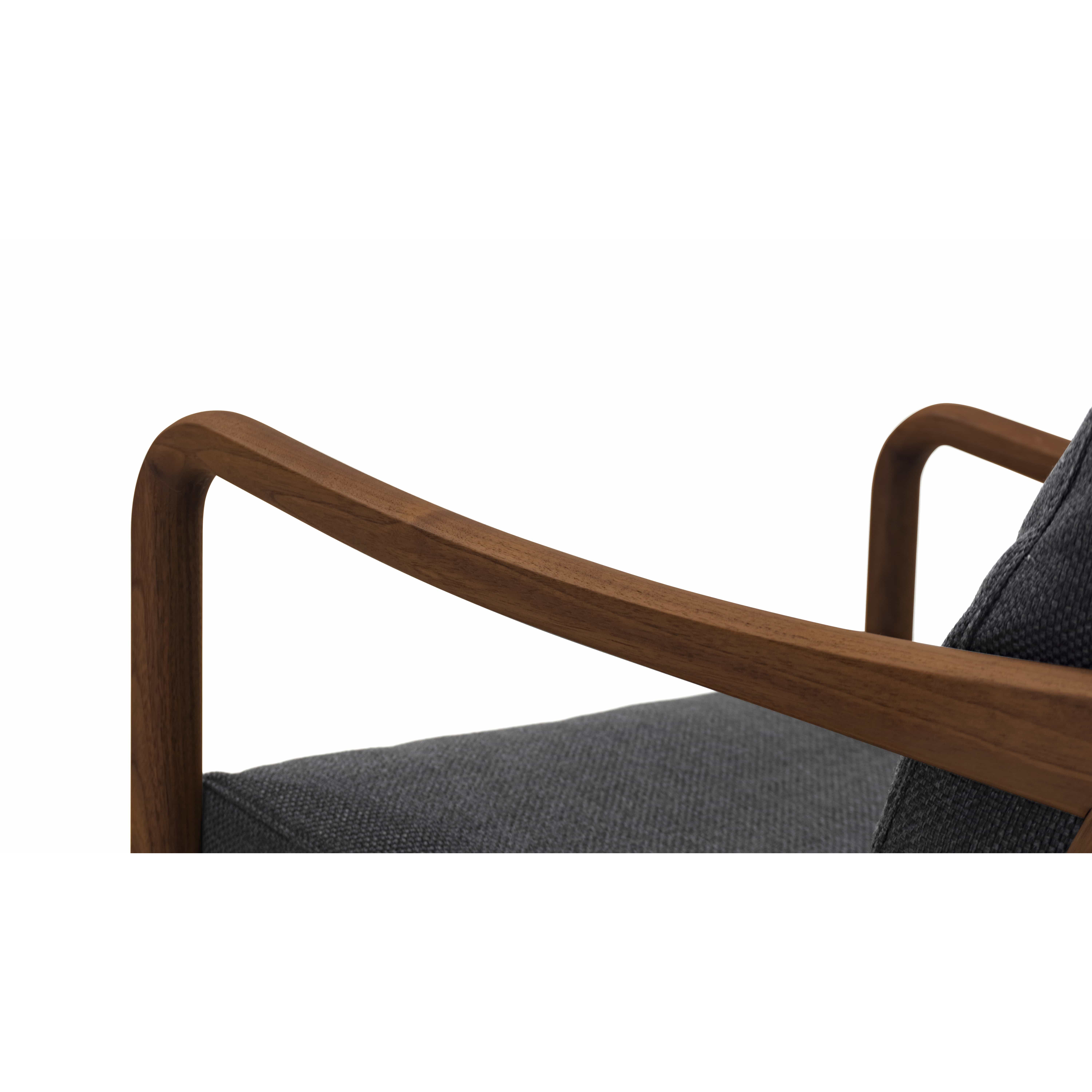 アーム部分は手や腕にフィットするようになめらかな曲面を削り出しており、クッション部分はハーフダウンにすることで、しっとりした座り心地とボリューム感を実現しています。