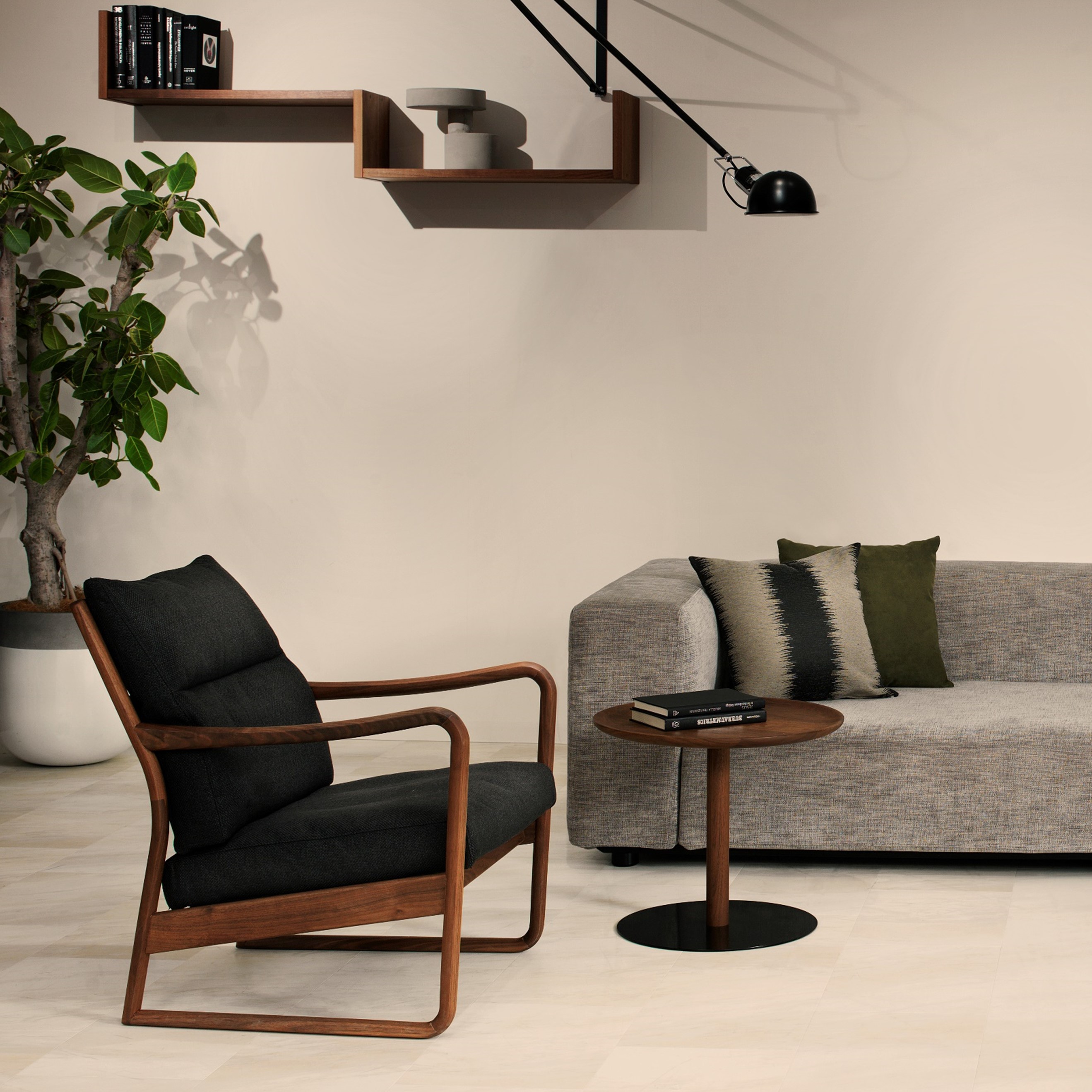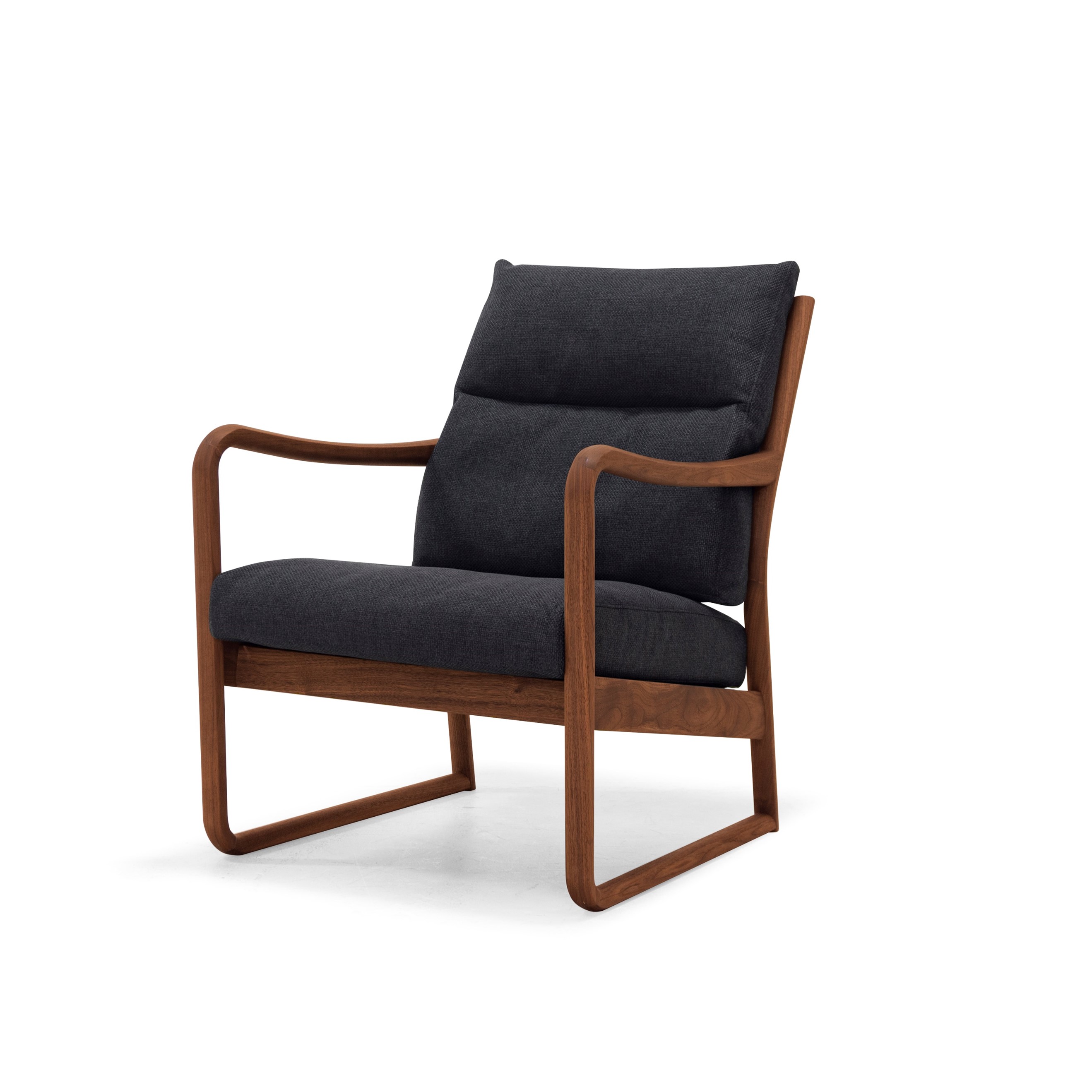 アーム部分は手や腕にフィットするようになめらかな曲面を削り出しており、クッション部分はハーフダウンにすることで、しっとりした座り心地とボリューム感を実現しています。