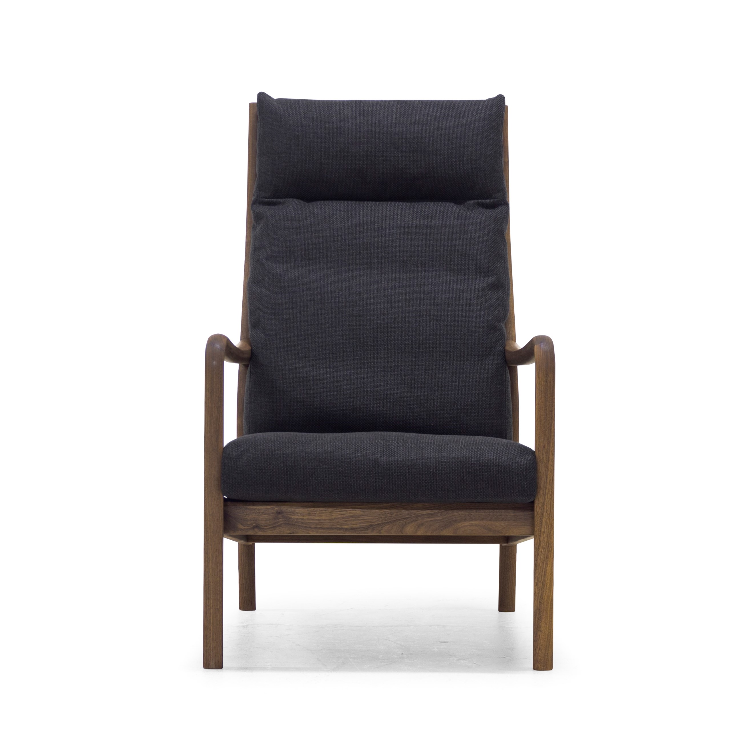 アーム部分は手や腕にフィットするようになめらかな曲面を削り出しており、クッション部分はハーフダウンにすることで、しっとりした座り心地とボリューム感を実現しています。ウォールナットの落ち着いた色あいと質感が、くつろぎの時間に心地よくフィット。良質な素材ならではの耐久性と、デザイン性の両方を兼ね備えています。