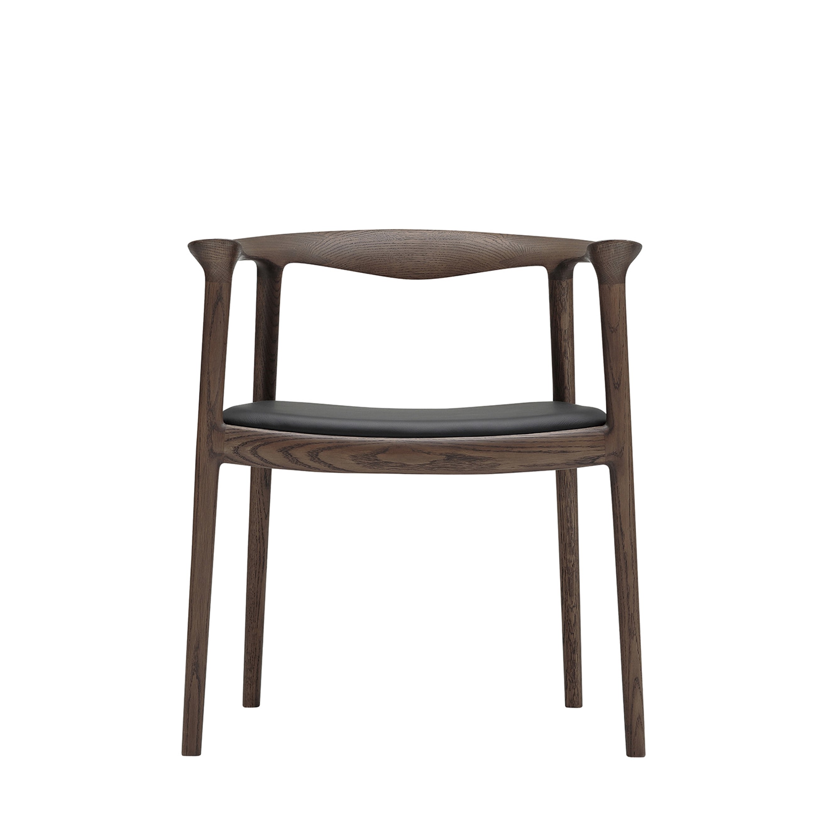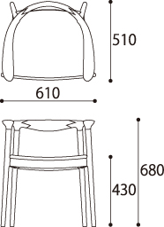 北欧デザインの機能的な美しさを継承し、シンプルさを追求した無駄のないフォルムの椅子。同シリーズのテーブル天板下に、アームはもちろん笠木のほとんどを収めることができ、かつアーム位置が高いことで着座時により快適に過ごしていただくことができます。視覚的な美しさだけでなく、実用性を兼ね備えたこのフォルムは、最新の製造技術と職人たちの確かな手仕事によって実現しました。