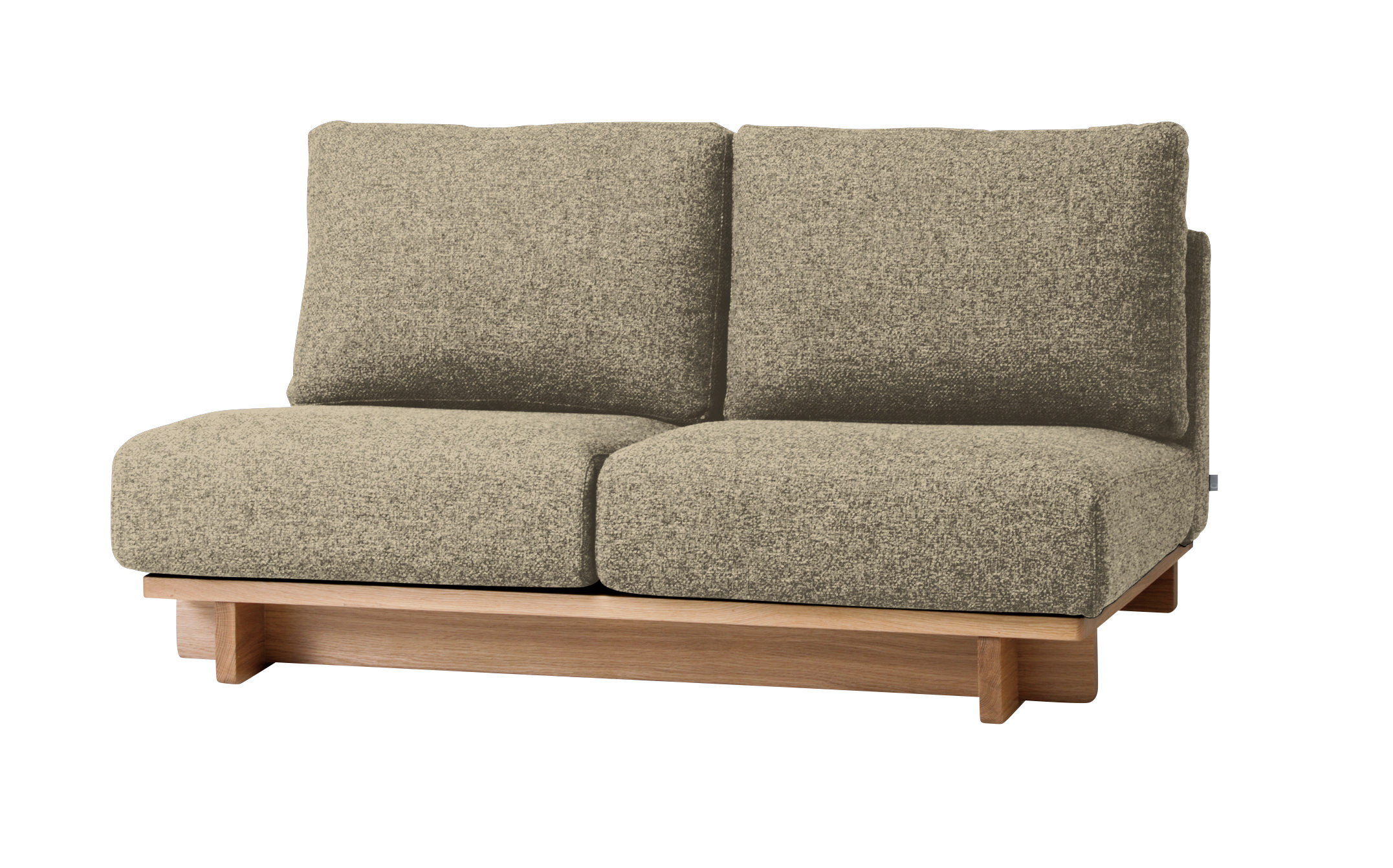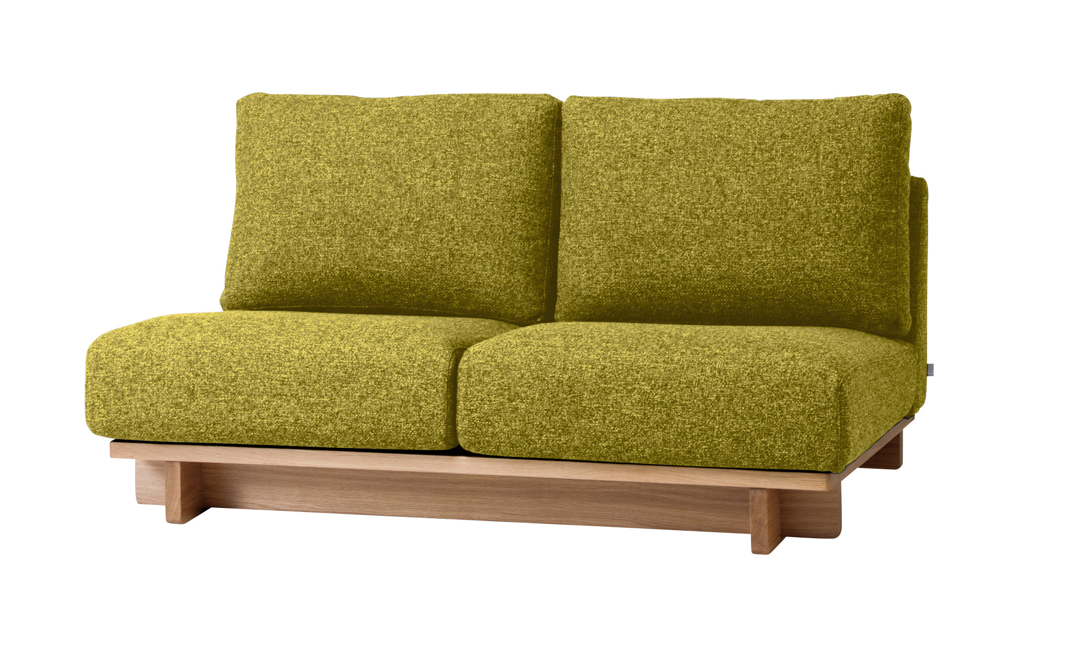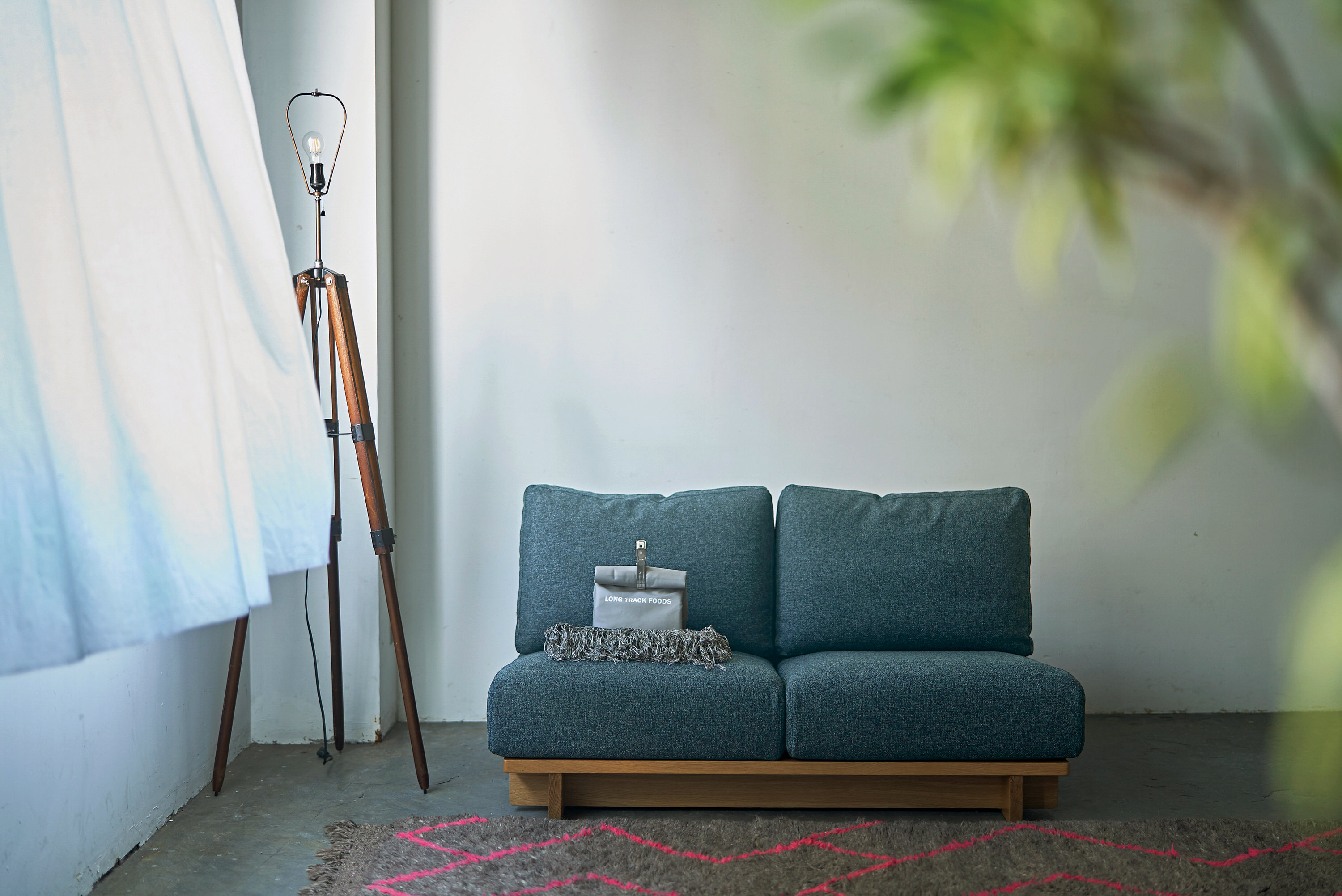 交差した天然木のフレームにボリュームのあるクッションを配置したソファです。座の高さは低めに抑えておりますので、どっしりと体を預けられます。2人掛け、1人掛け、オットマンを組み合わせることで自由にレイアウトできます。和にも洋にも合う雰囲気を持ったソファとなりました。