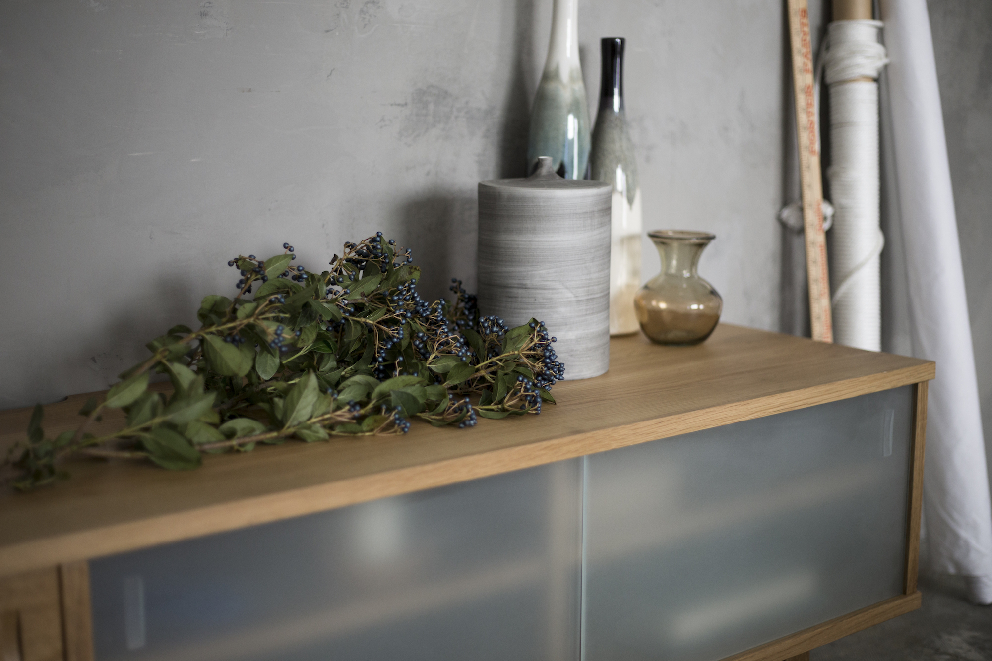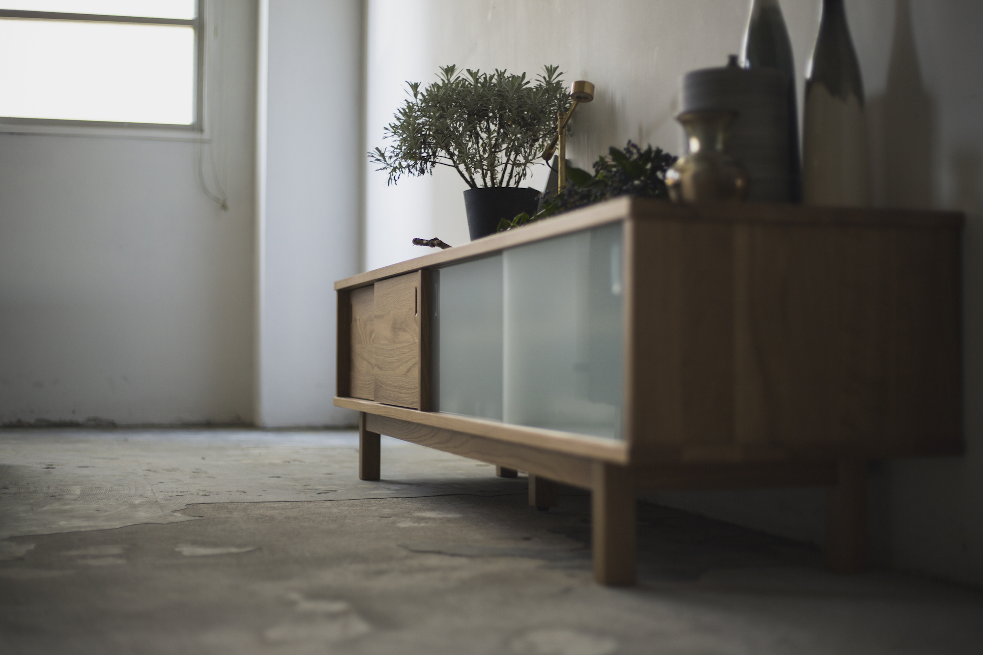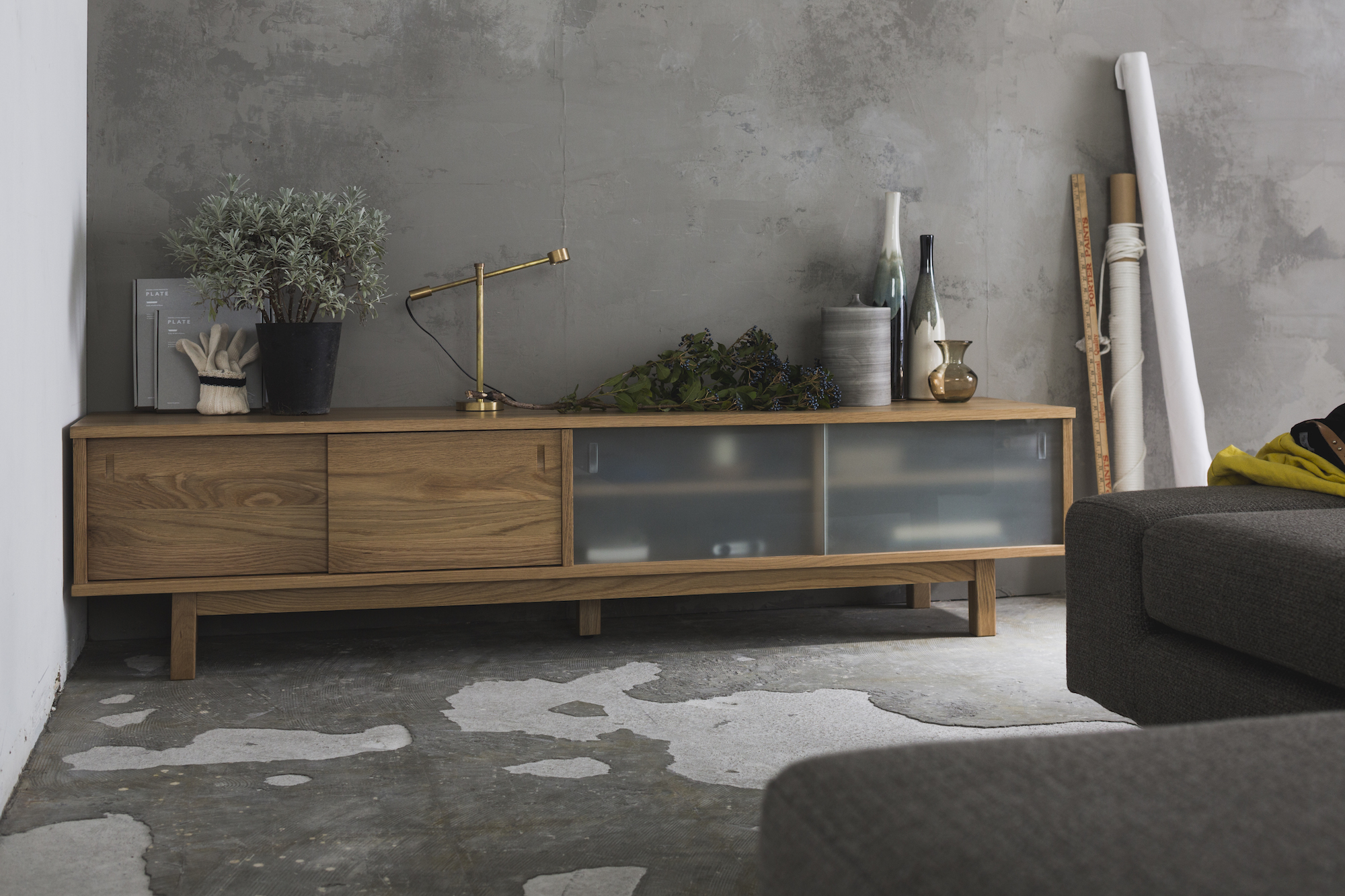| 素材 | 天板:オーク無垢材(ウレタン塗装) 戸:オーク無垢材(ウレタン塗装)、強化ガラス |