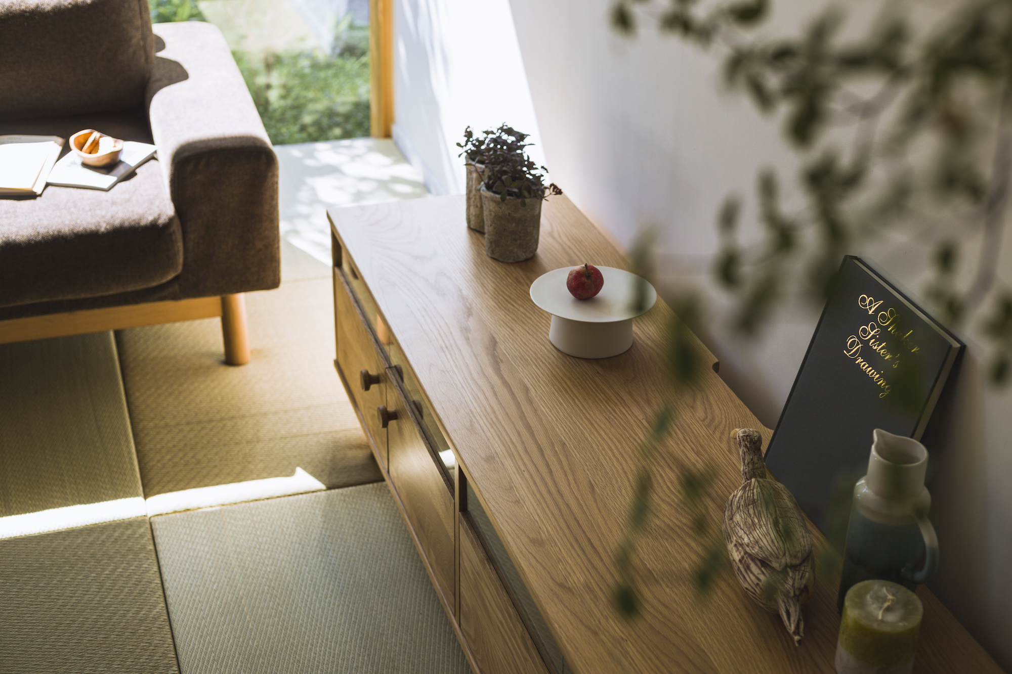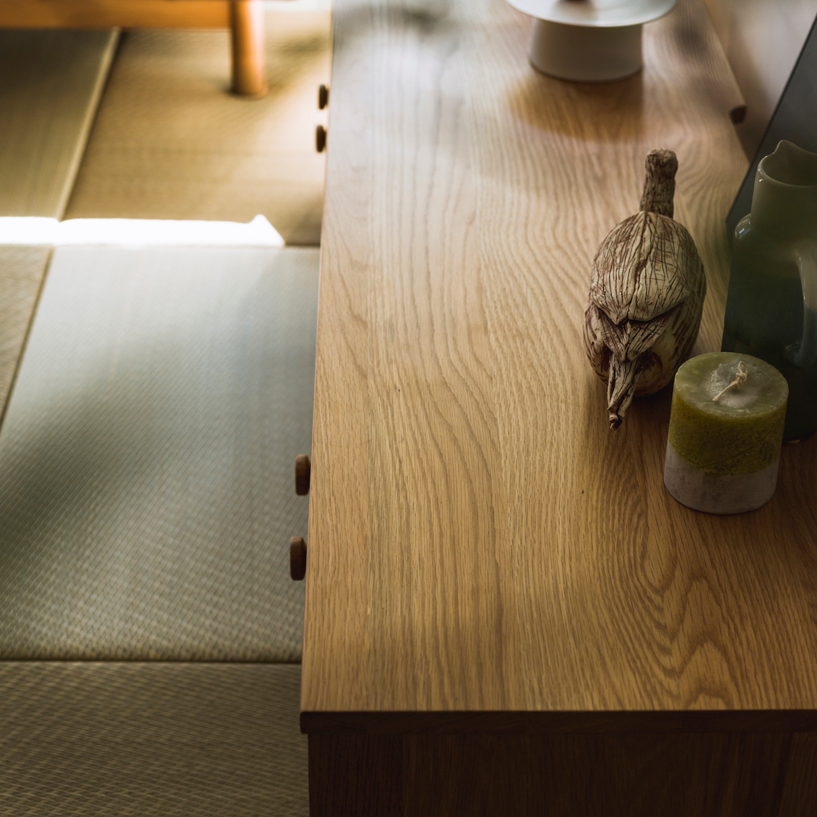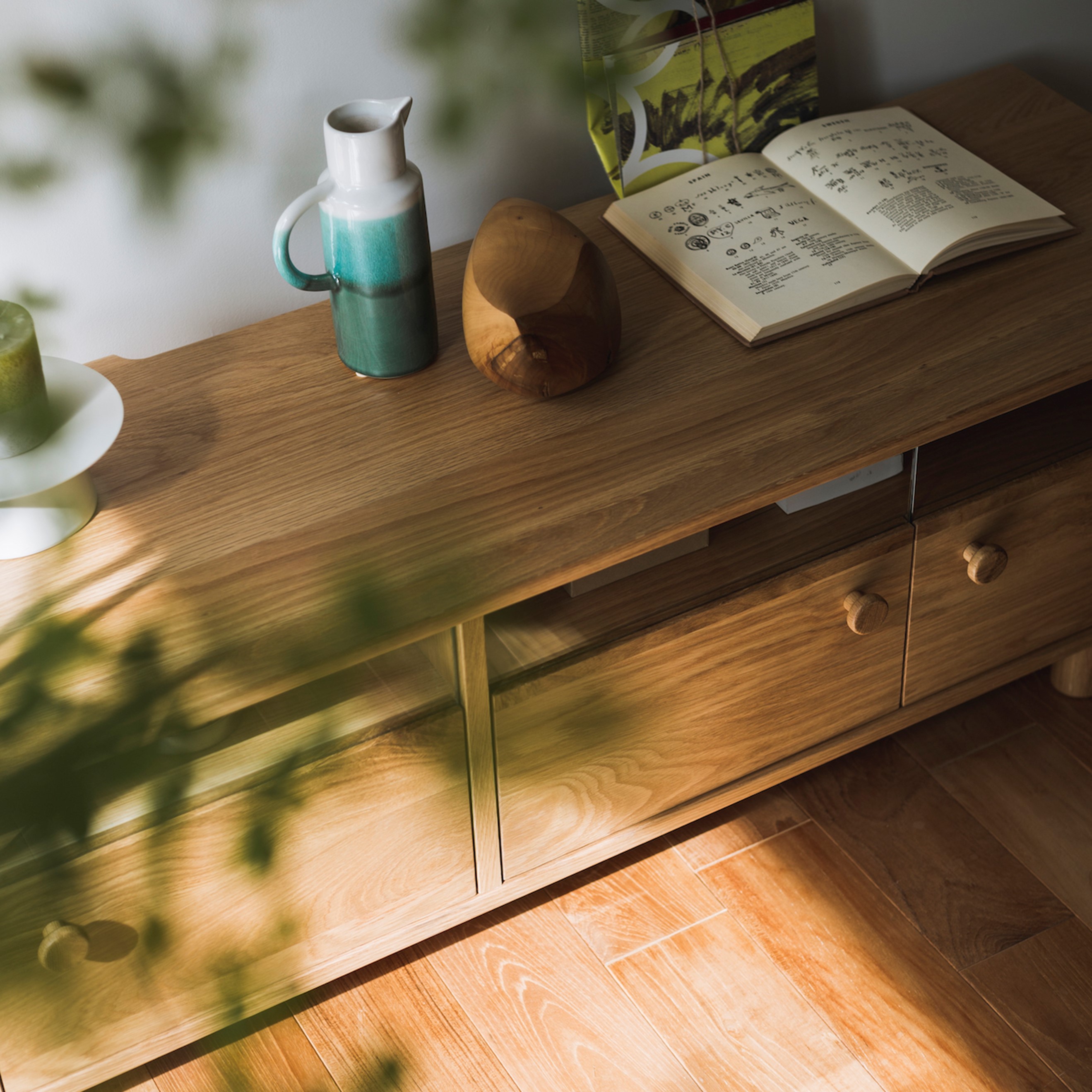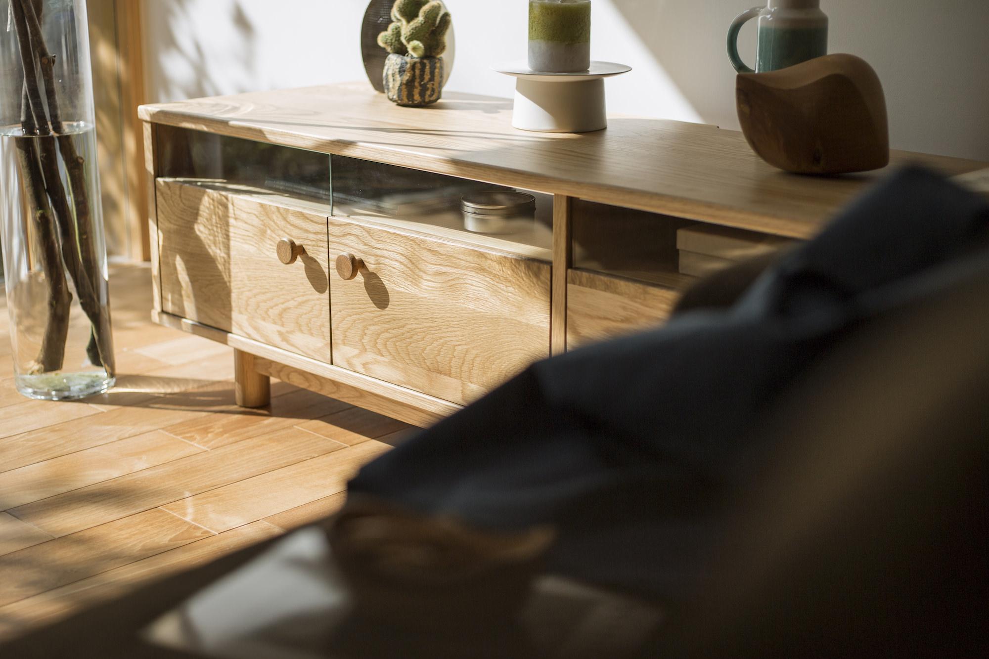 | 素材 | 本体:オーク無垢材(ウレタン塗装) 扉:オーク無垢材(ウレタン塗装)、強化ガラス |