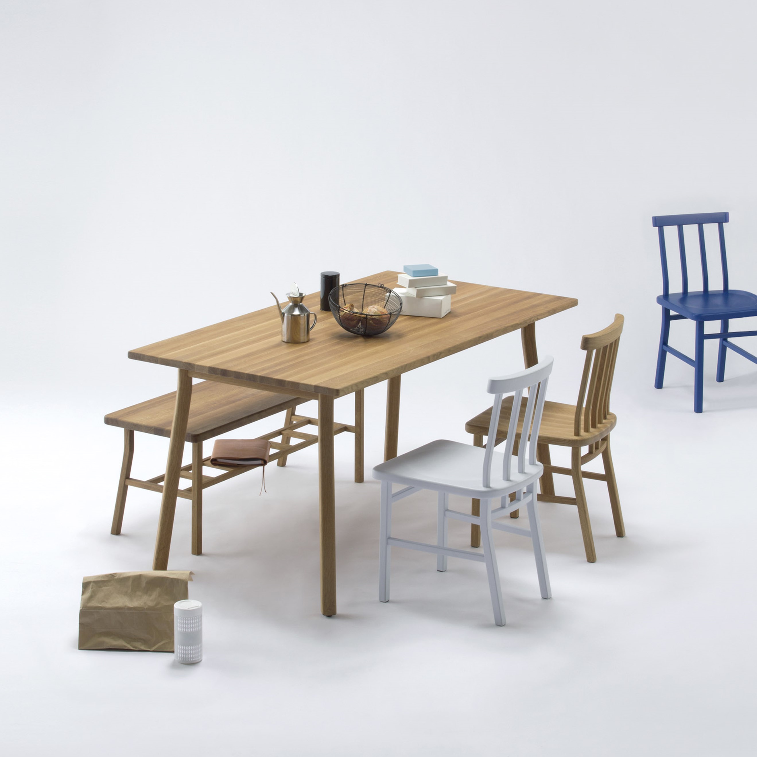 伝統的な椅子の形状に4種類のカラー展開で新しい感覚を融合させたダイニングチェアシリーズ。