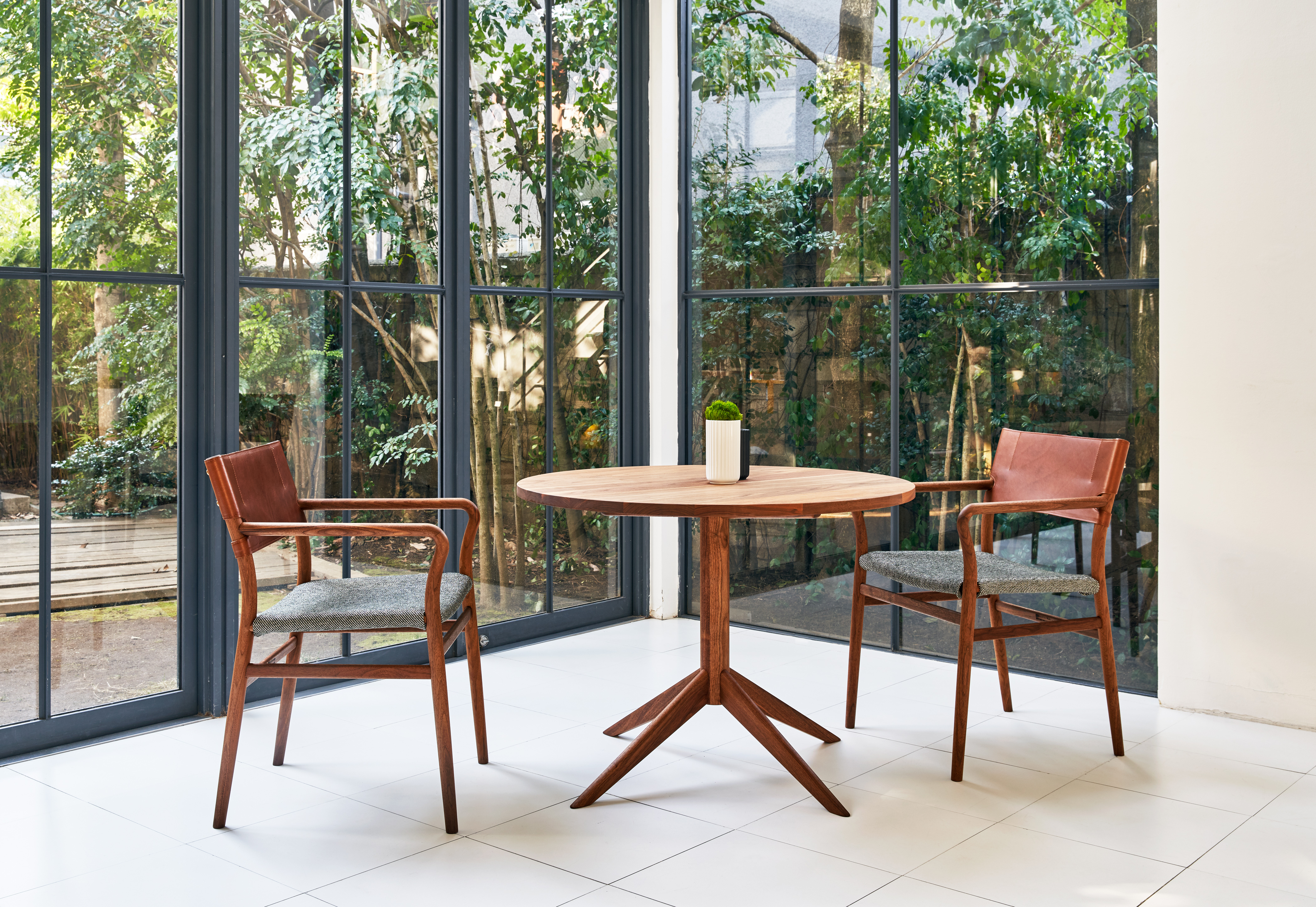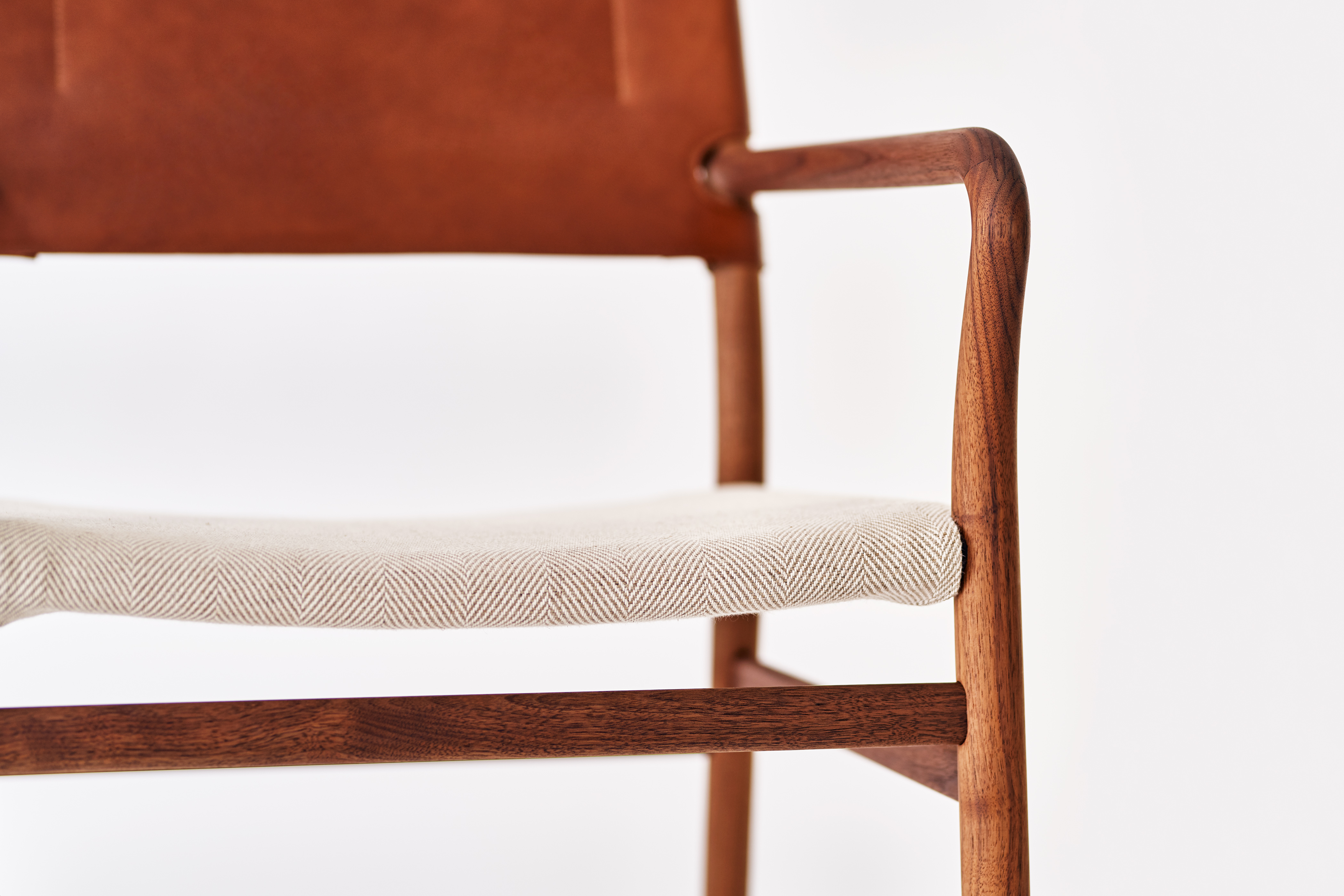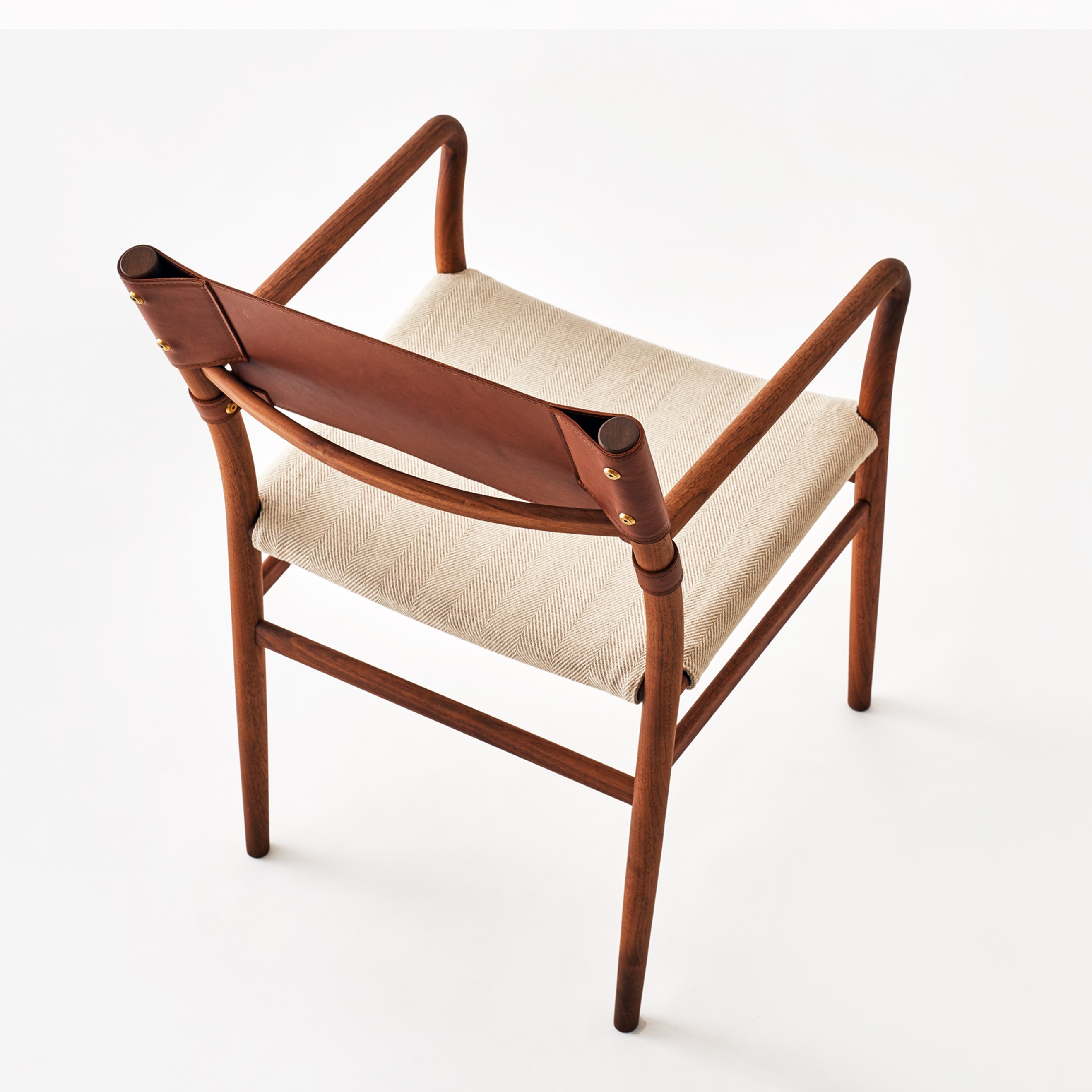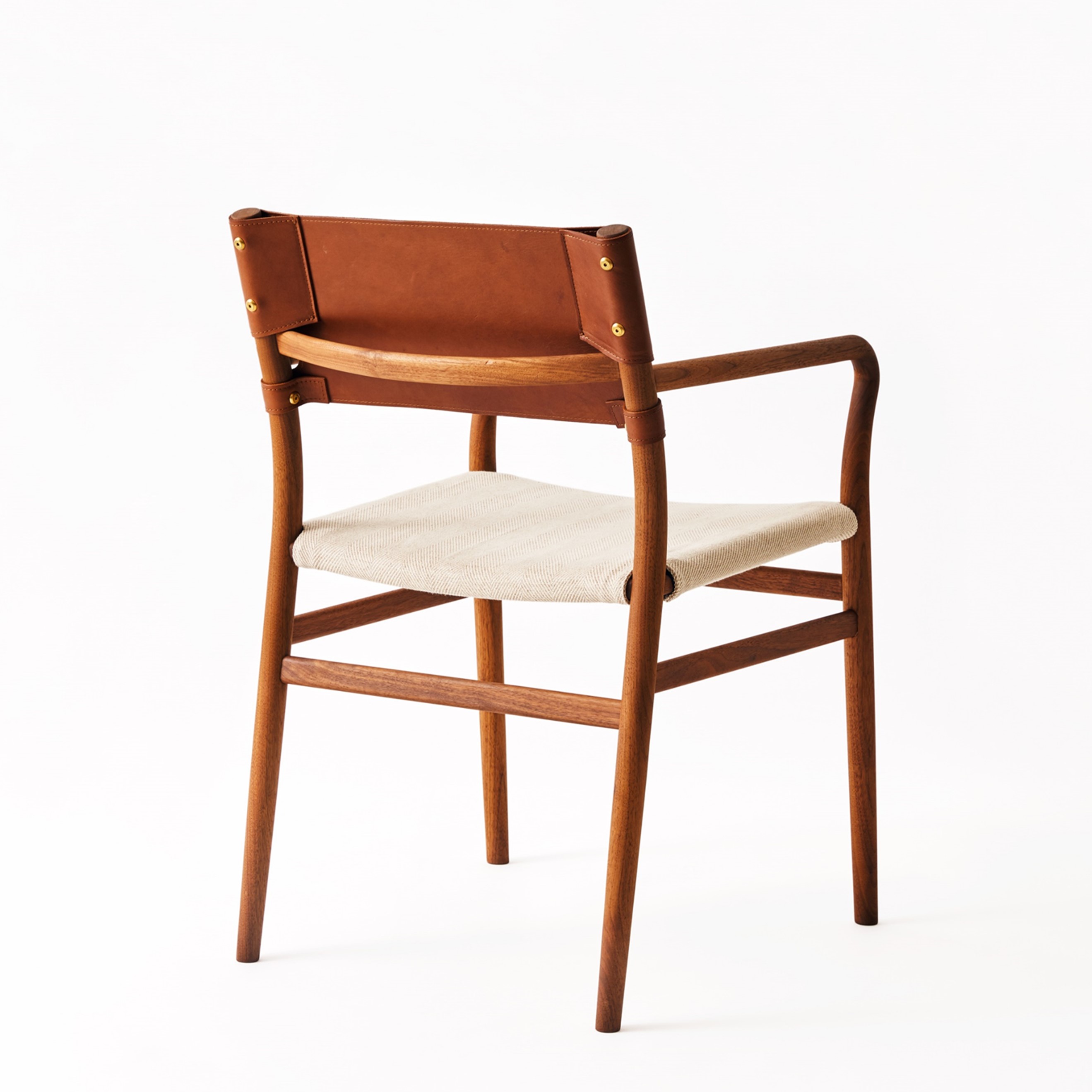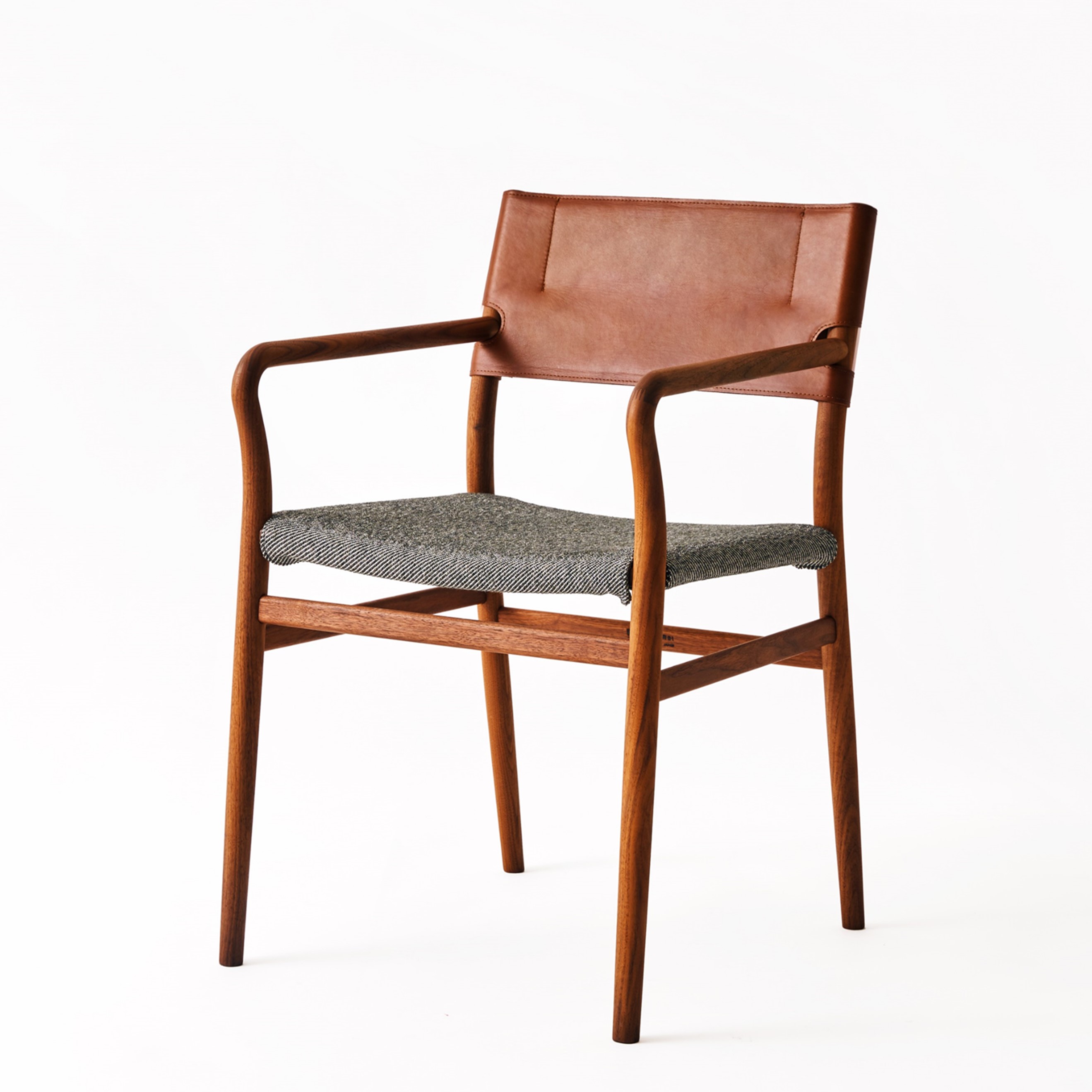アームから前脚にかけて湾曲する細身のフレームが、美しいプロポーションを実現し、チェアとして非常に軽量に作られています。 また、レザーの背もたれは優しく体を包み込んでくれ、長時間の使用でも快適に過ごせます。