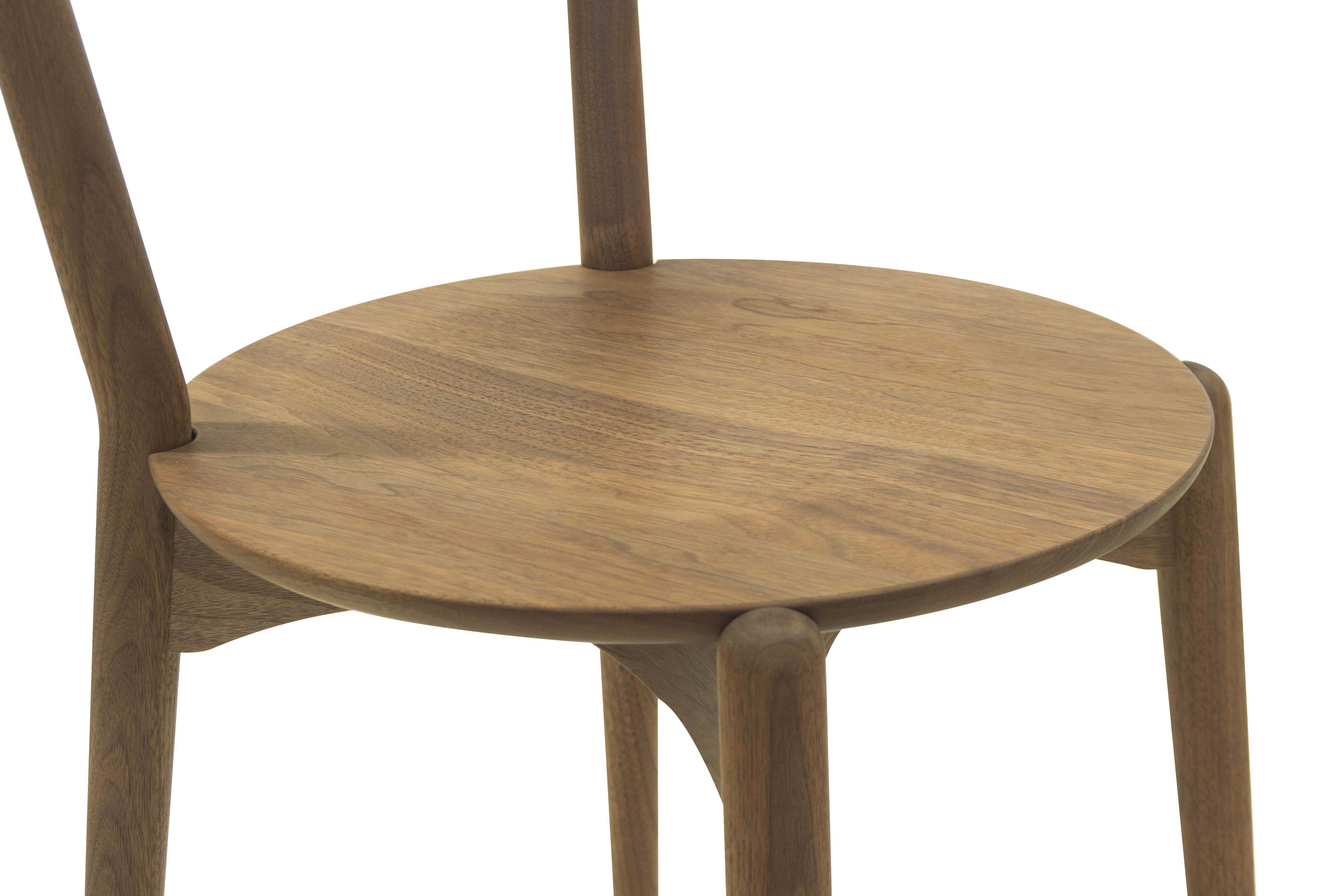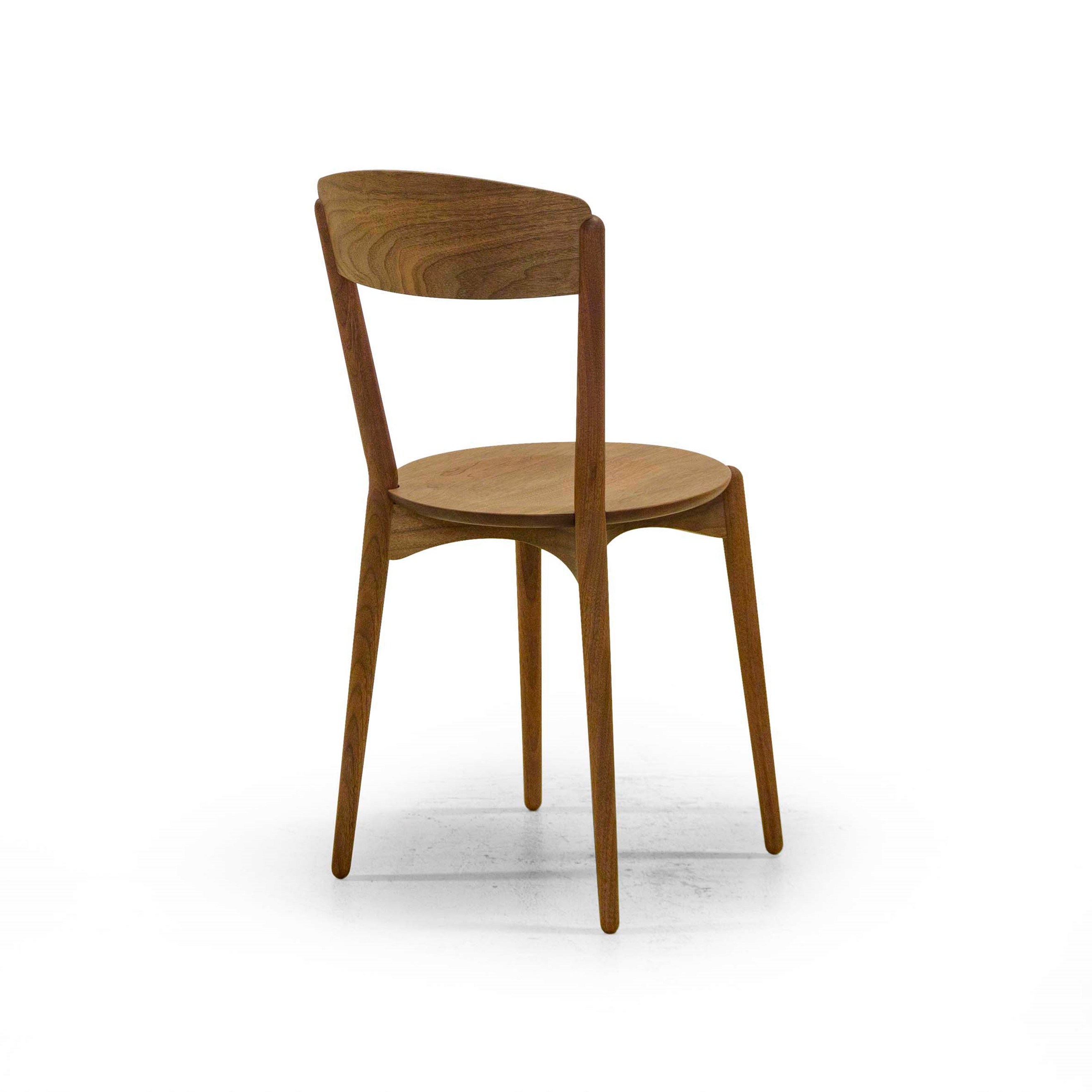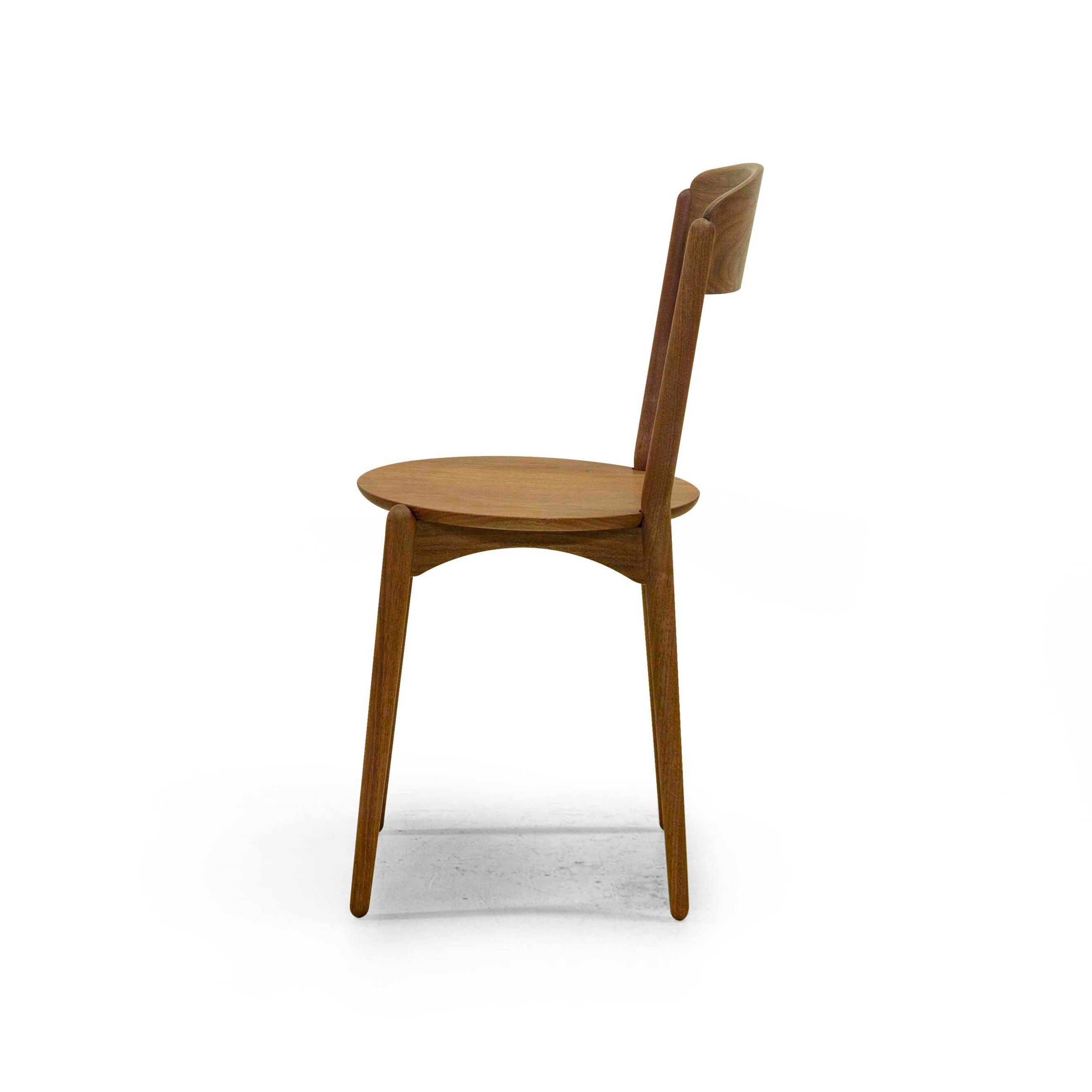 円と直線から構成されるシンプルなデザインの小ぶりなサイドチェア。