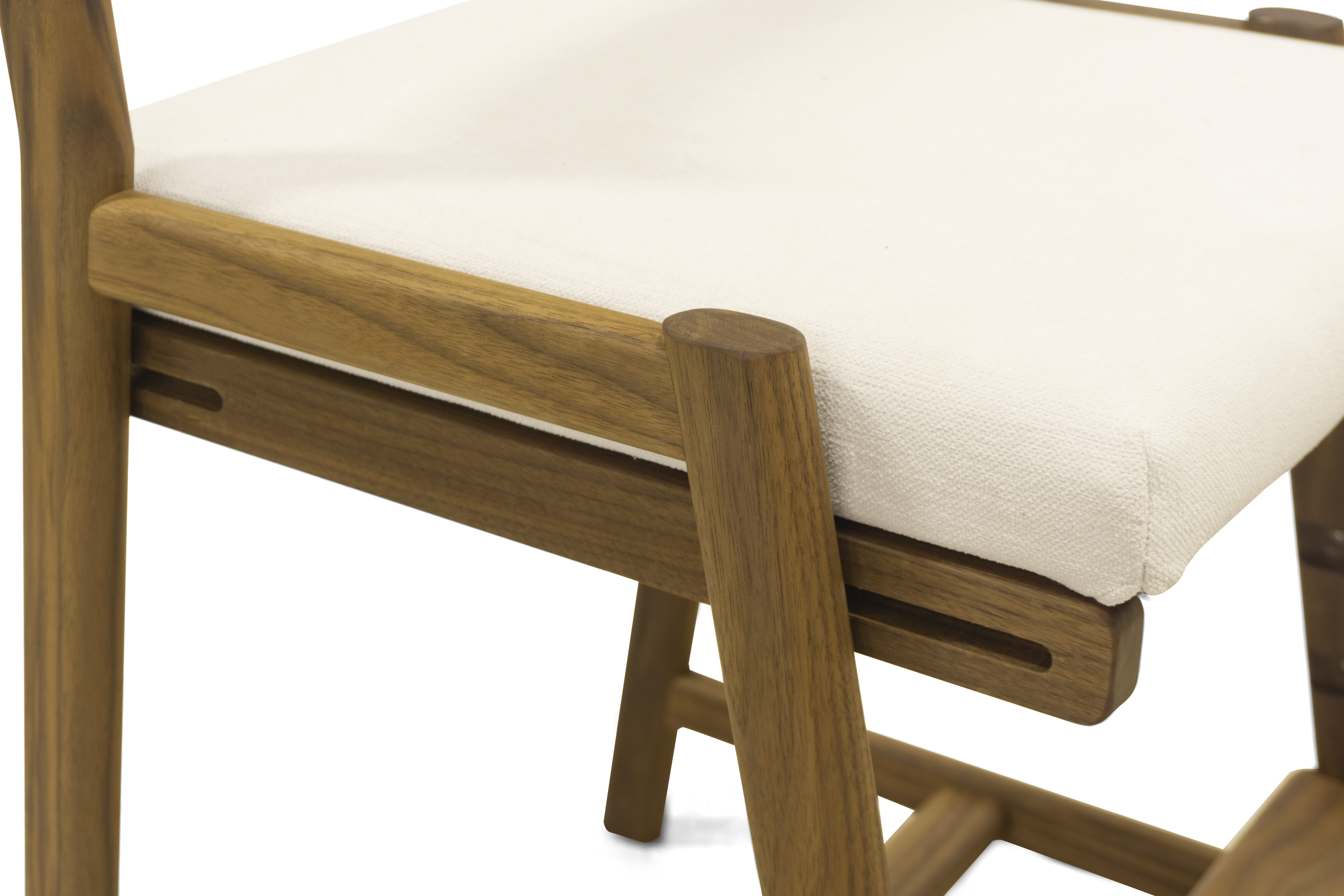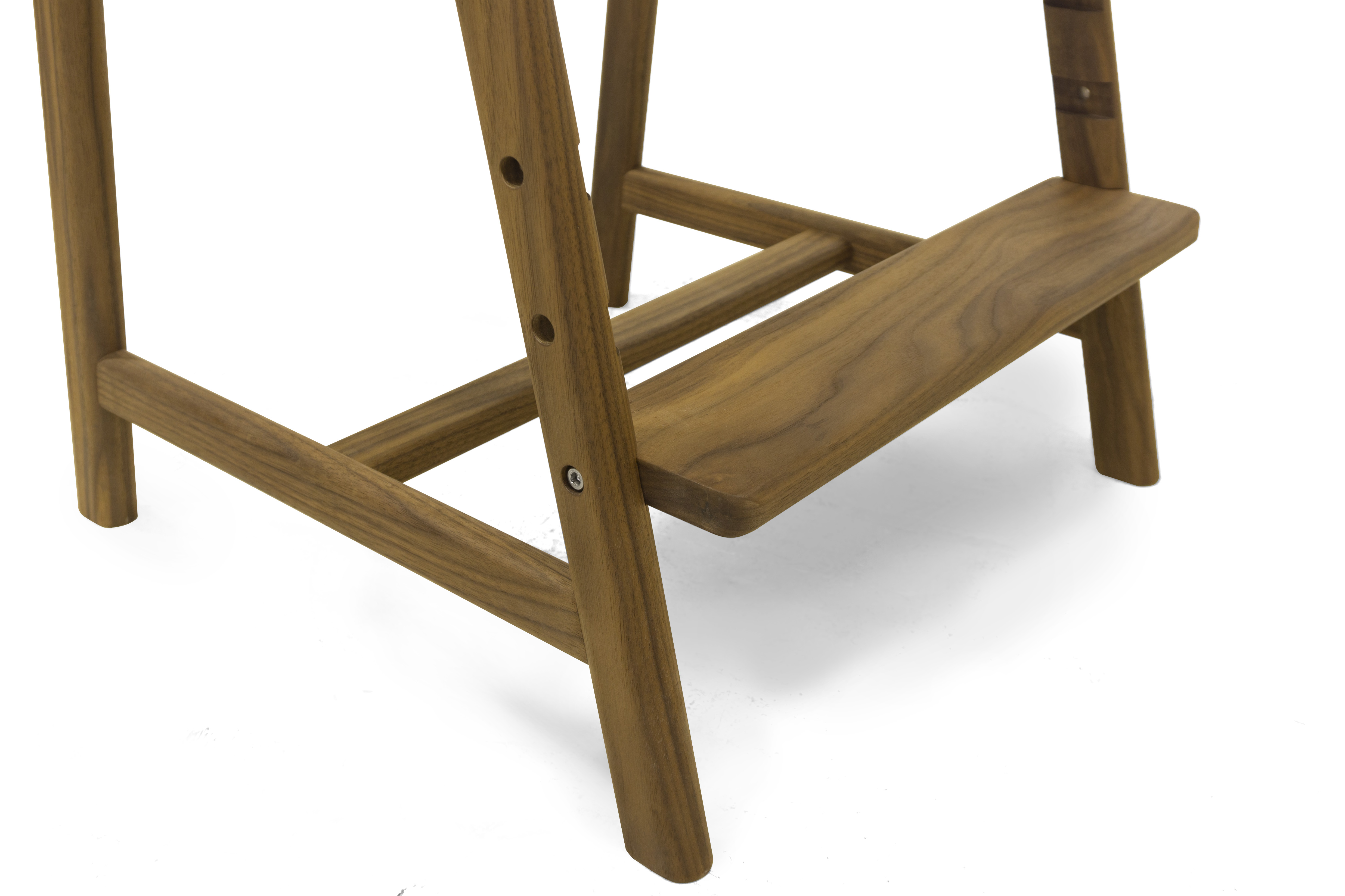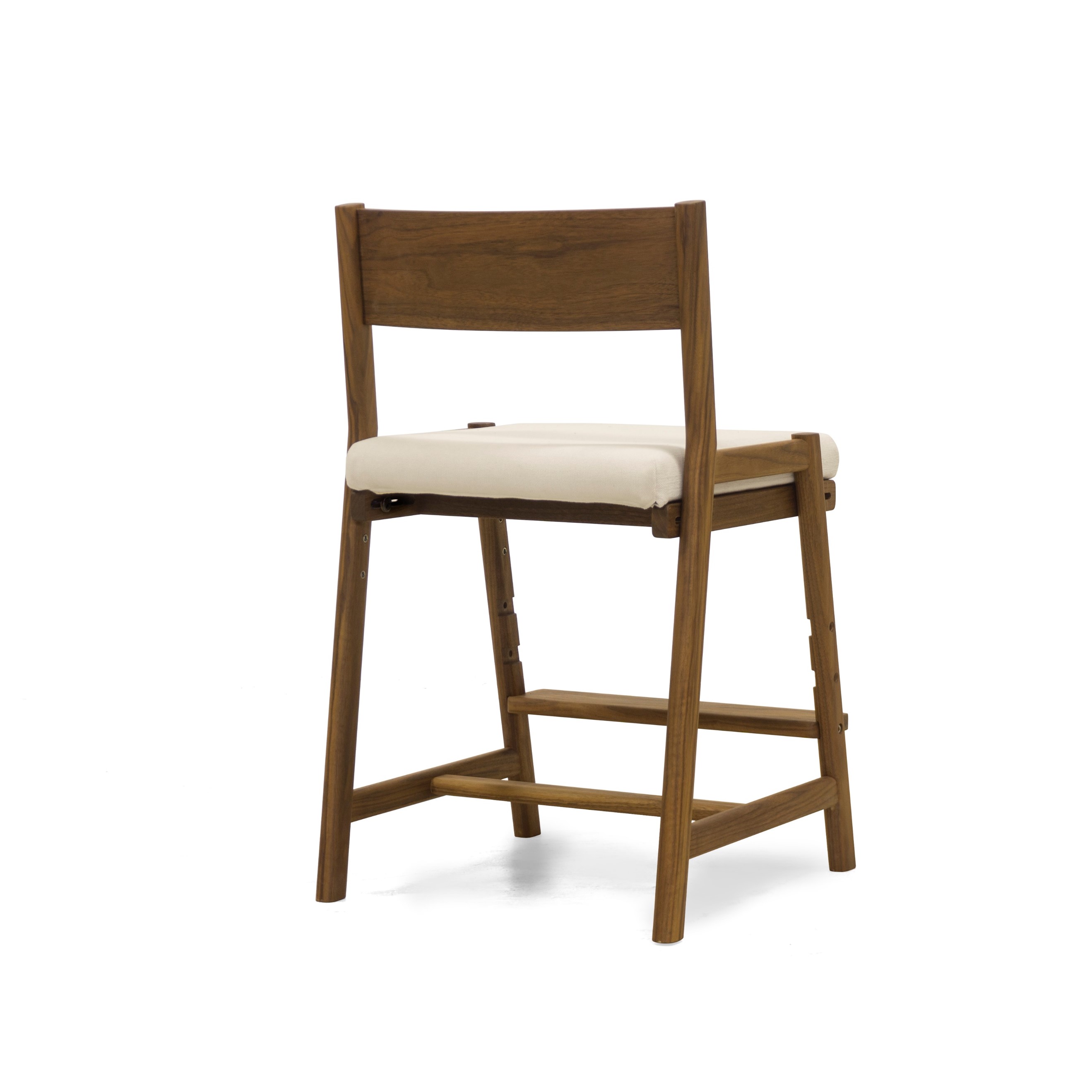 LABチェアは成長に合わせて4段階に高さ調整が可能です。マスターウォールの無垢材とファブリック・レザーを使用した上質なチェアに仕上げられています。