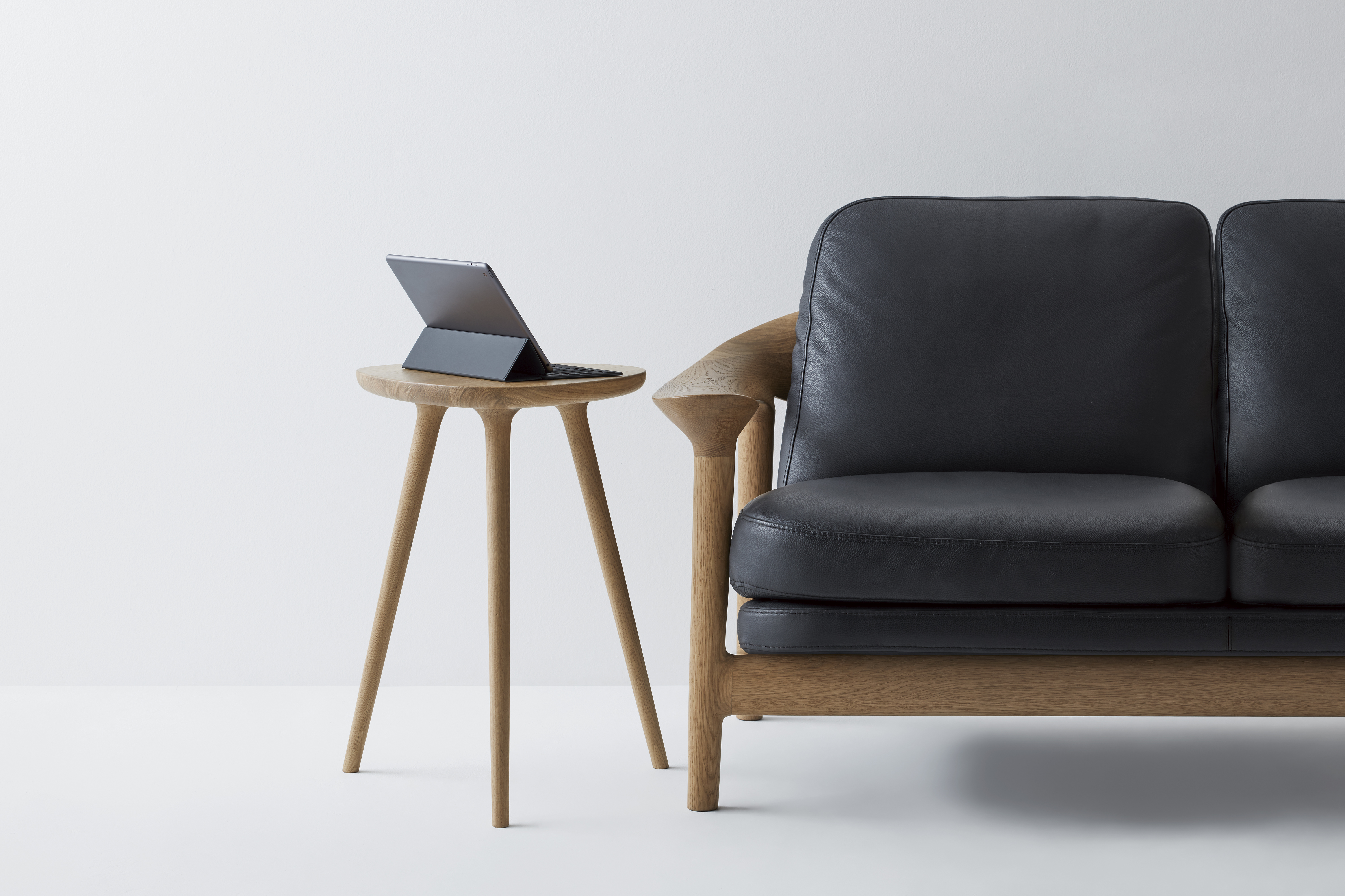 コンパクトでシンプルなデザインのテーブルは、BRIDGE SOFAに丁度いい高さで設計され、ソファに座りながらのPCワークやコーヒーブレイクなど様々なシーンに溶け込みます。