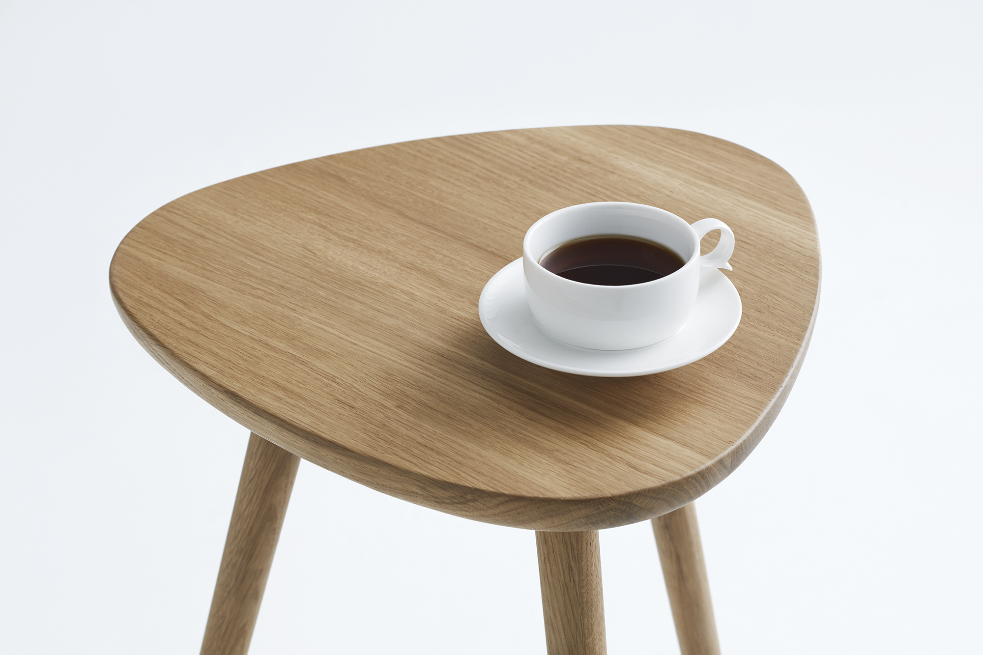 丸みを帯びた天板と三本脚が美しいソファサイドテーブル。