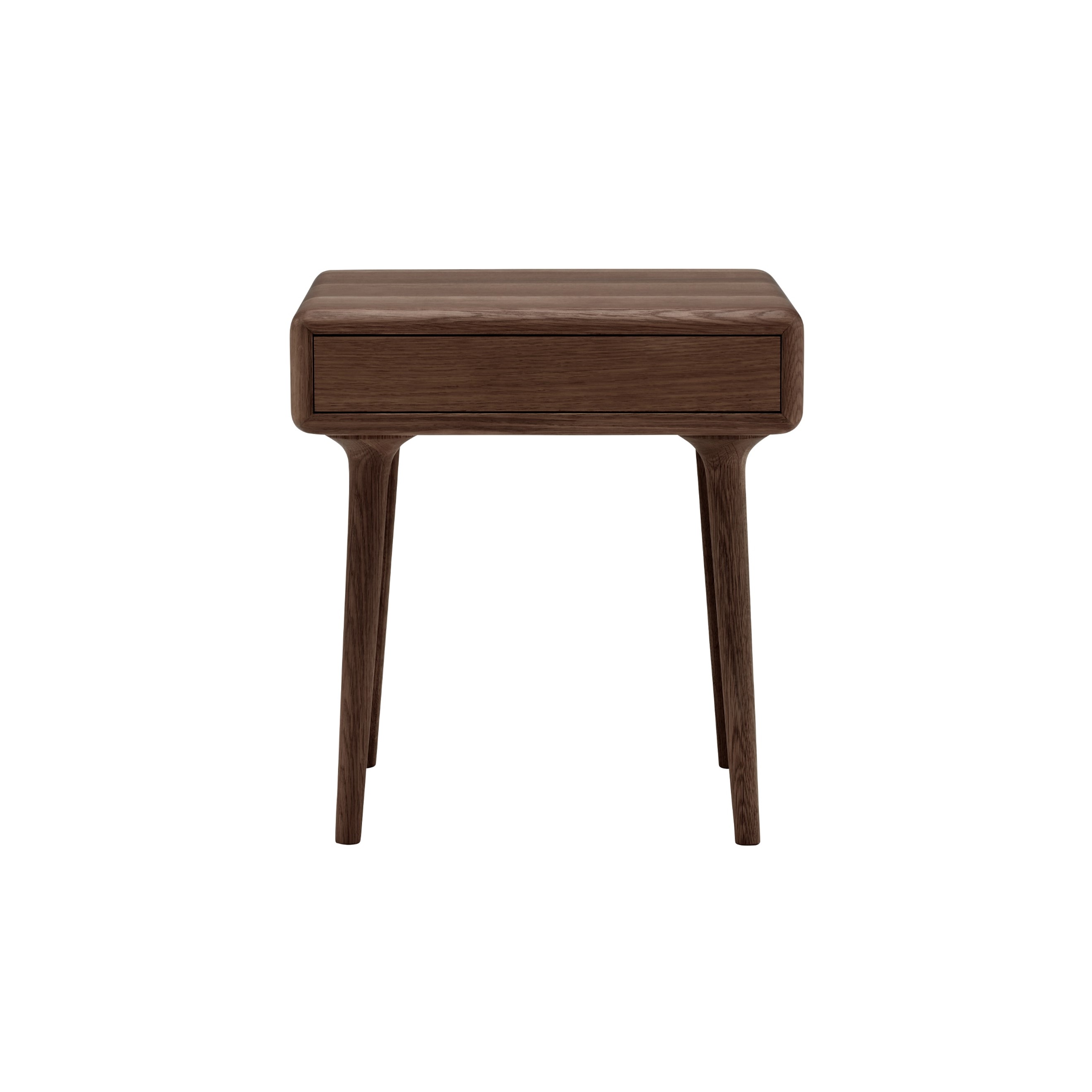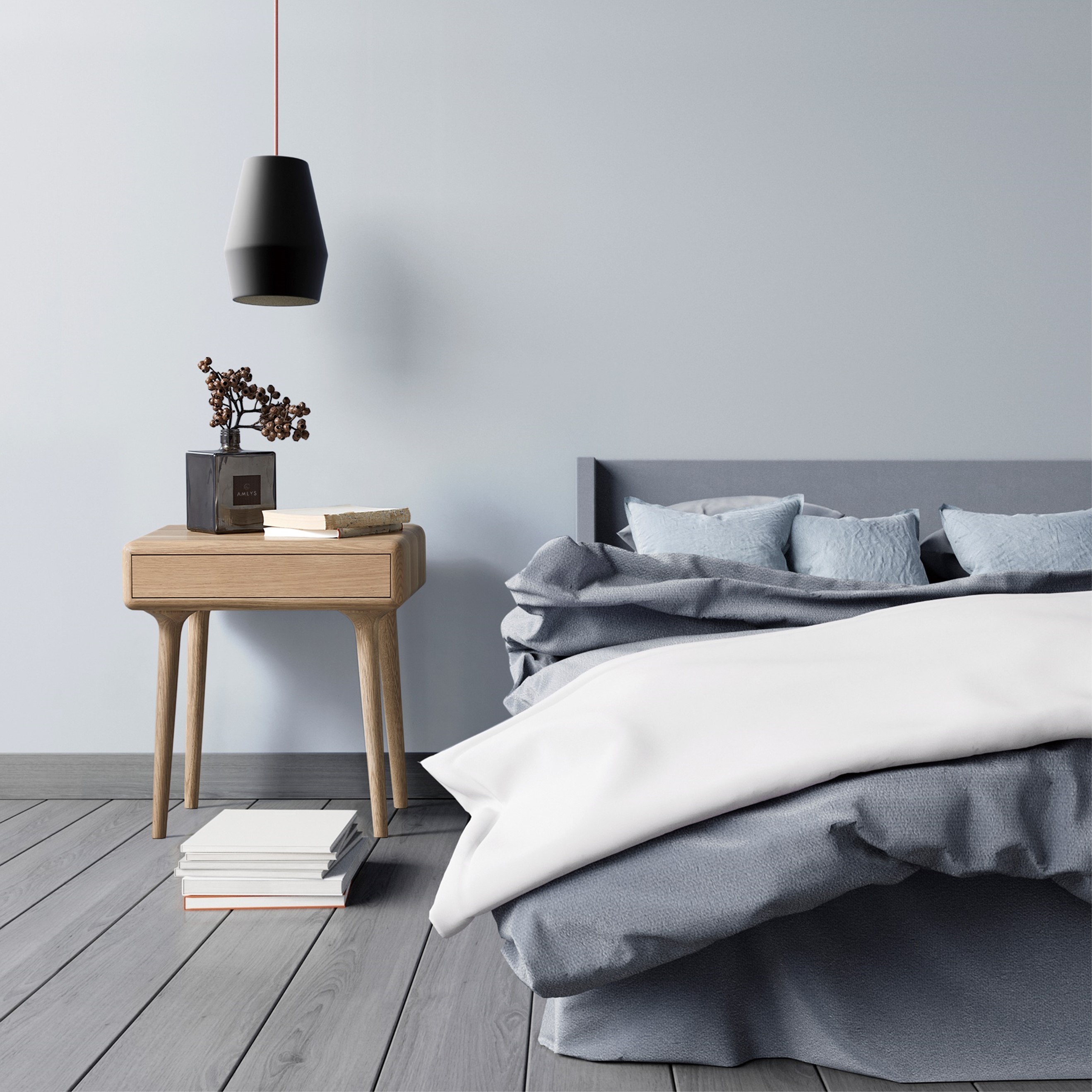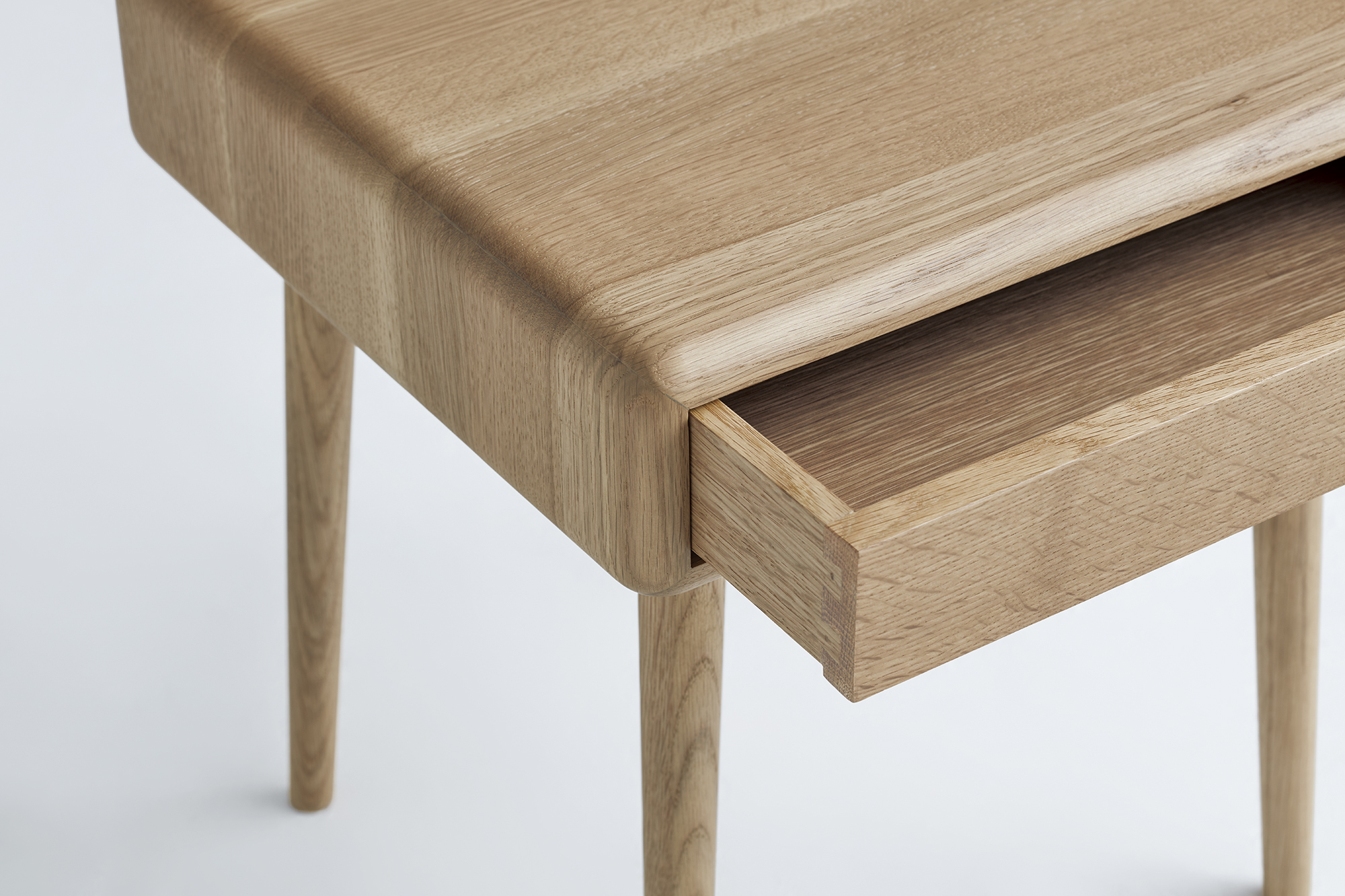 オーク材の美しい木目と、取手や金具といった要素を一切見せないシンプルなデザインがベッドサイドをやさしく彩ります。