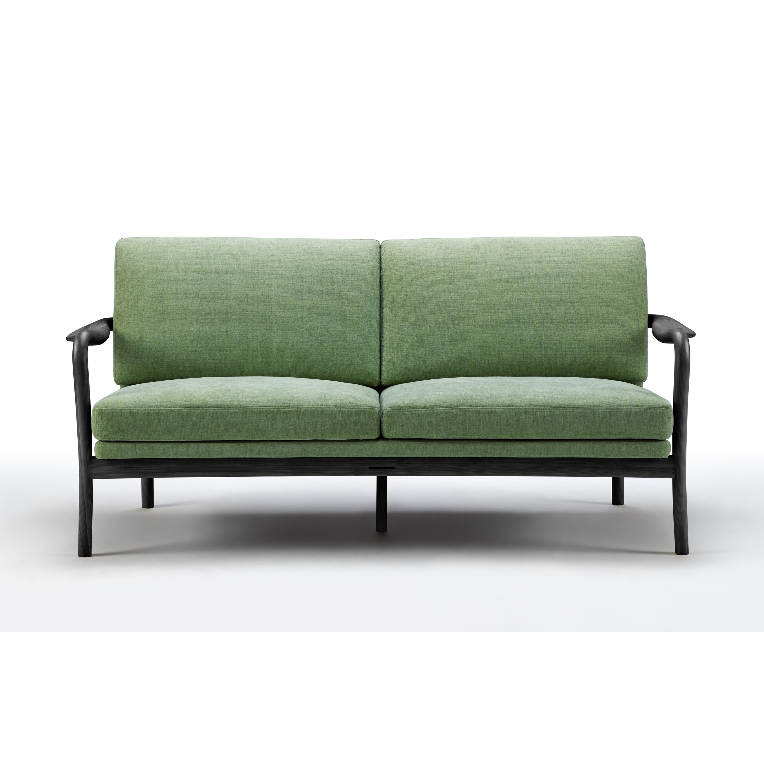 自然と身体が内側に向き合うように、座面に曲線がつけられたソファ。