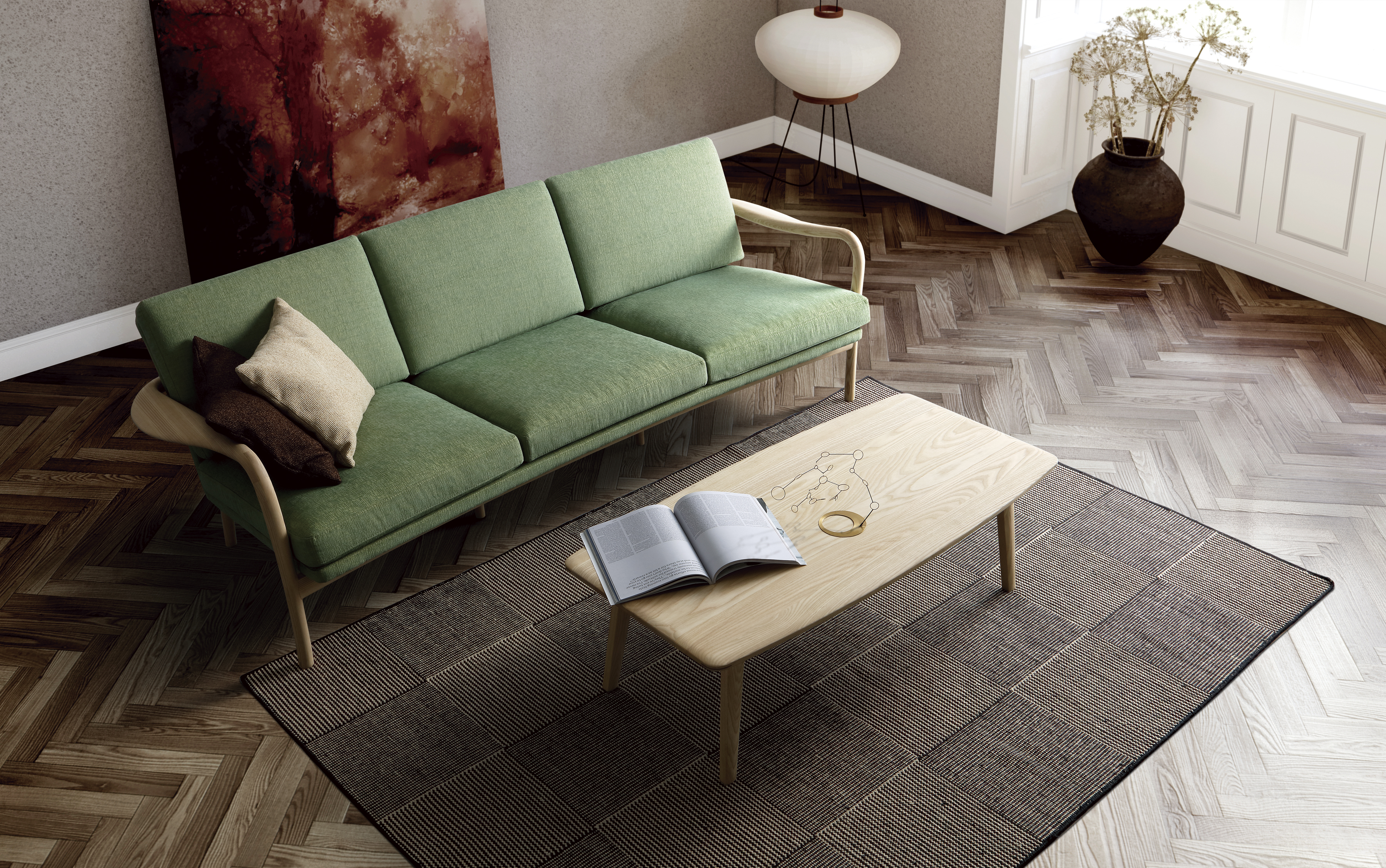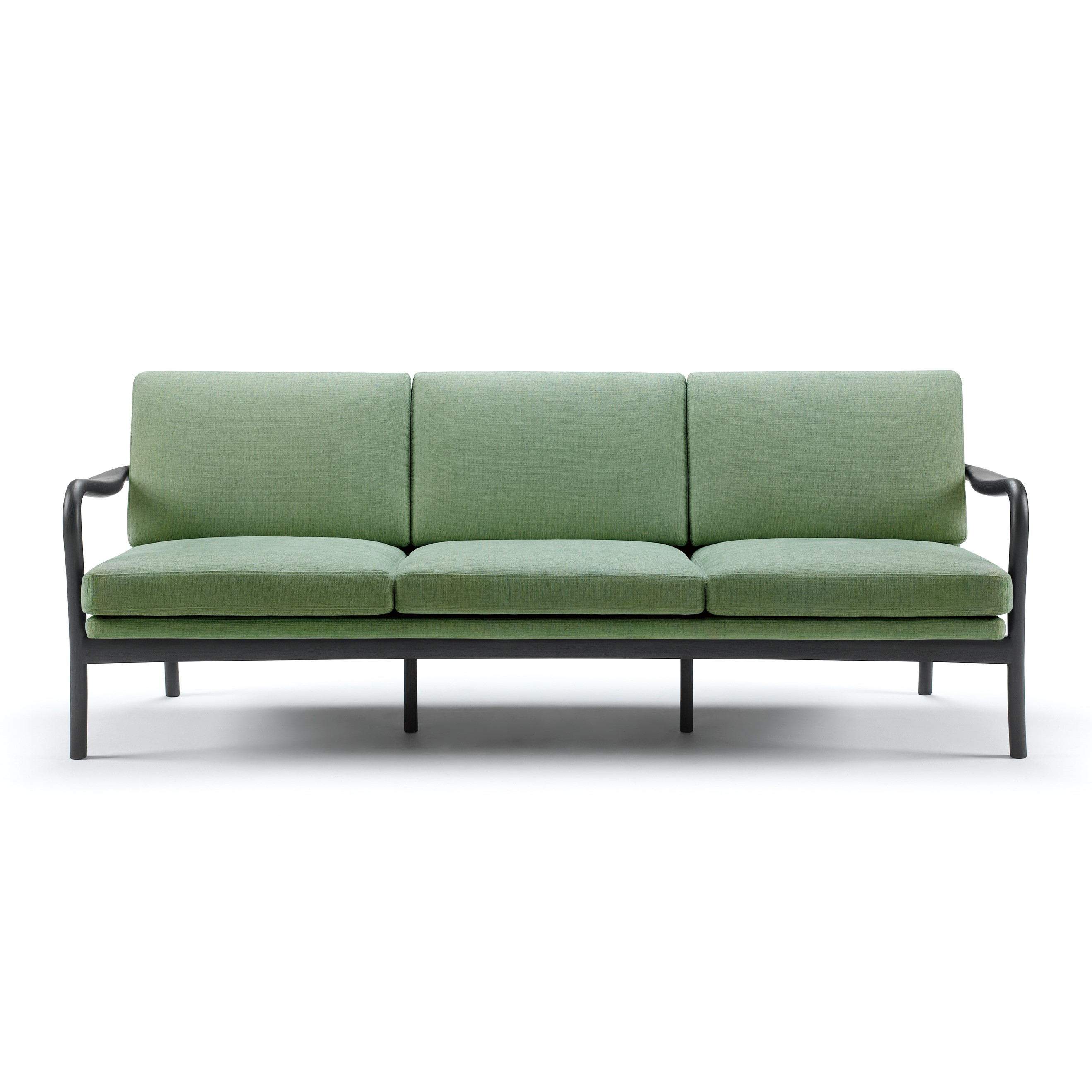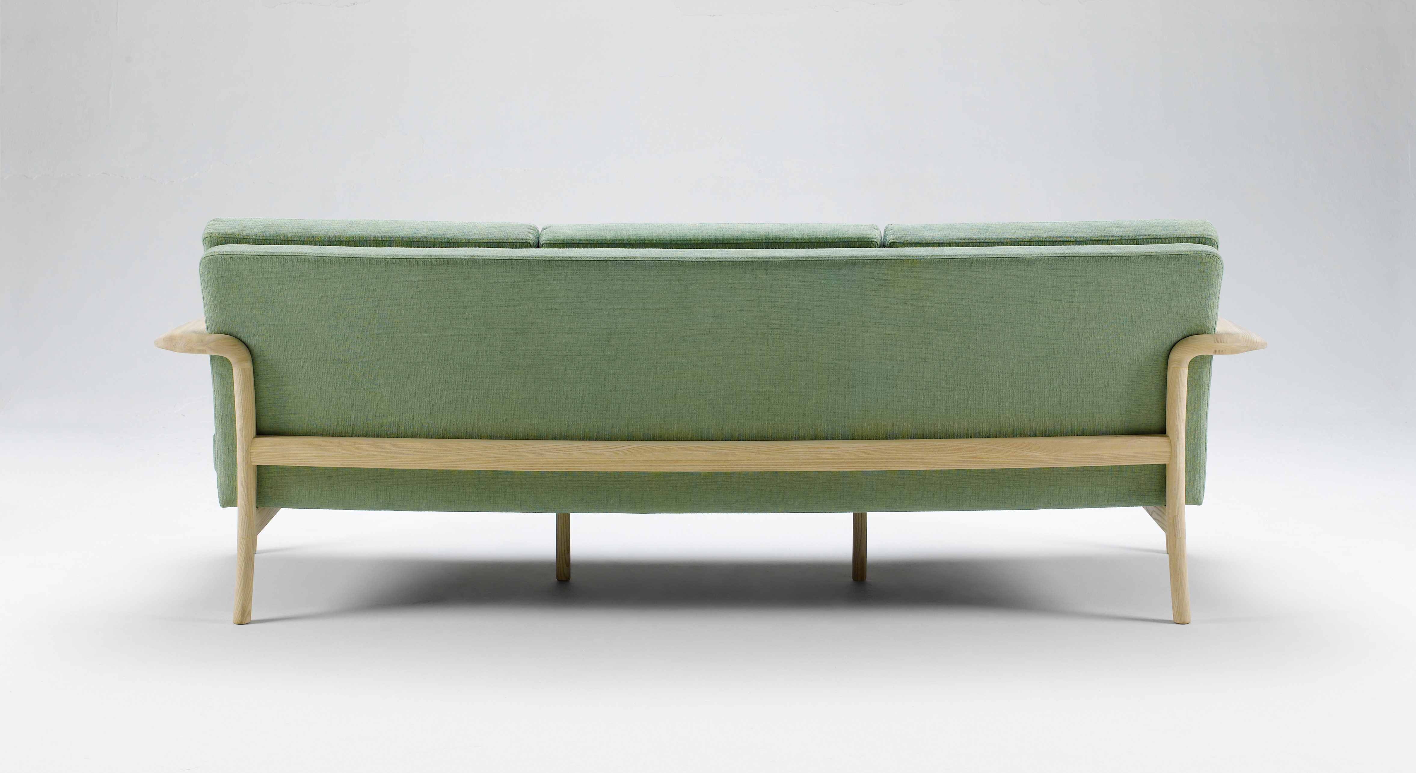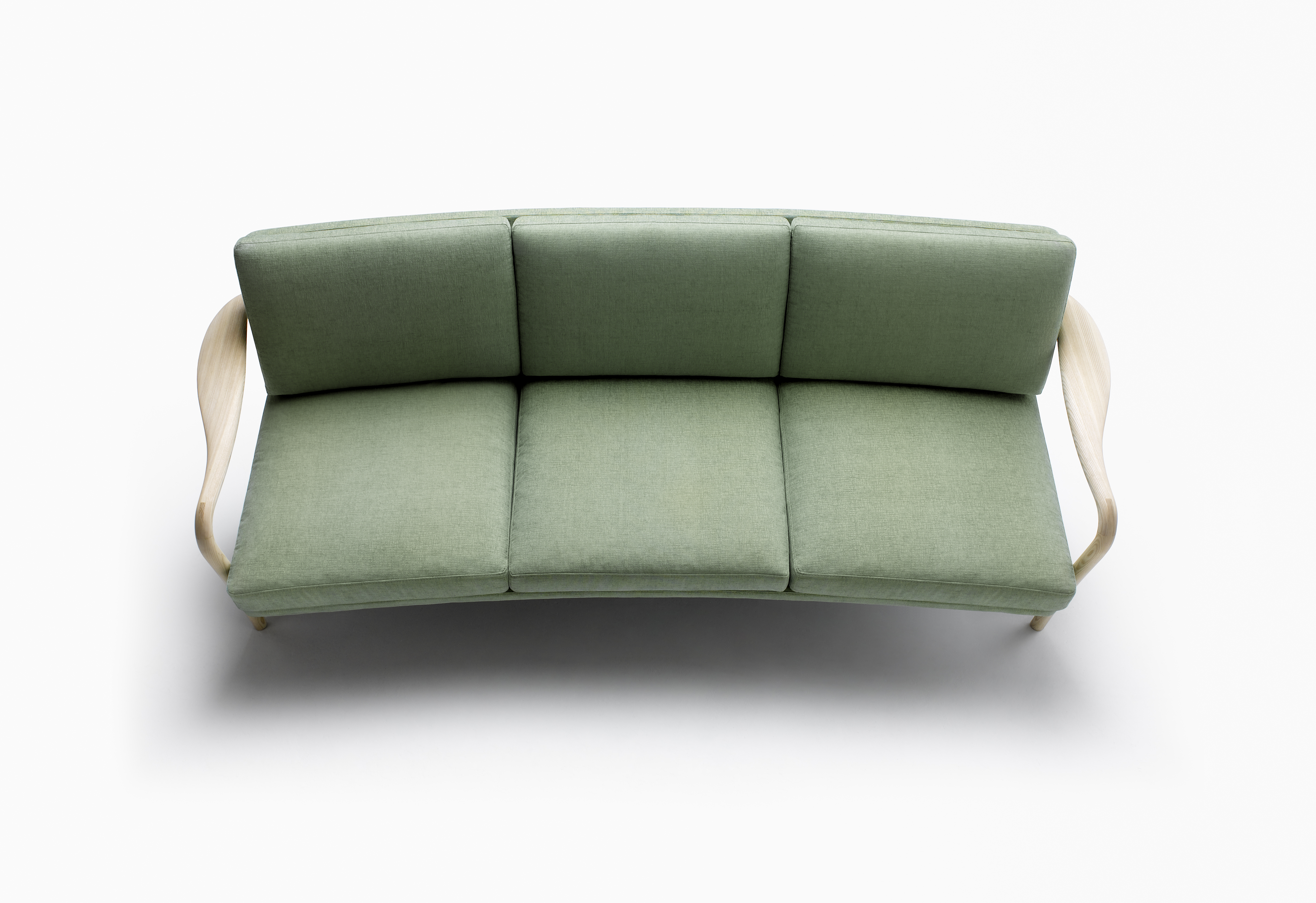 自然と身体が内側に向き合うように、座面に曲線がつけられたソファ。