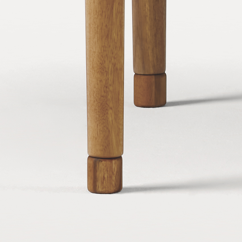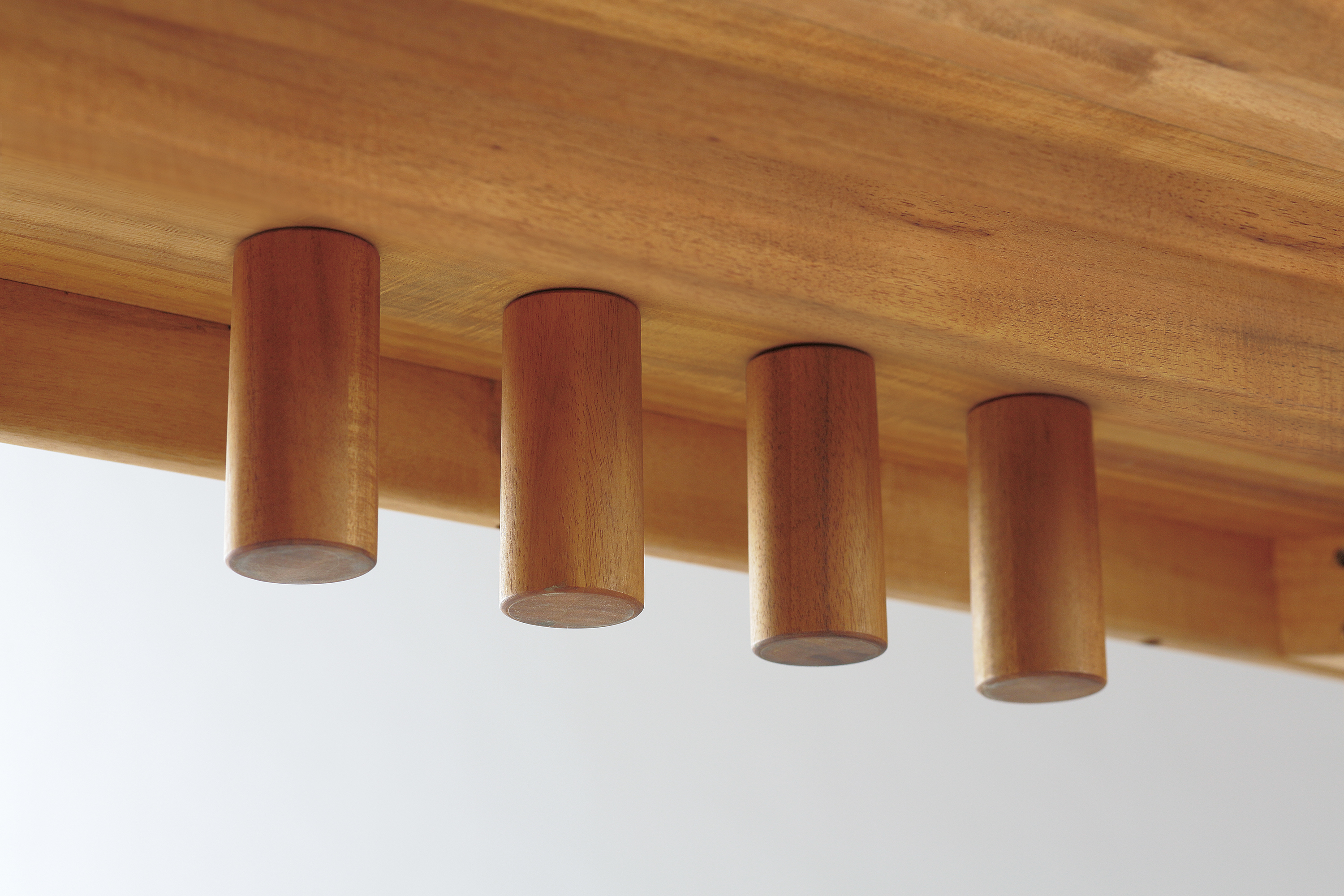 耐久性に優れた良質な天然木を使用した天板は、木口を手触りの良い丸みを帯びた形状に仕上げ、裏面には立ち上がりや持ち運ぶ際にグリップしやすい溝加工が施されています。