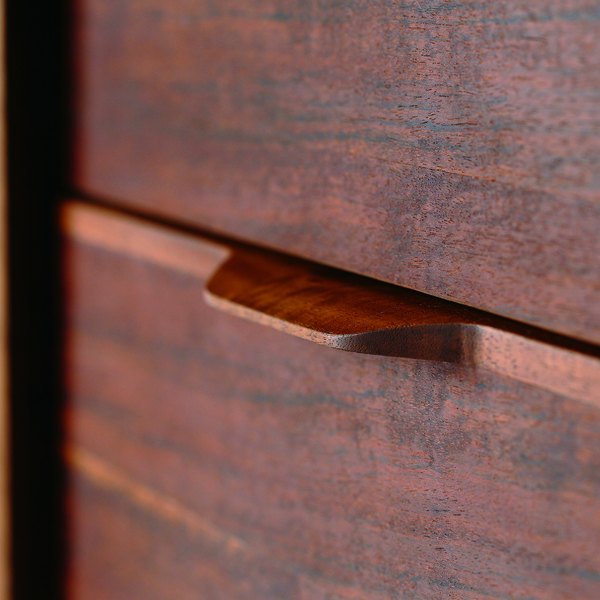 加工度の高いやわらかな曲線の取っ手はやさしく手に馴染み、天板はディスプレイしたものが落ちにくいよう工夫されています。