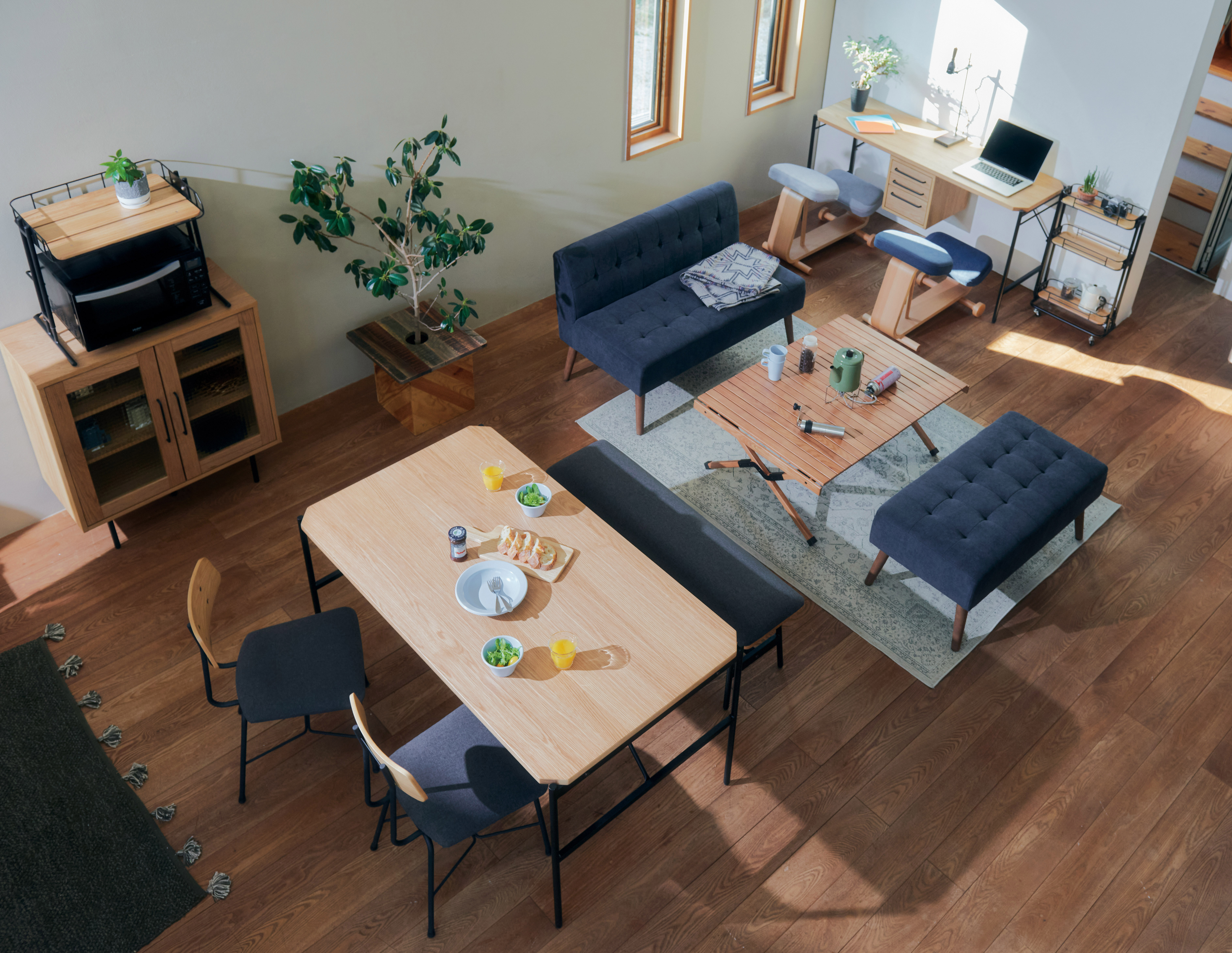 ・幅が135cm、脚フレームが最端にあるため、ゆとりのあるスペースを確保できます。