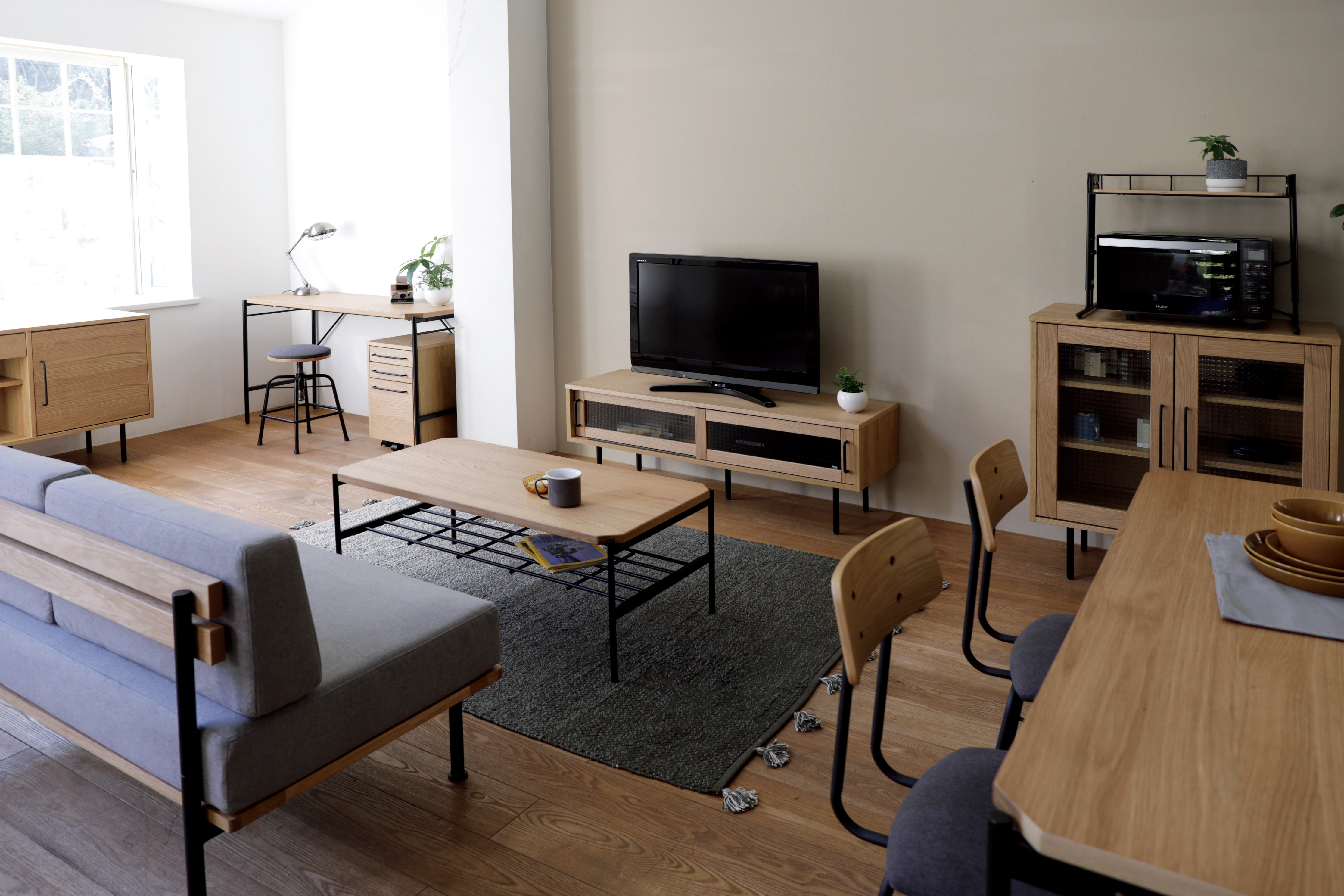 背板に使用したオーク無垢材が映えるソファです。LDテーブルとの併用でリビングダイニングソファとしてもご使用いただけます。