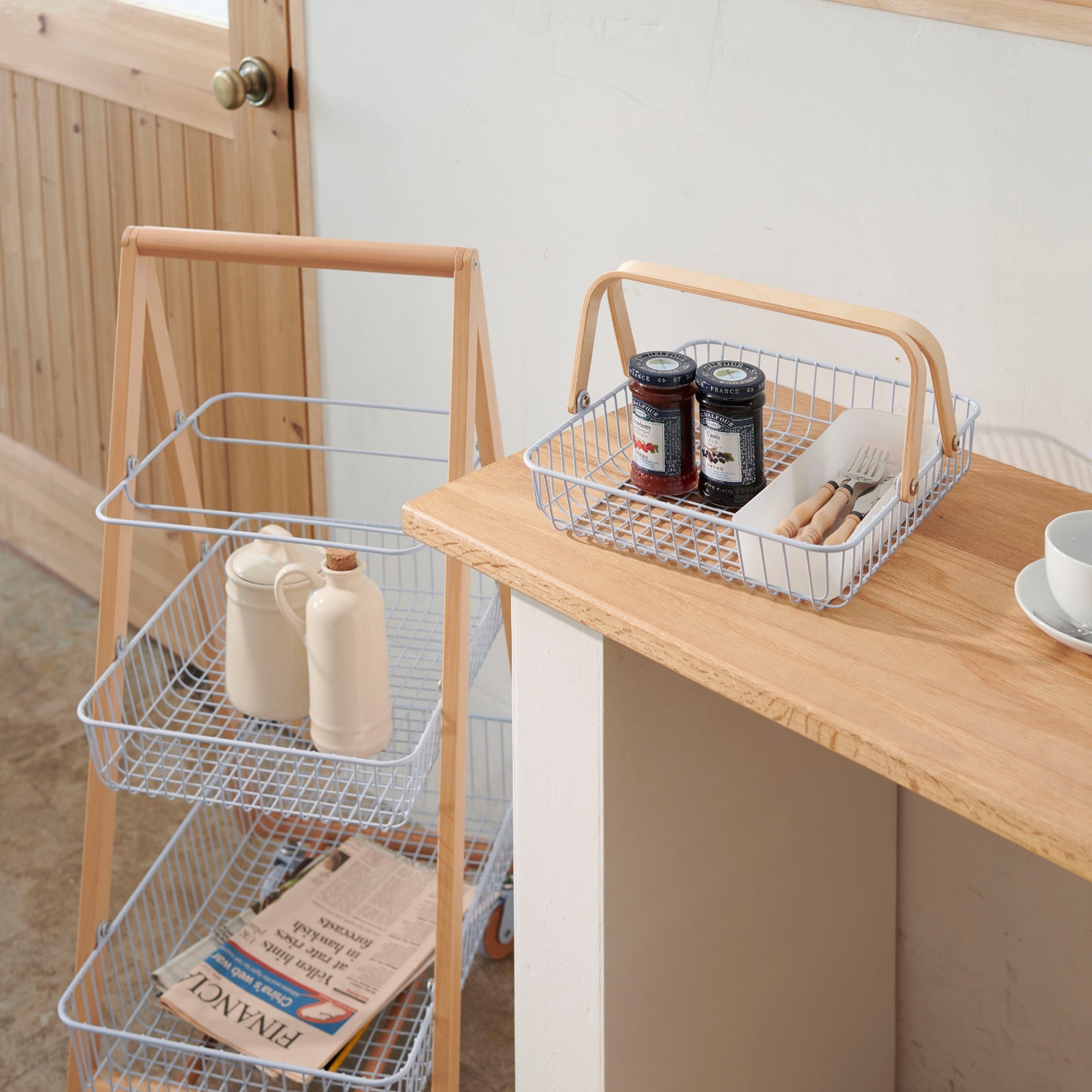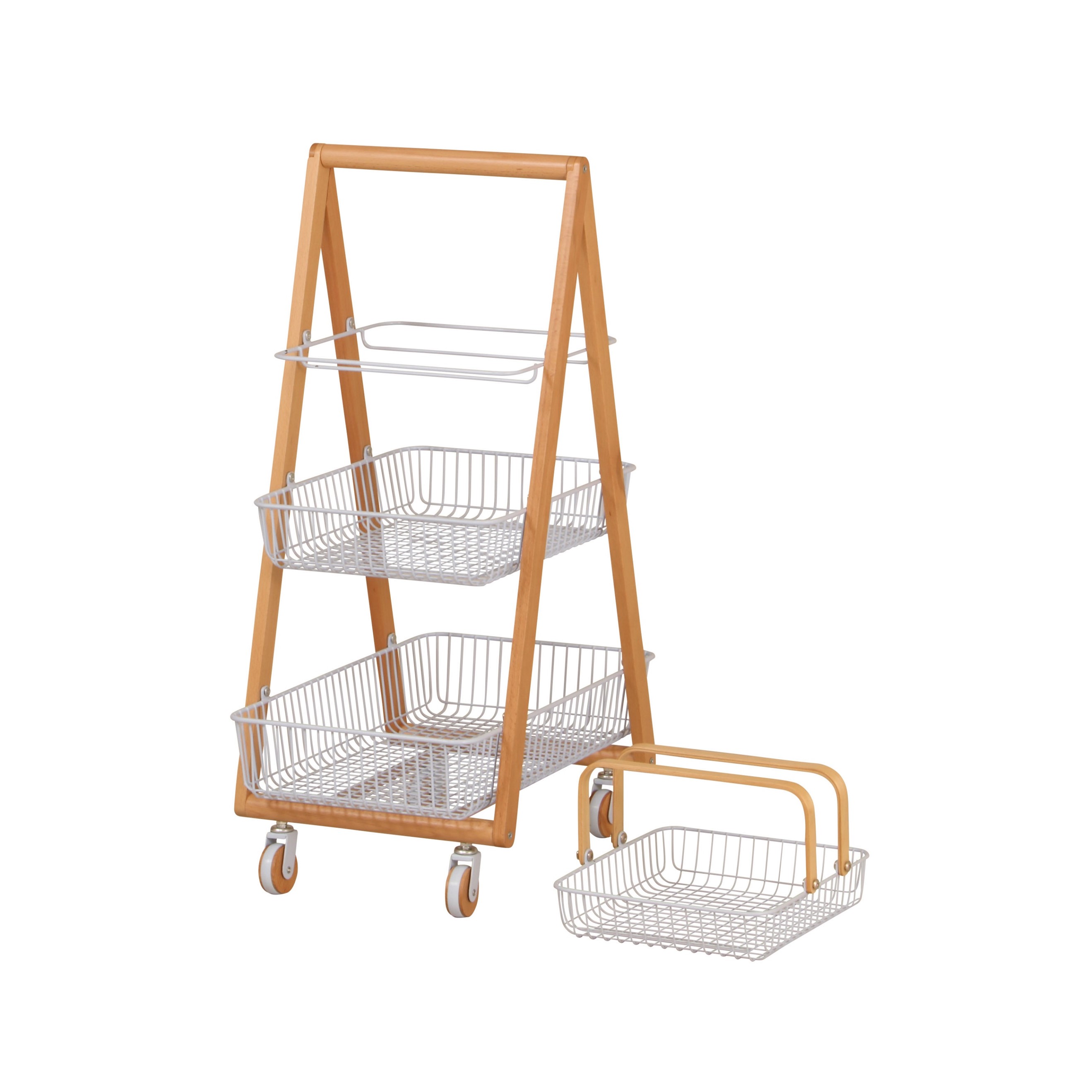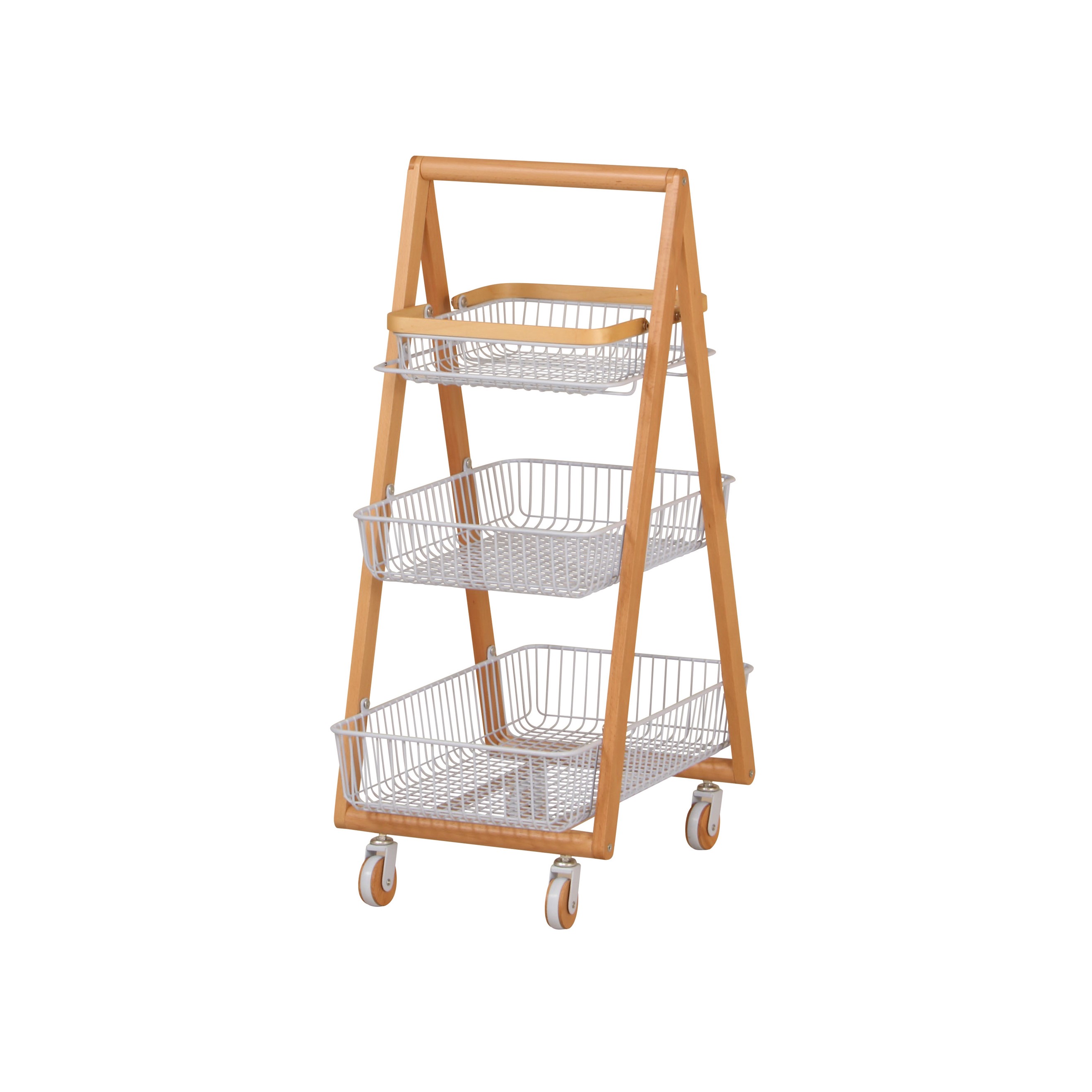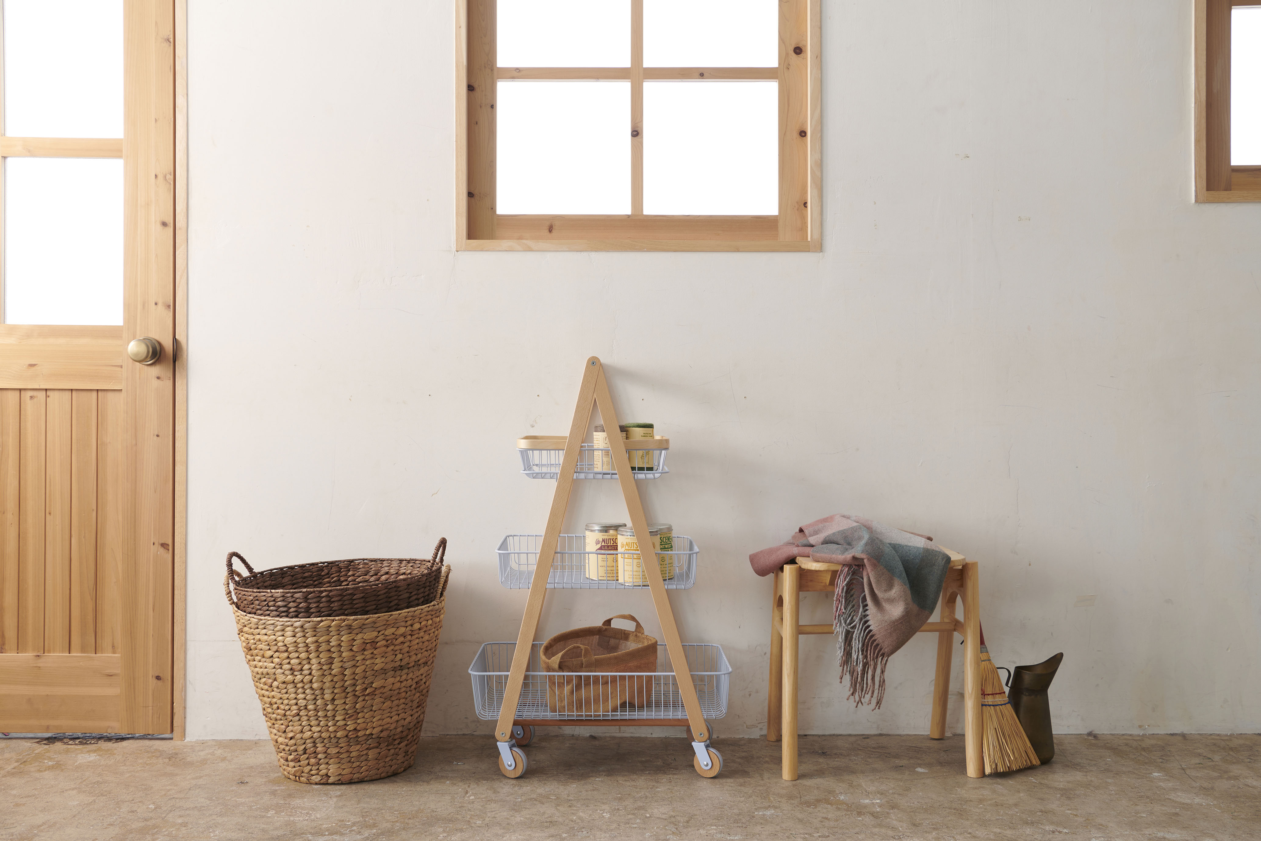 大きさの異なる3段のバスケット棚が使いやすいワゴンです。