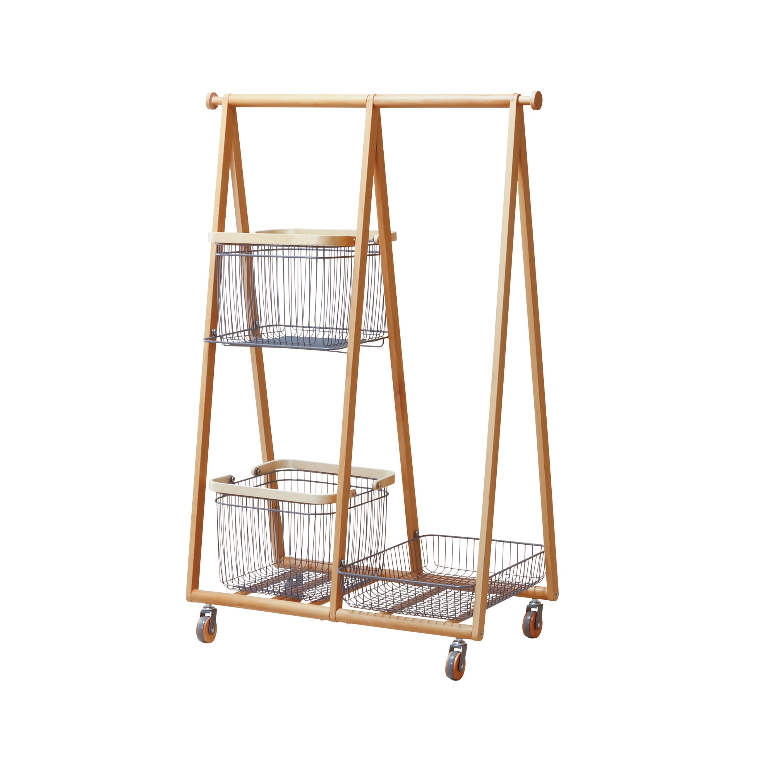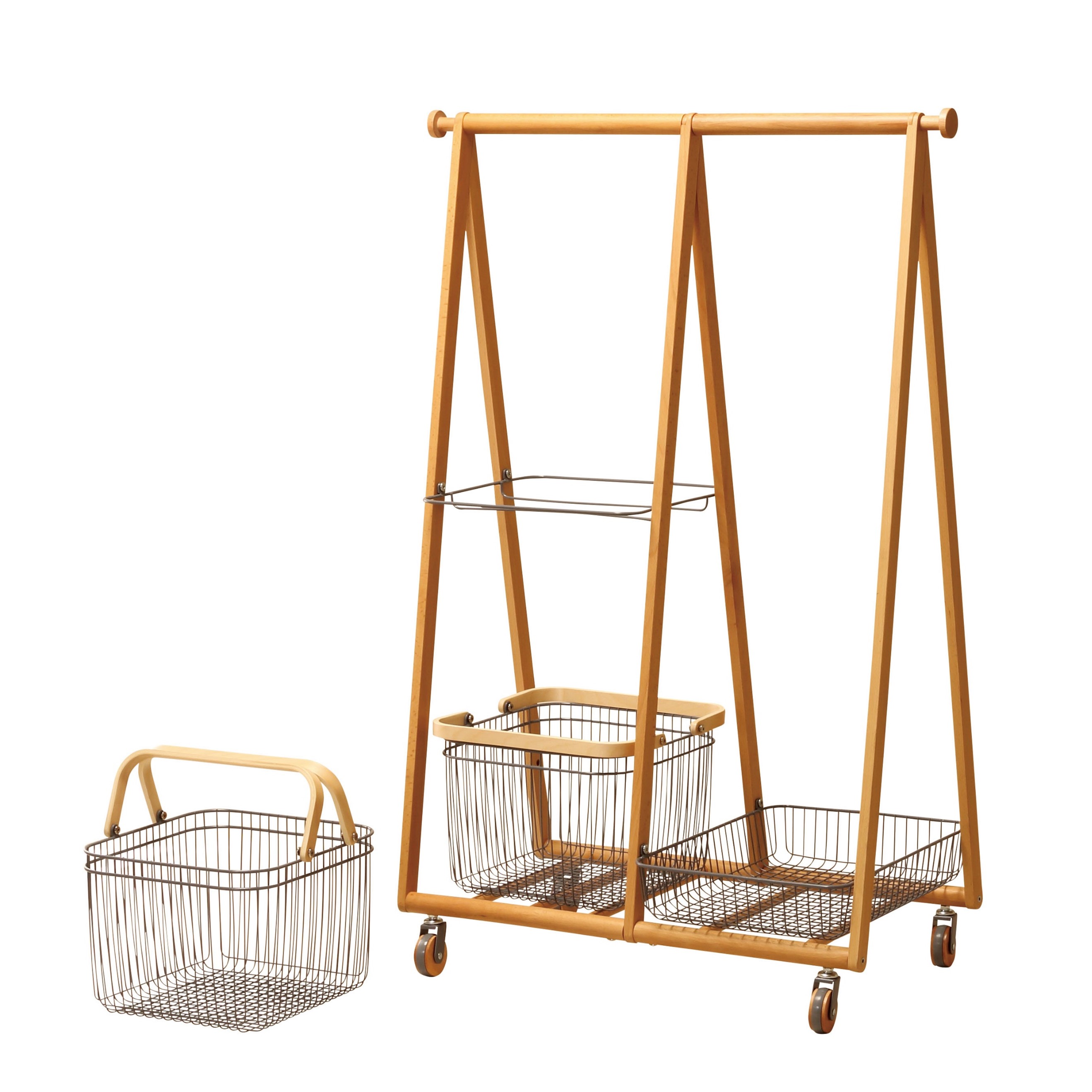 コンパクトなサイズのバスケット付きハンガーラックです。