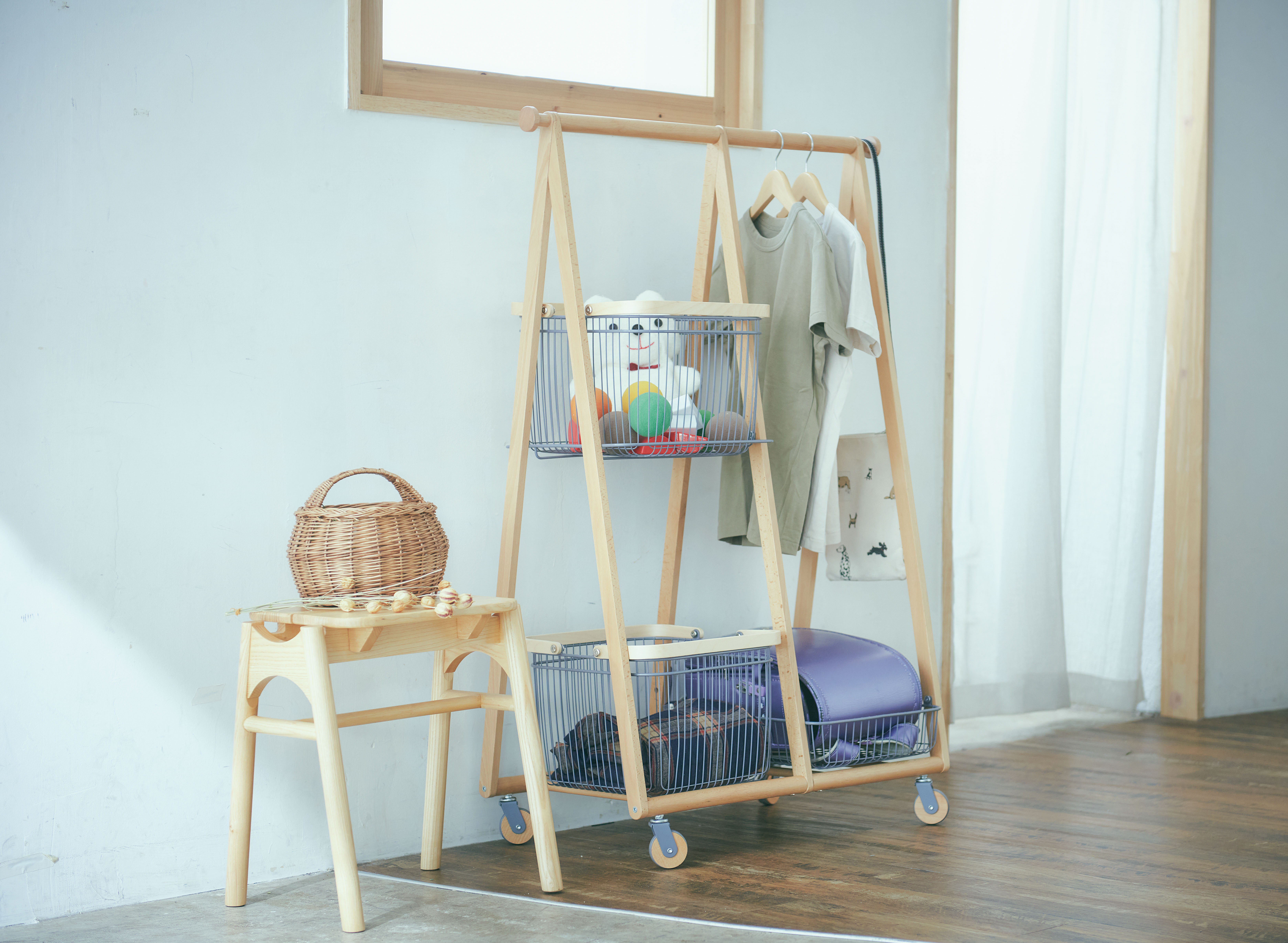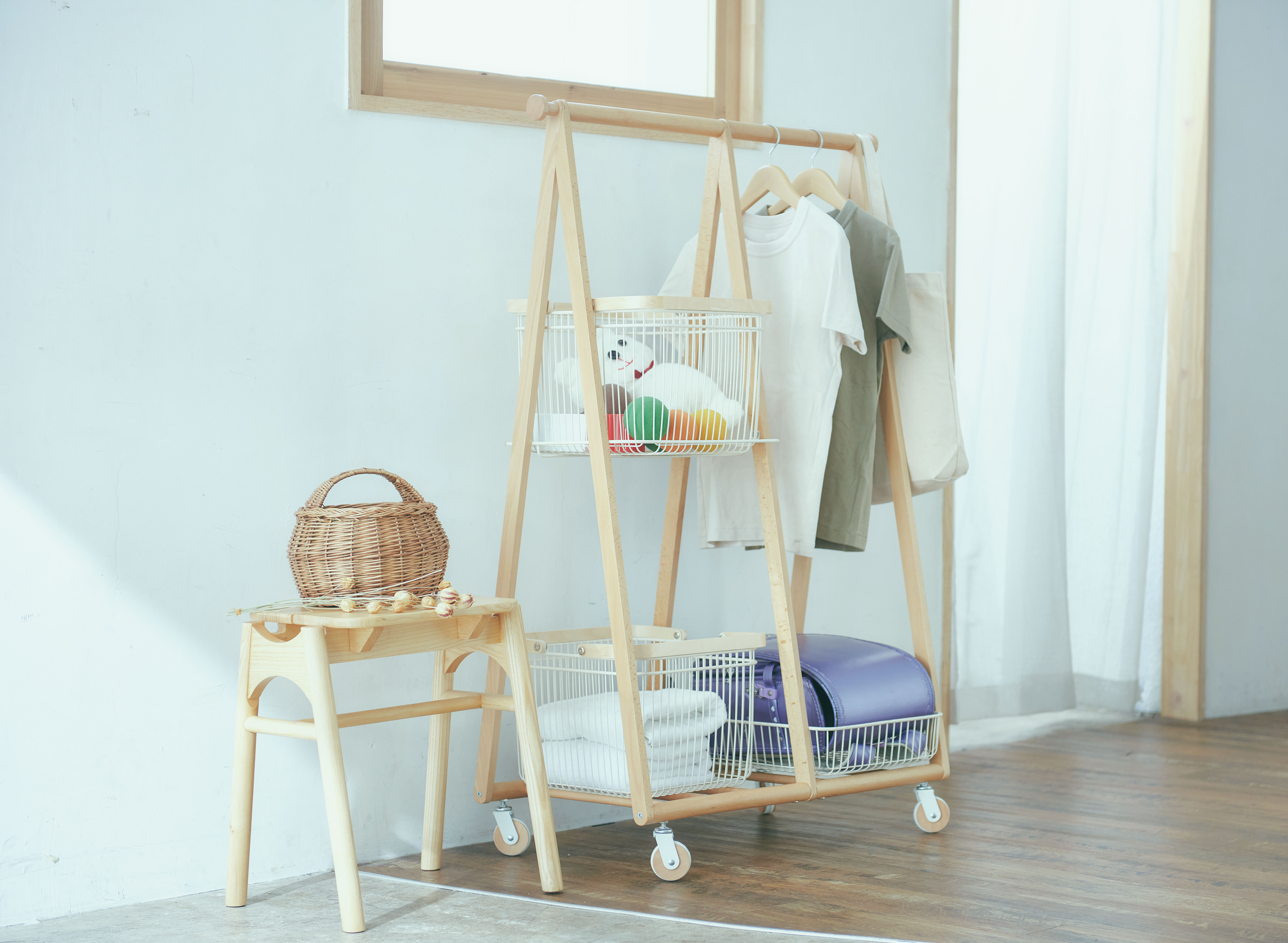 ・学校用品を整理整頓しやすく、ハンガー下のバスケットはランドセル収納にぴったりです。