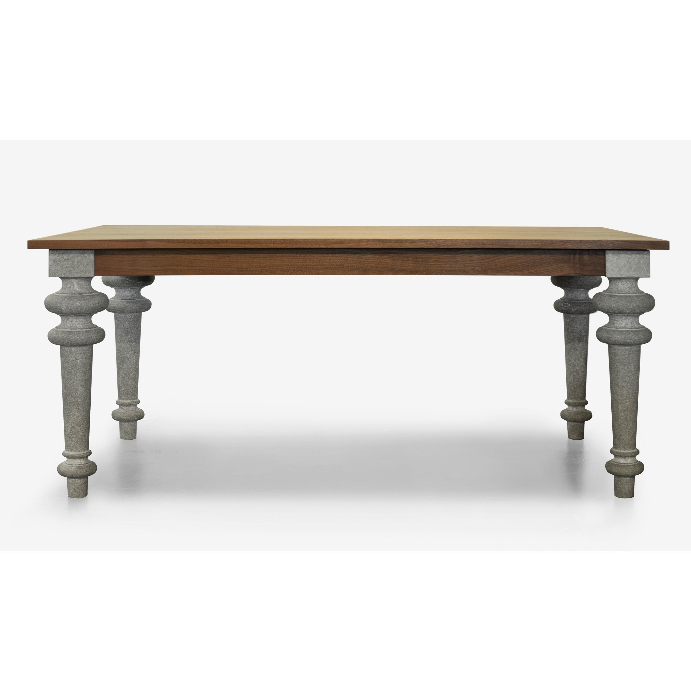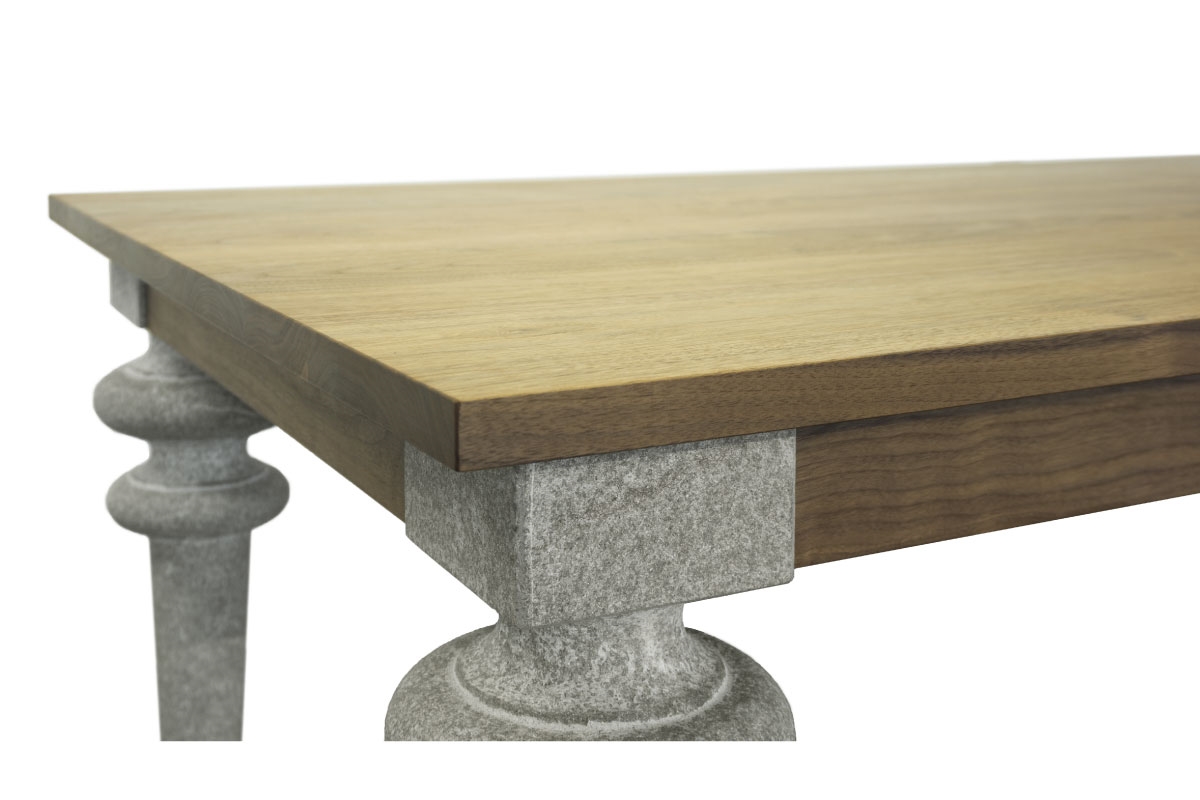 天板はウォールナットの無垢材、 脚はピアセンティーナ石という異材質の質感を楽しんで頂けます。