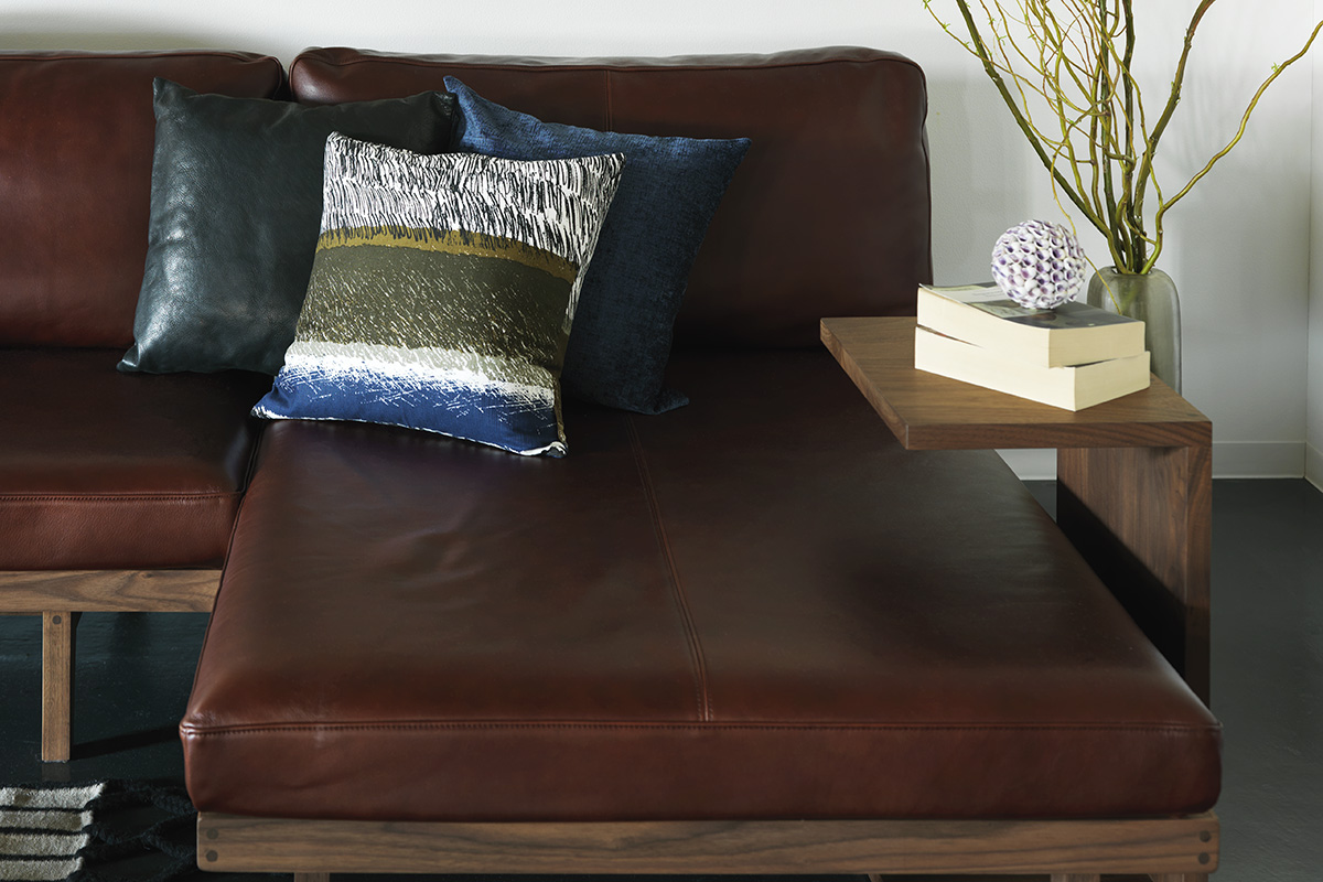 脚付きソファの下に引き込んでも使用でき、底面の四隅に付いた水平アジャスターにより設置場所にしっかり安定。
