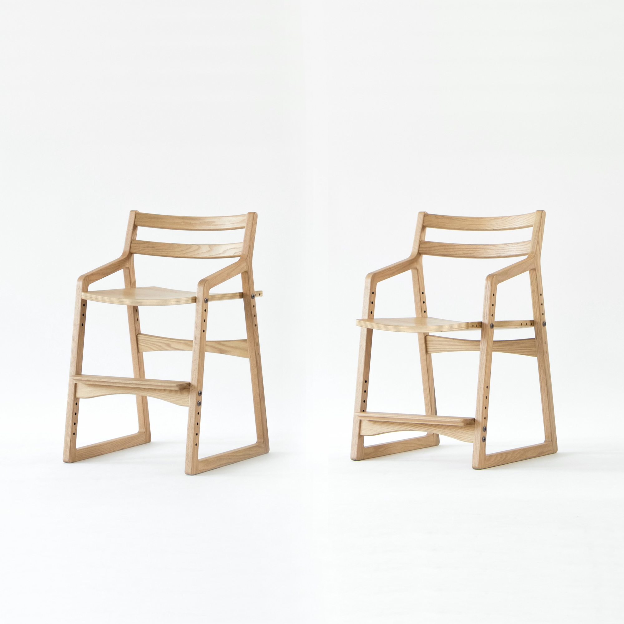 座面4段階(SH42 / 44.5 / 47.5 / 50.5cm)、足置き5段階(FH14.5 / 17.5 / 20.5 / 23.5 / 26.5cm)の高さ調整機能を持つ椅子です。
