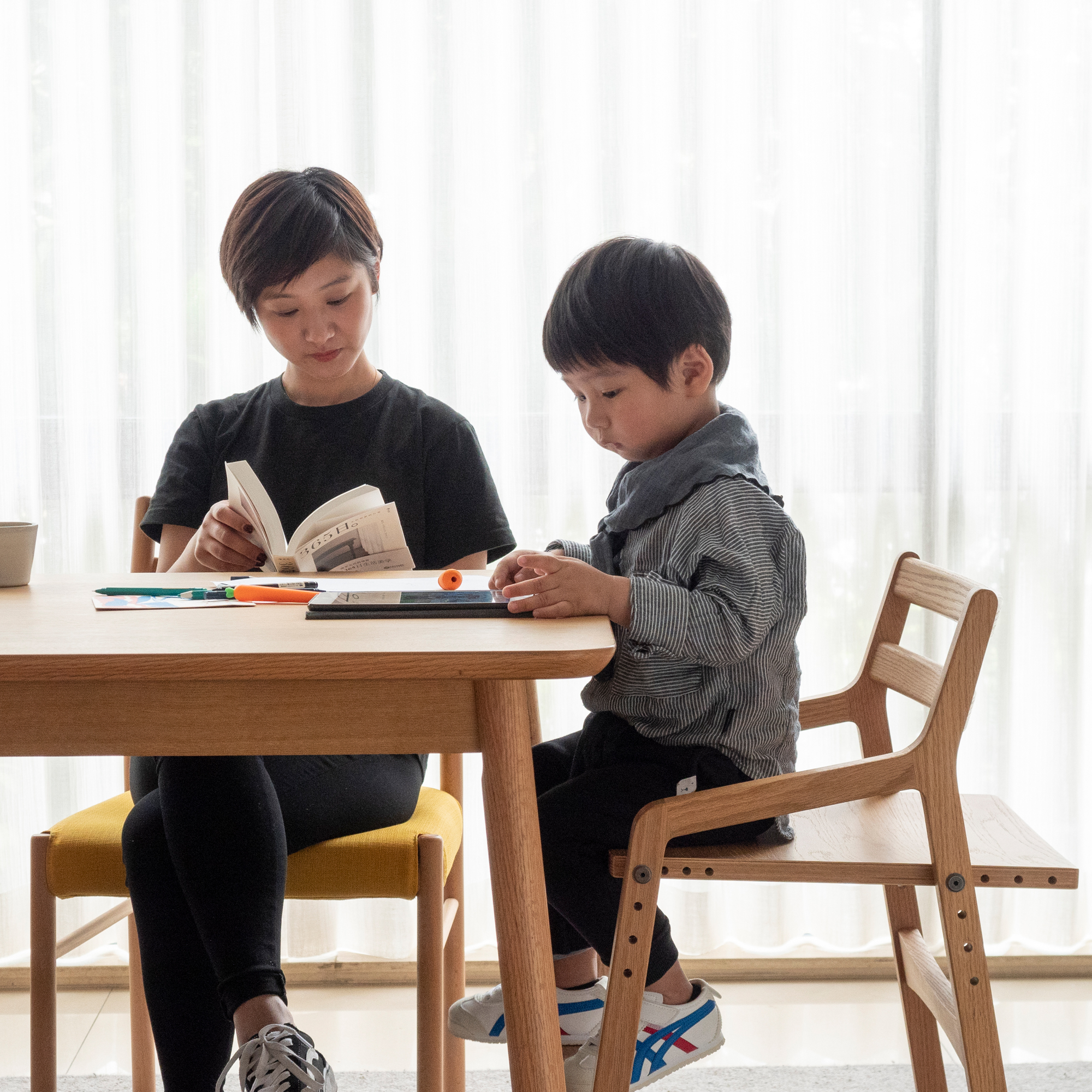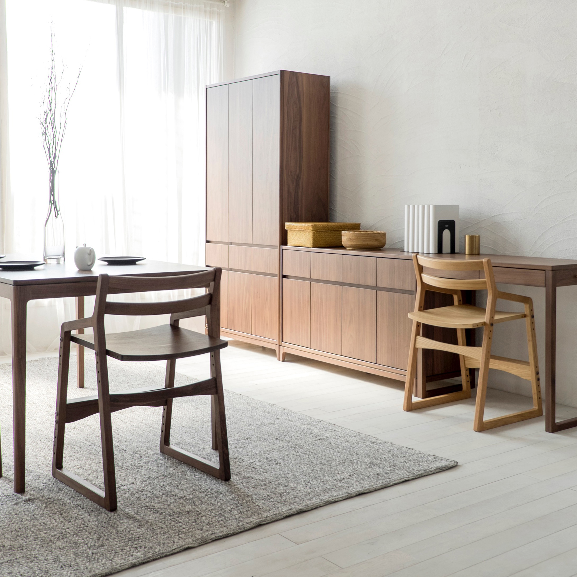 リビング・ダイニングと学習デスクの両方に合う意匠を意識して開発されました。