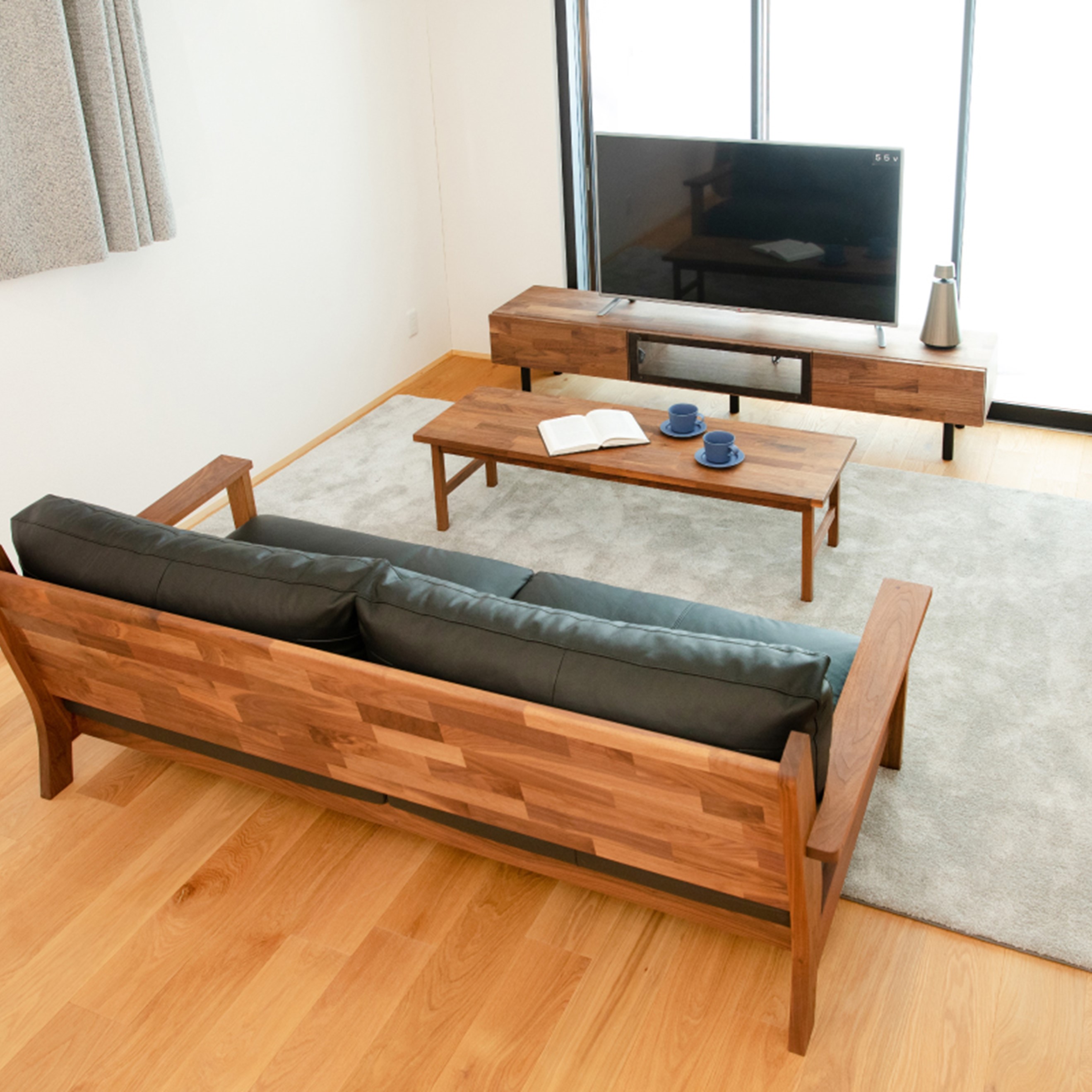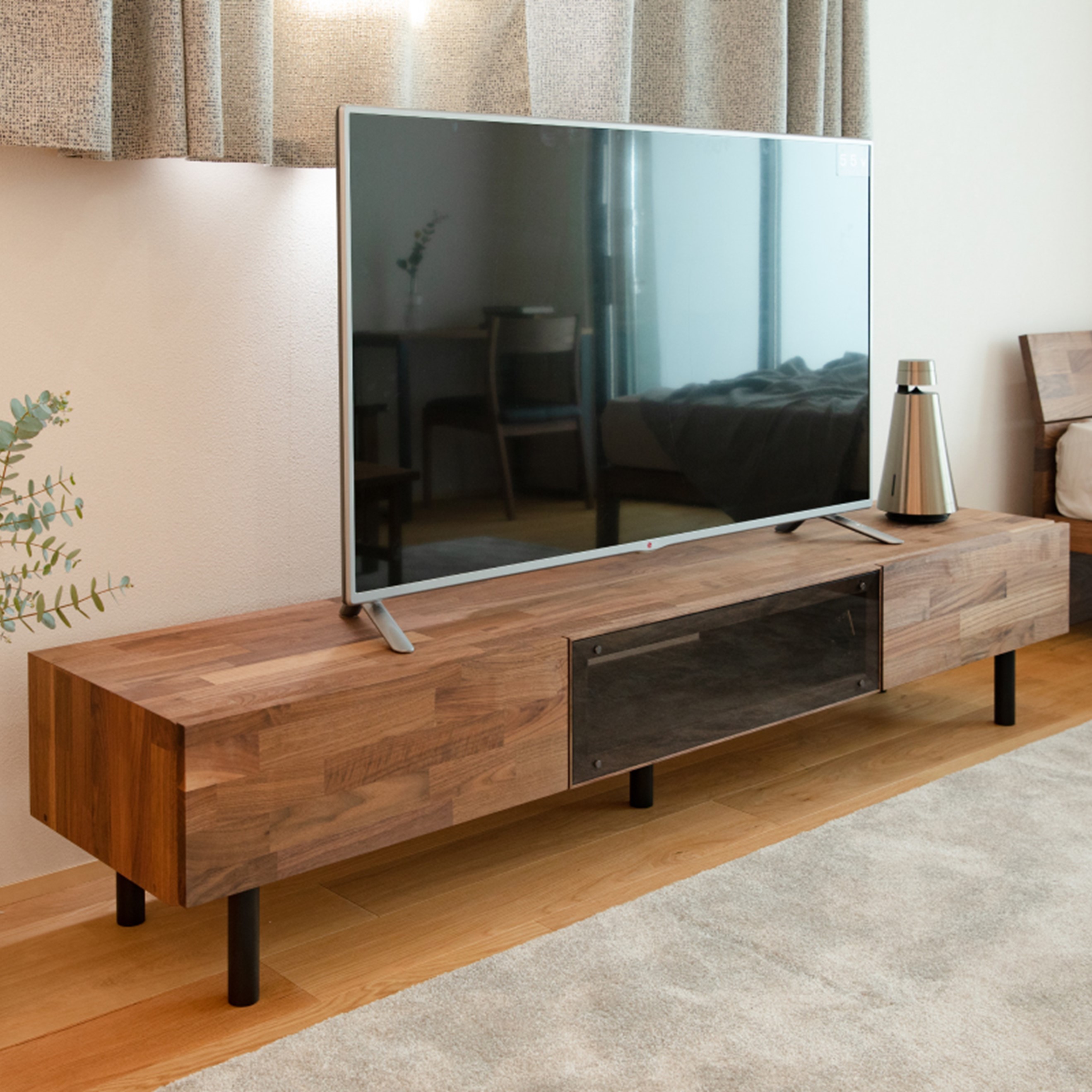 ランダムなウォールナットの表情が楽しめるAVボード。
