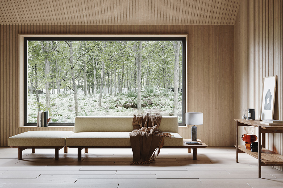 床下から棚板の下の高さが、PS3ソファのベースと同じ高さになるよう設計されており、合わせて使うことでお部屋に統一感をもたせることができます。