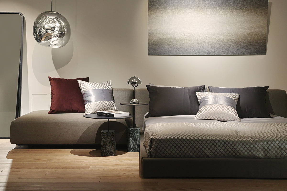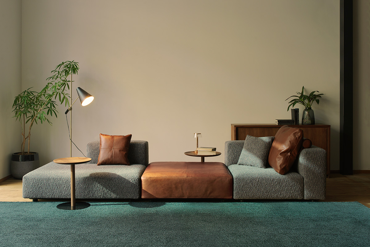 豊富なバリエーションのソファパーツをもち、空間に応じて自由な組み合わせができるシステムソファ。