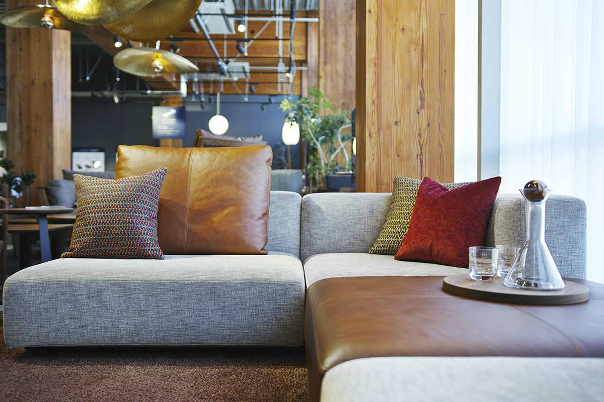 豊富なバリエーションのソファパーツをもち、空間に応じて自由な組み合わせができるシステムソファ。