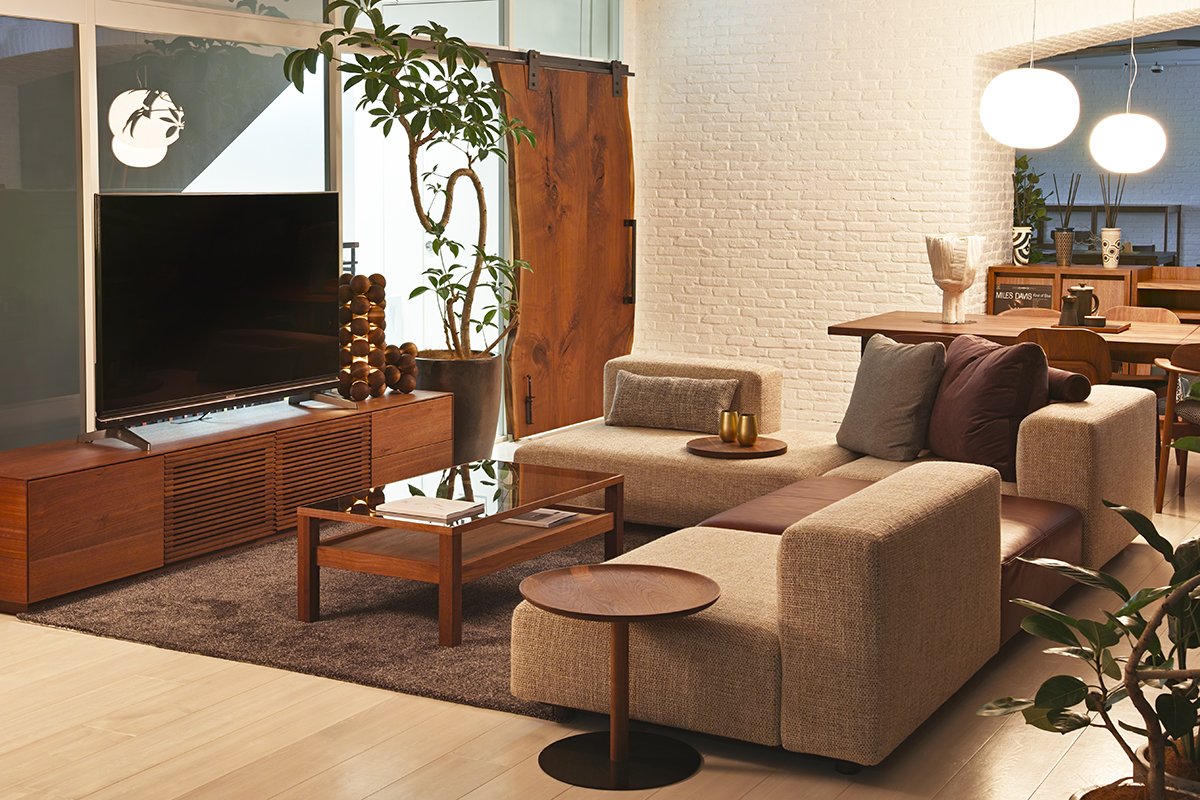 豊富なバリエーションのソファパーツをもち、空間に応じて自由な組み合わせができるシステムソファ。