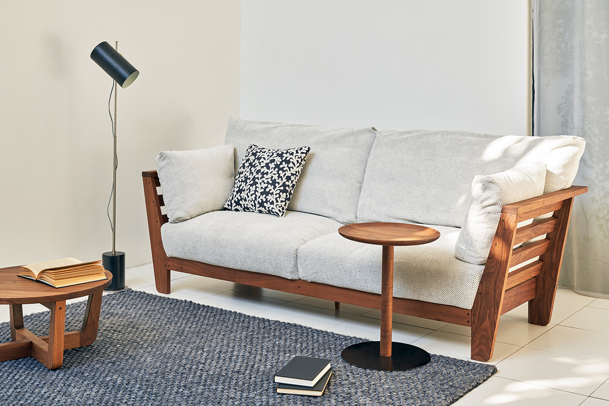 フェザーをたっぷりと使用したボリューム溢れるクッションを、無垢フレームがしっかりと支える、HEAVEN SOFAの構造や座り心地はそのままにつくられています。