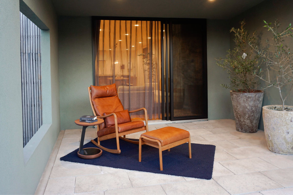 Blueprint ラウンジ、ロッキングチェアに適した素材を吟味し生まれたラグです。