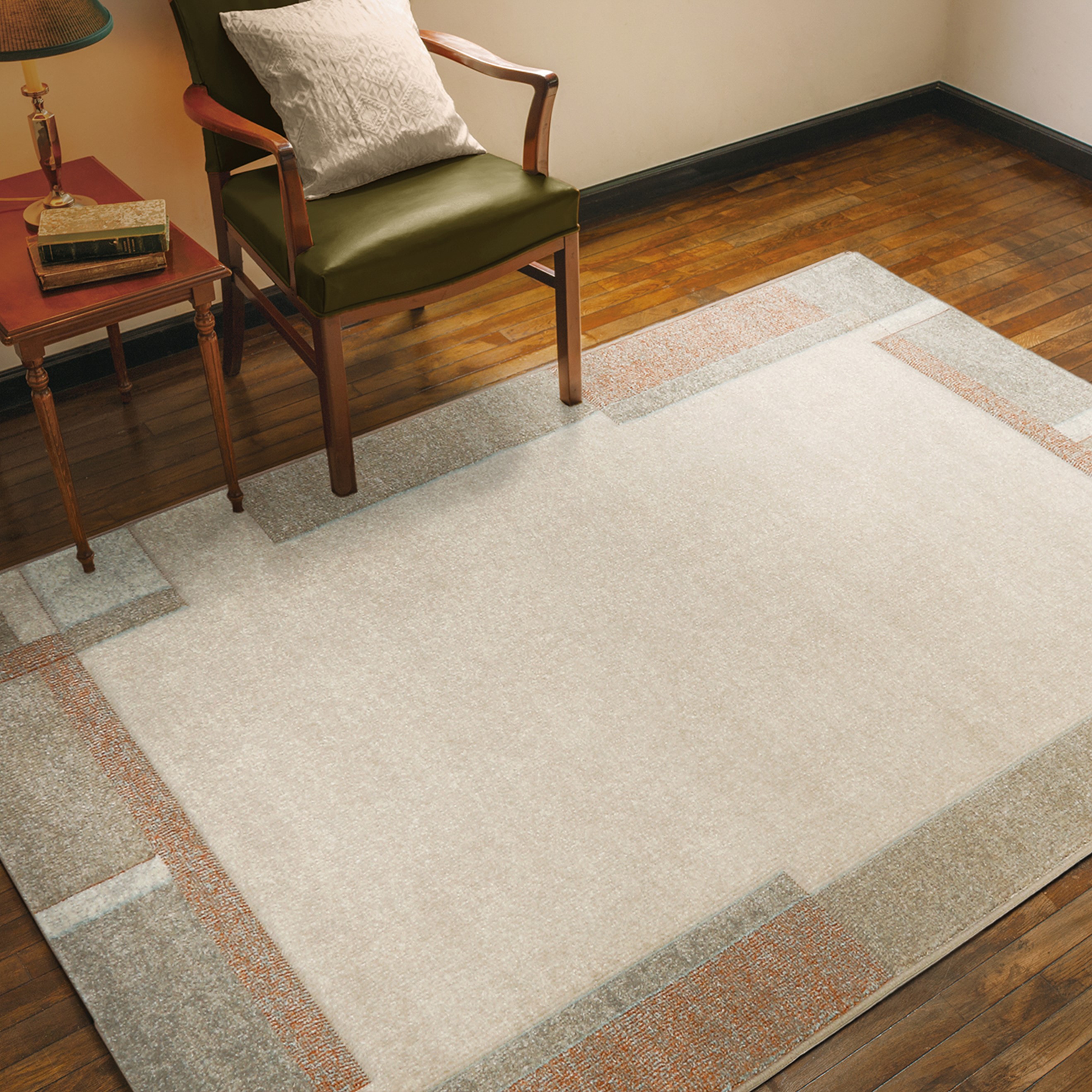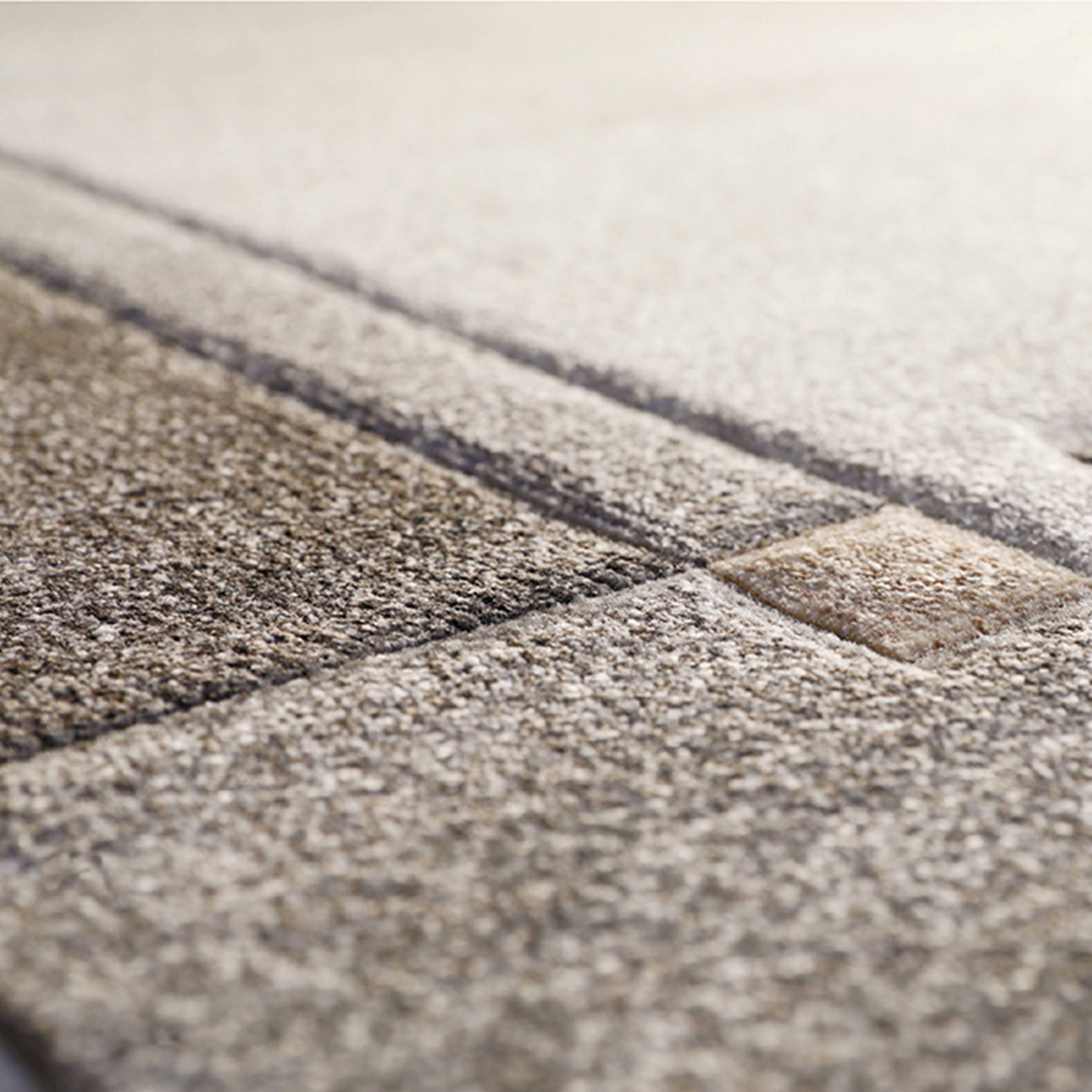 シンプルな幾何学デザインをニュアンスのあるグレイッシュトーンで織りあげました。