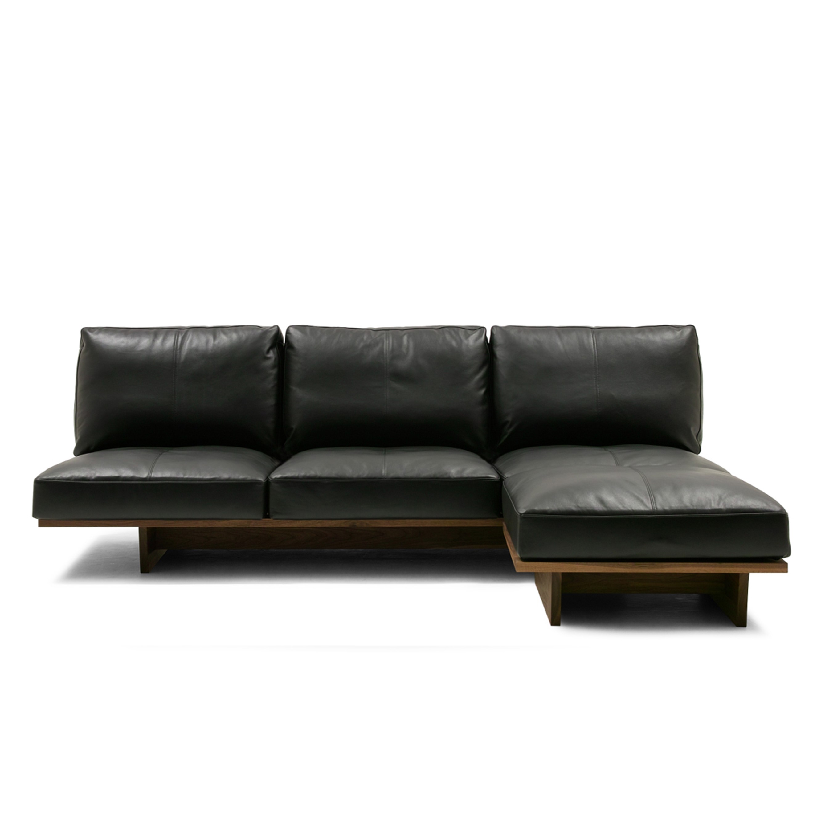 クッションを支える背板には幅広の無垢材を贅沢に使い、後ろ姿も美しく仕上げました。シンプルで無骨な雰囲気のなかで、ラグジュアリーな座り心地が味わえます。