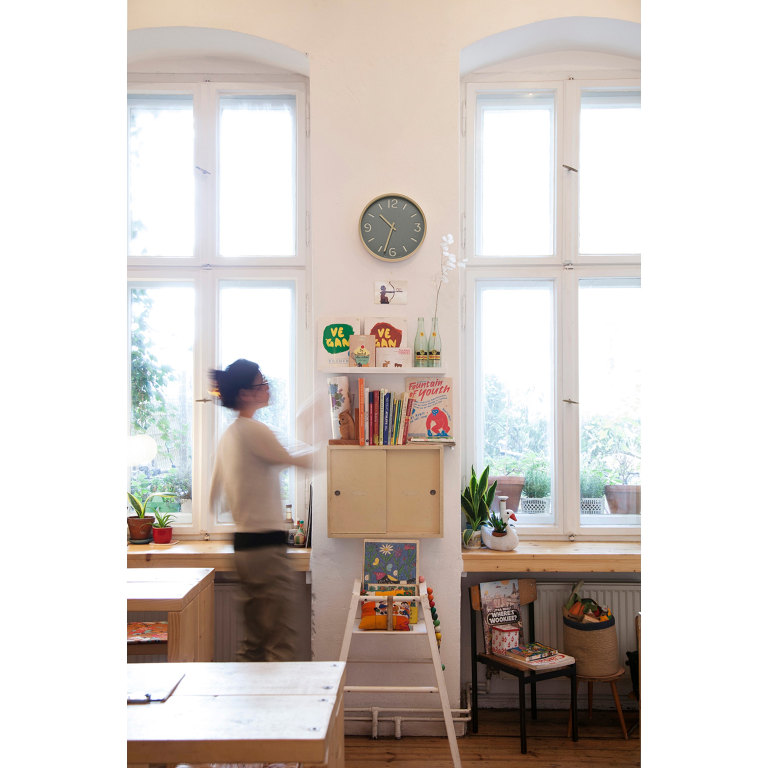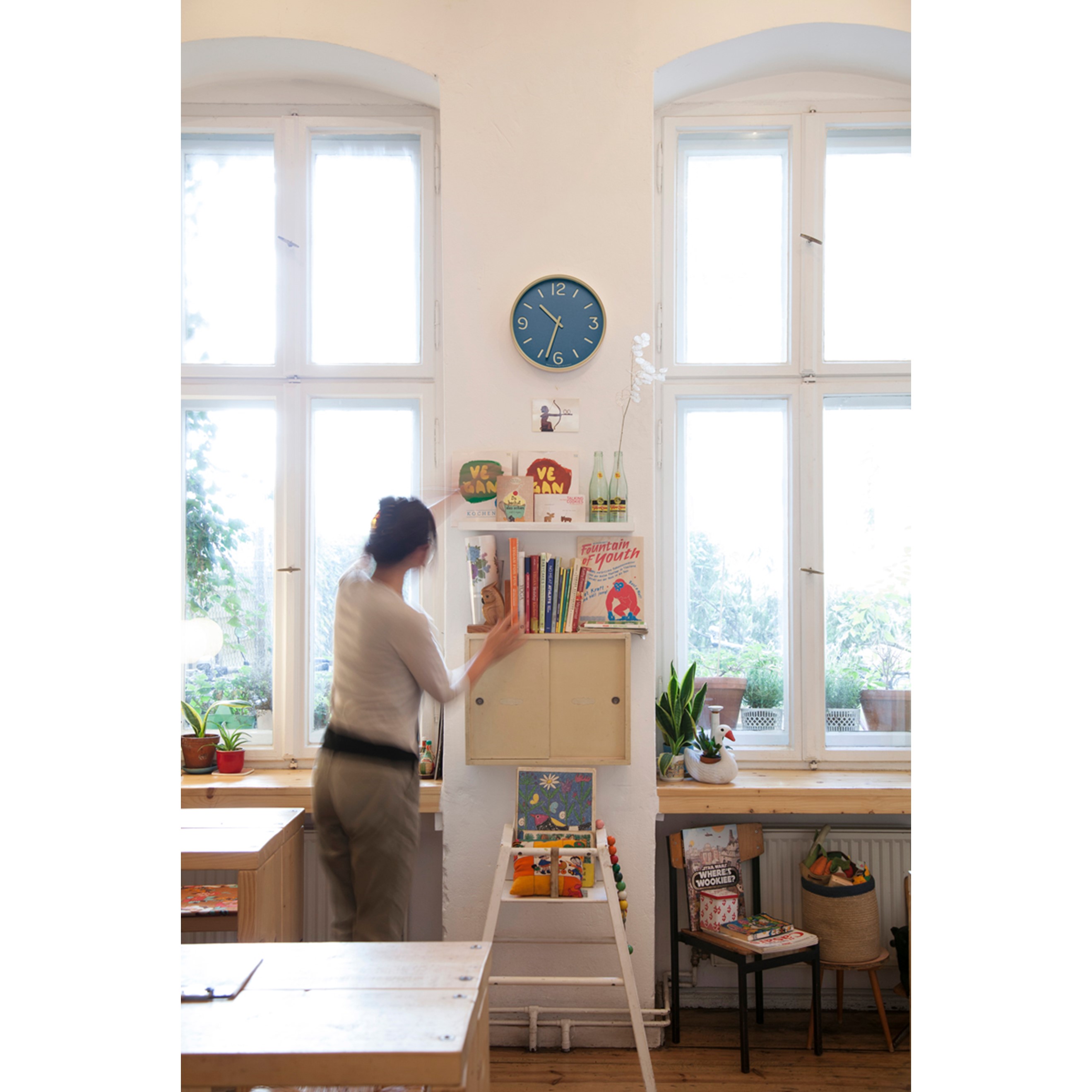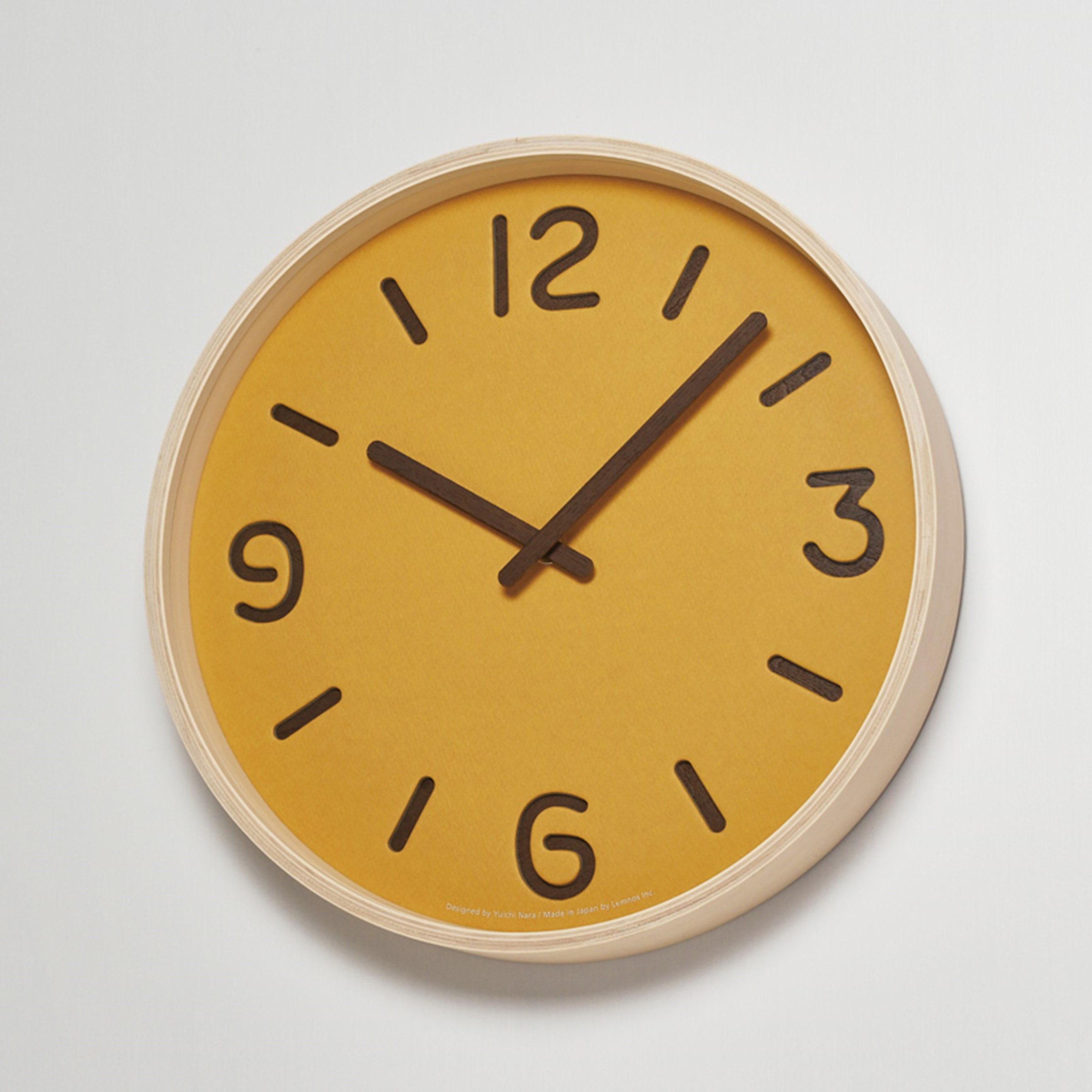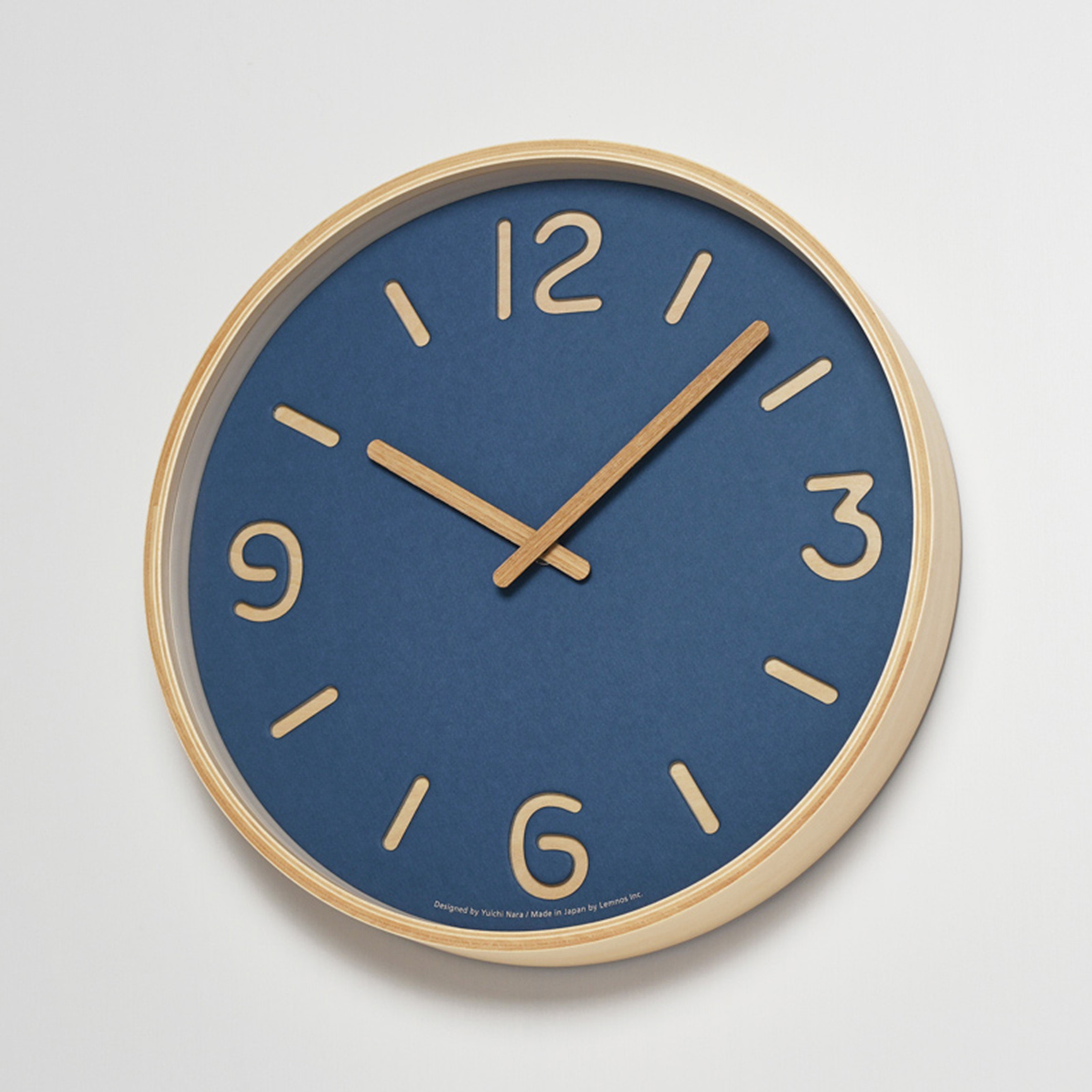 マーメイド・リップル(人魚の住む海のさざ波)と呼ばれる穏やかな波のような風合いを持つ紙で、時計の枠に使用しているプライウッド、針に使用しているタモ材との質感の違いがコントラストを生んでいます。