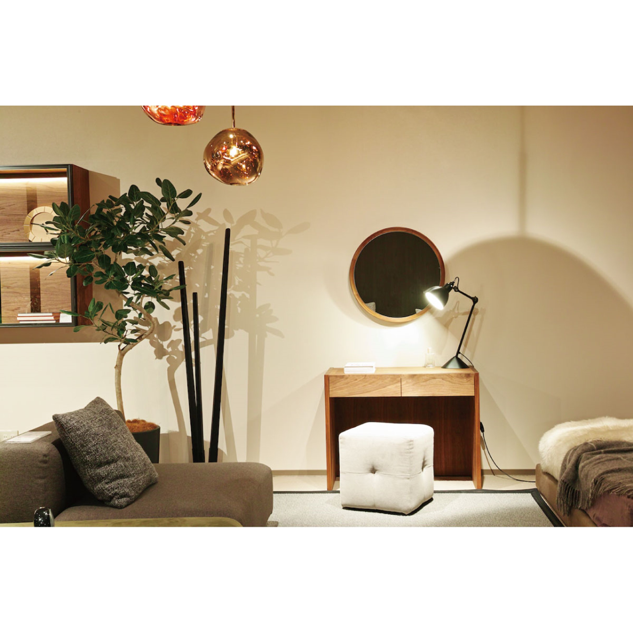 曲面の美しさが空間にアクセントを与える円形ミラー