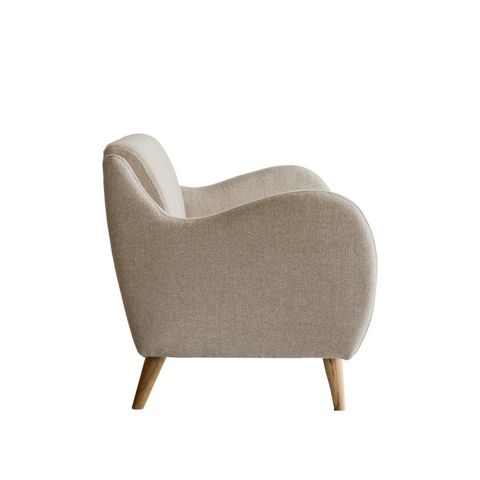 パッと目を引く可愛らしさ、クラシックソファを彷彿とさせる豊かな曲線を描く肘。
