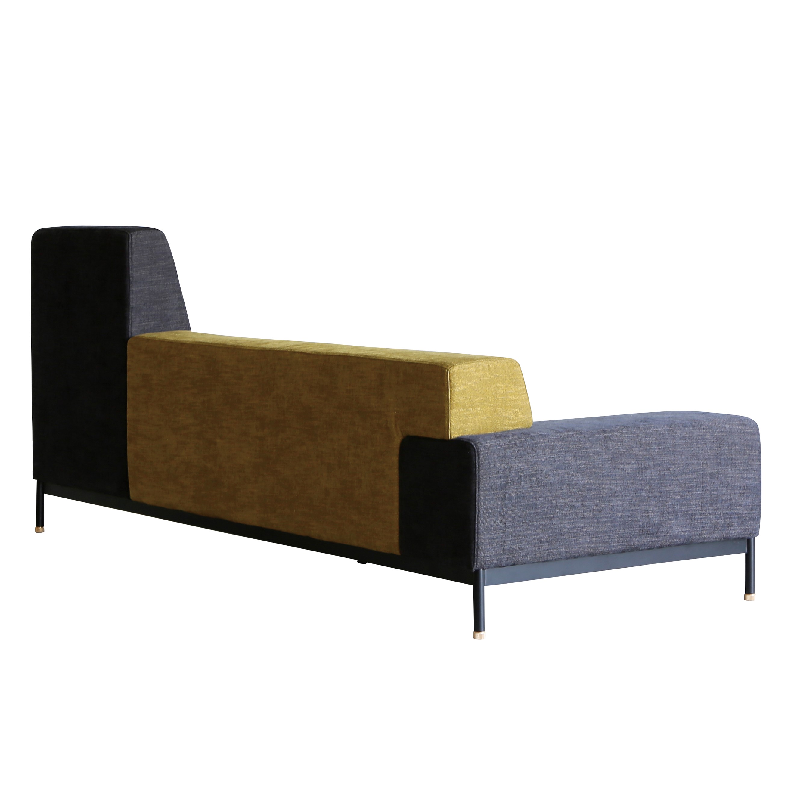 アシンメトリー形状とカラフルなファブリック使いがユニークなロータイプソファ