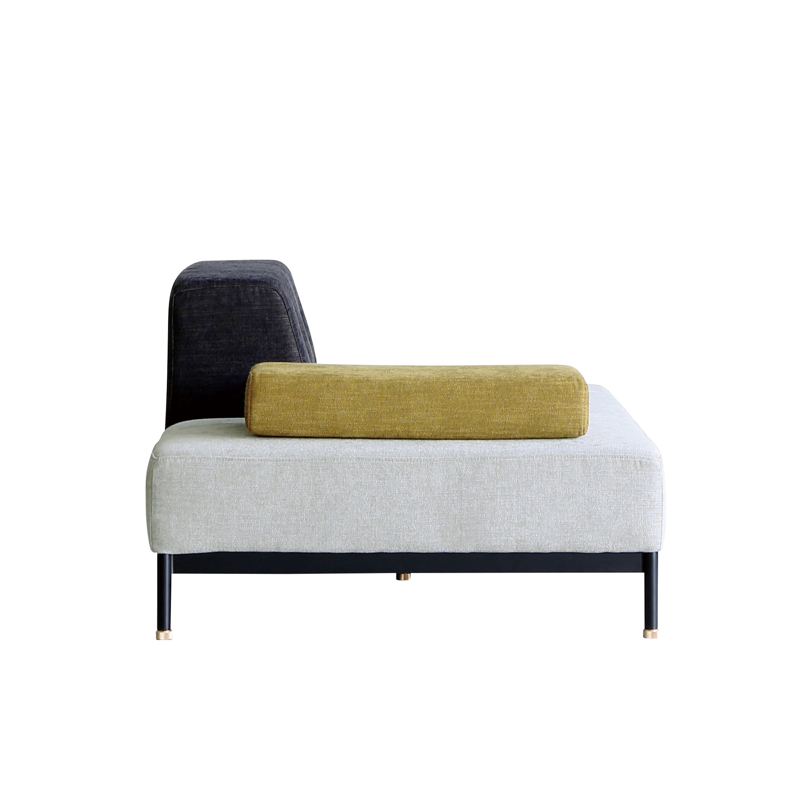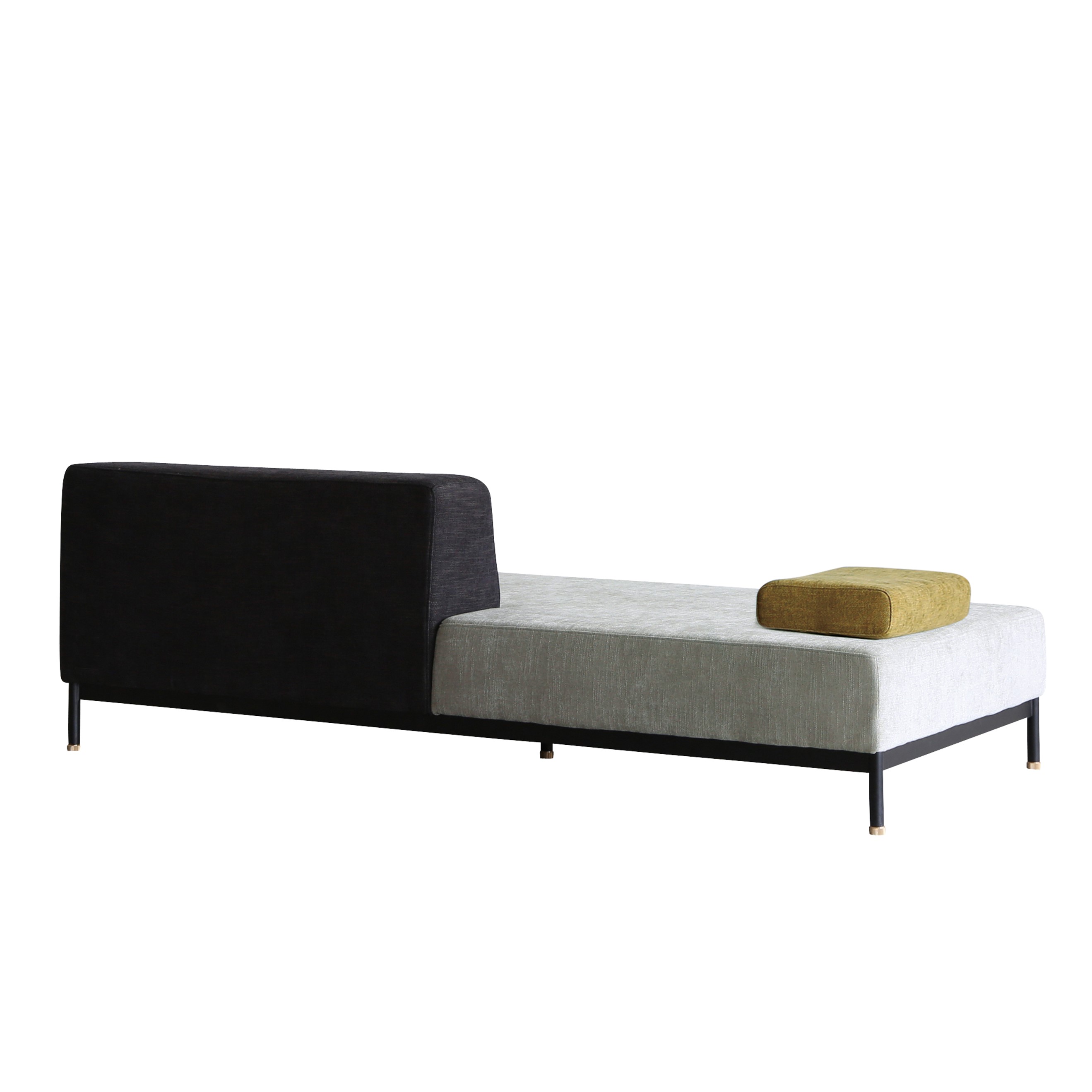アシンメトリー形状とカラフルなファブリック使いがユニークなロータイプソファ