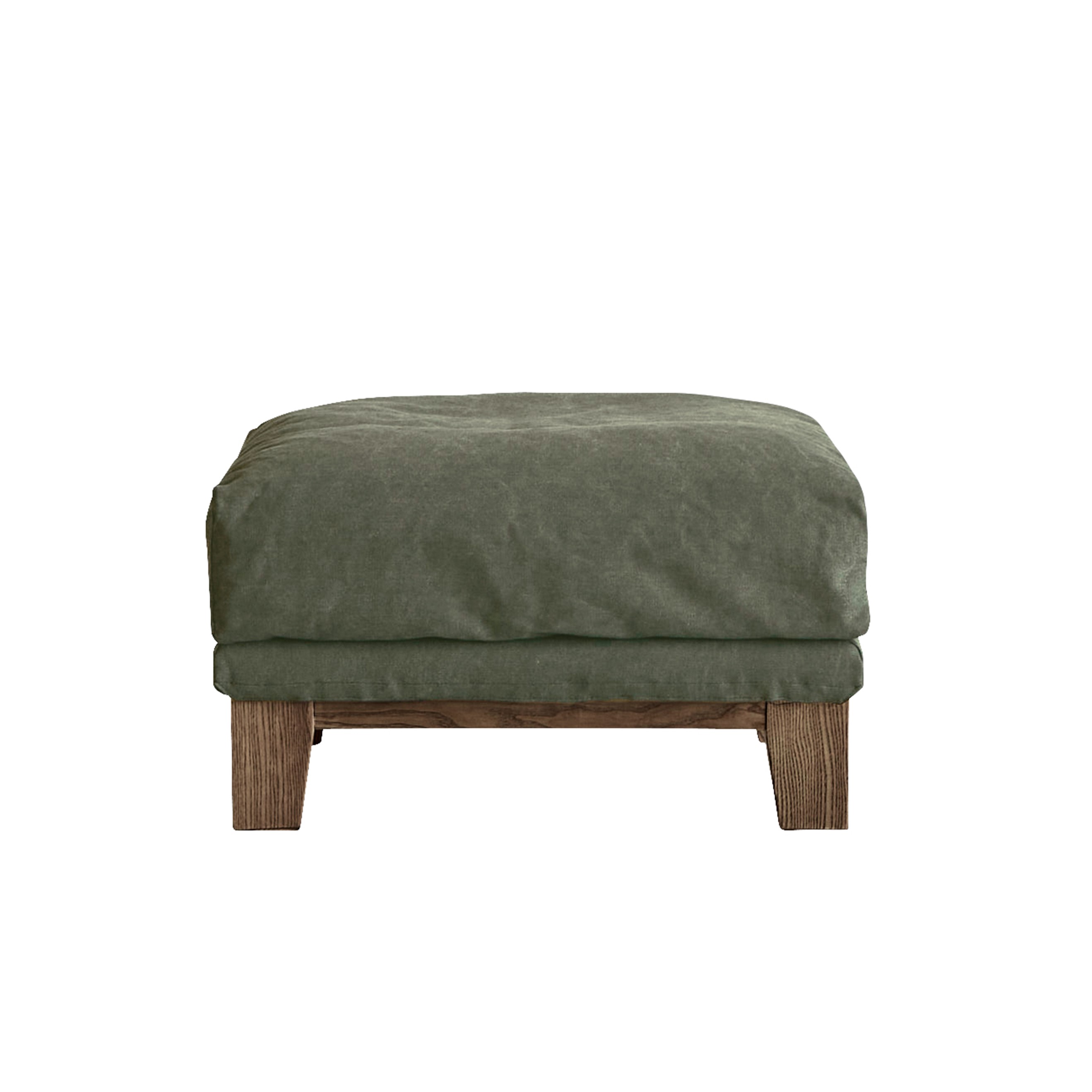 ヴィンテージソファのルーズな張り感をイメージしたキャンバス座面に、どっしりと重厚感のある木脚を合わせました。