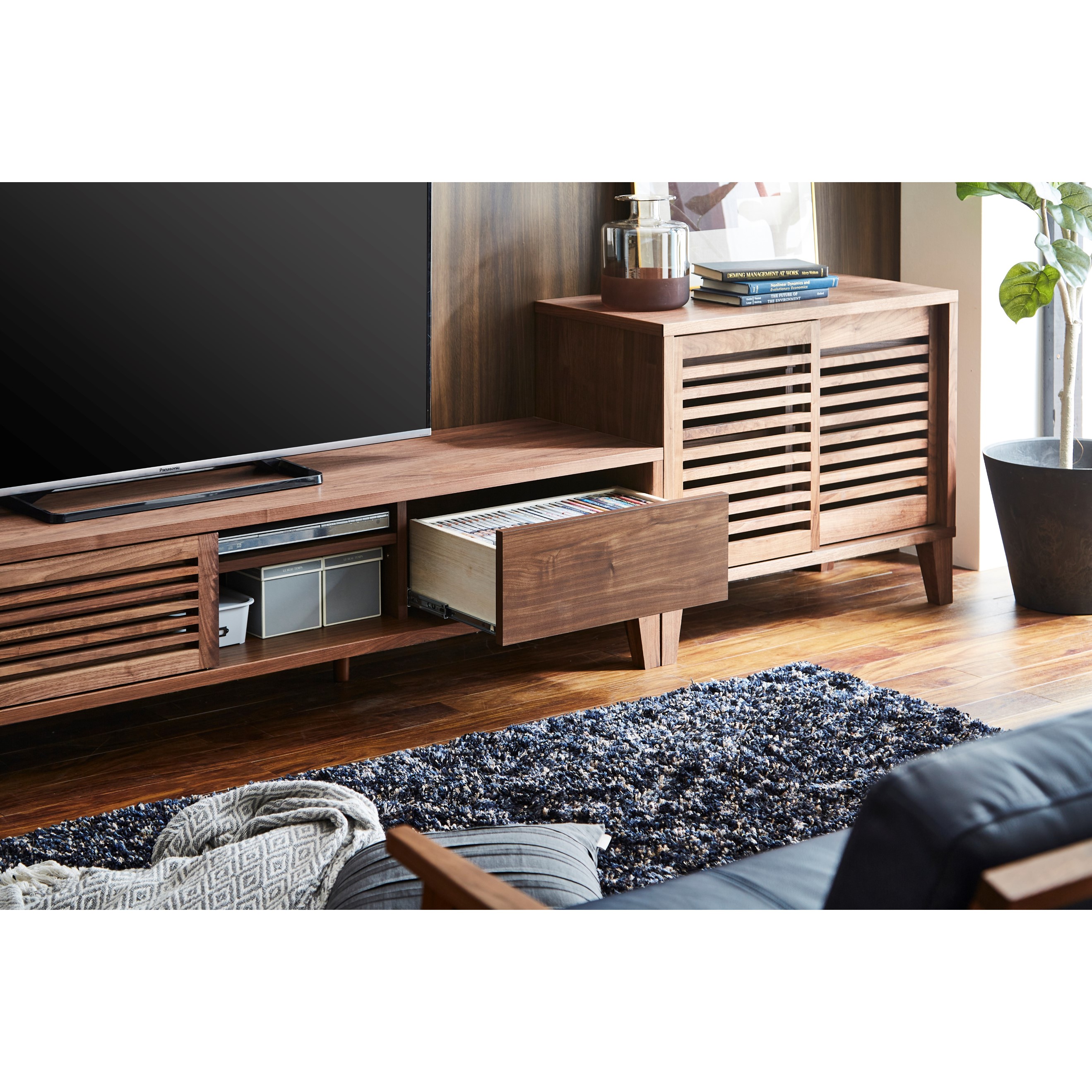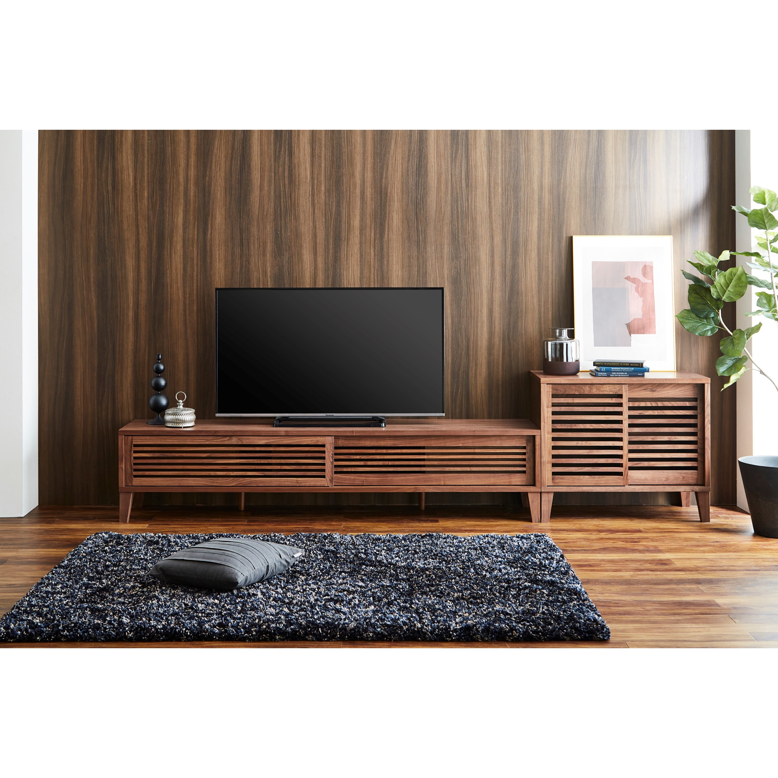 テレビボードは、より格子が細くスタイリッシュなデザインです。