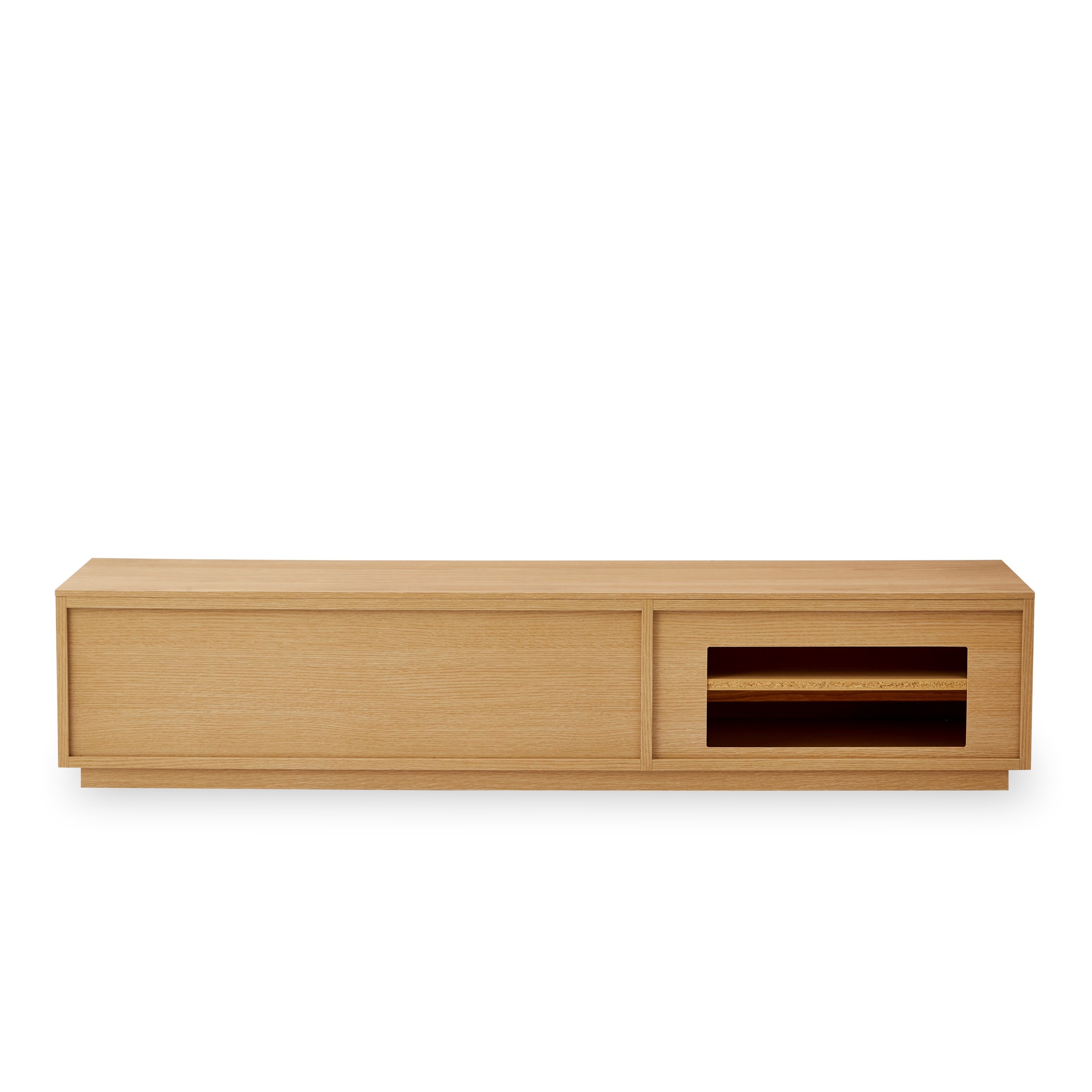 また、フラップ扉の部分はガラス突板を採用し、天然木の風合いは損なわずに、リモコンが通るような機能性もあわせ持っています。